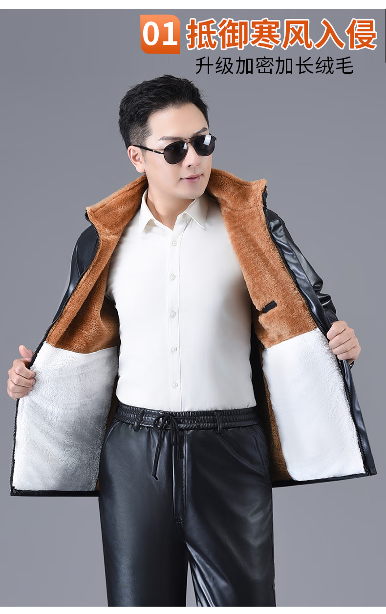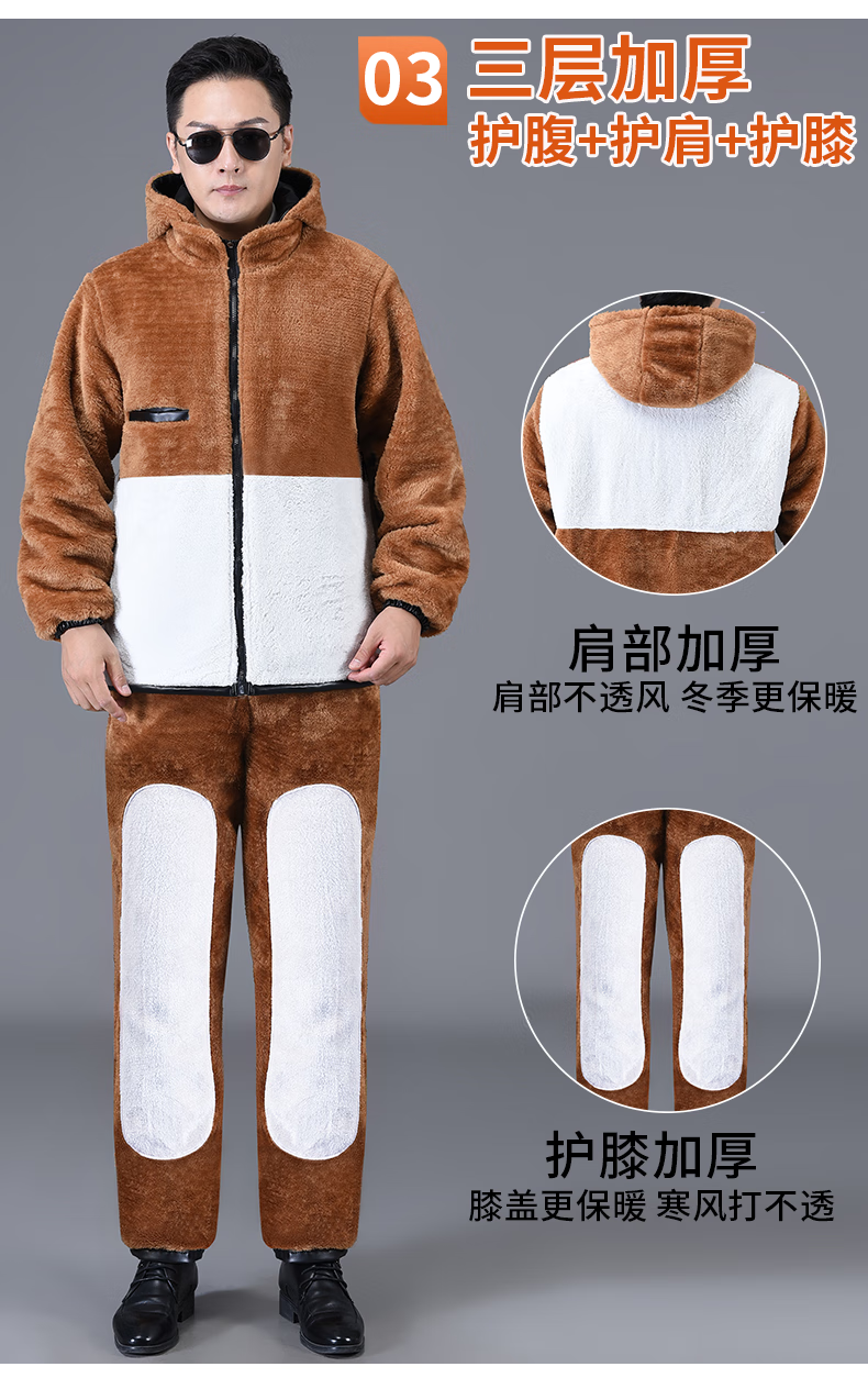 励阳冬季皮衣皮裤套装男加绒加厚保暖防寒防风骑行外卖中老年劳保工装 最新迷彩护肩护肚套装 (皮衣+裤子) 2XL (120斤-130斤)