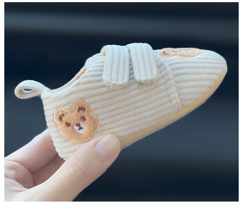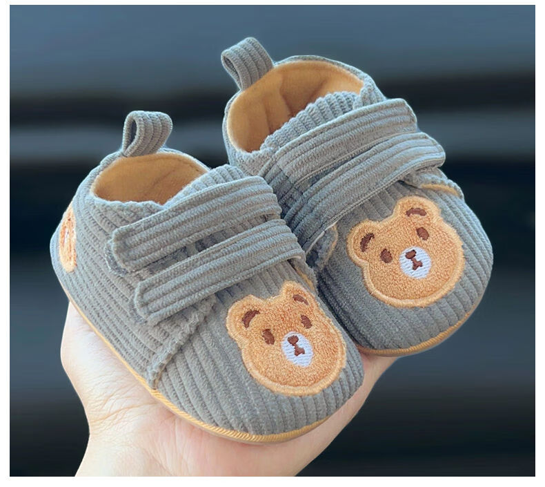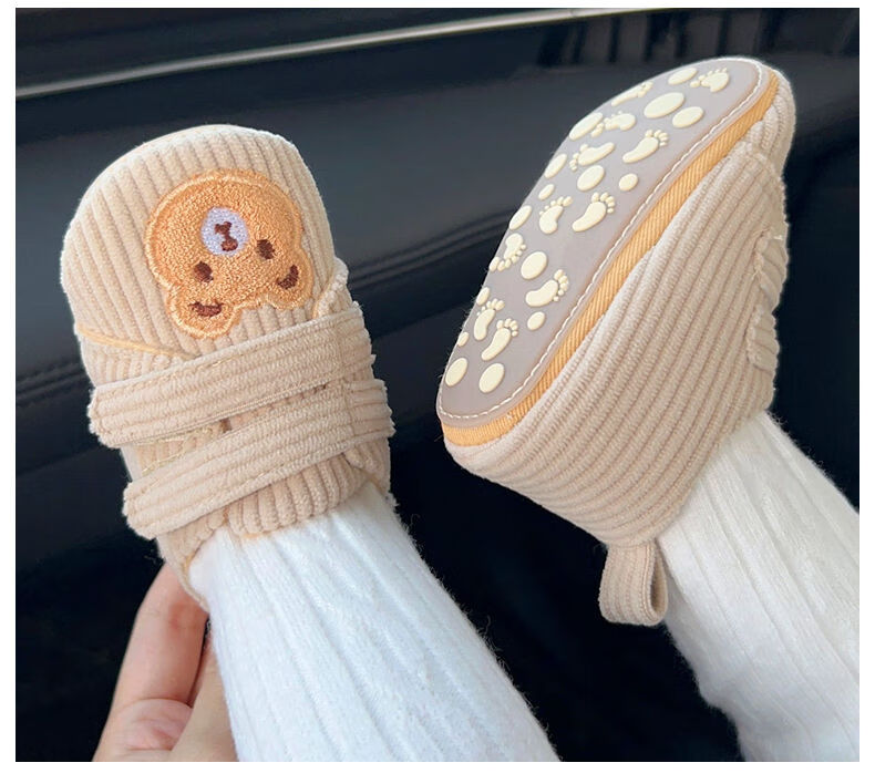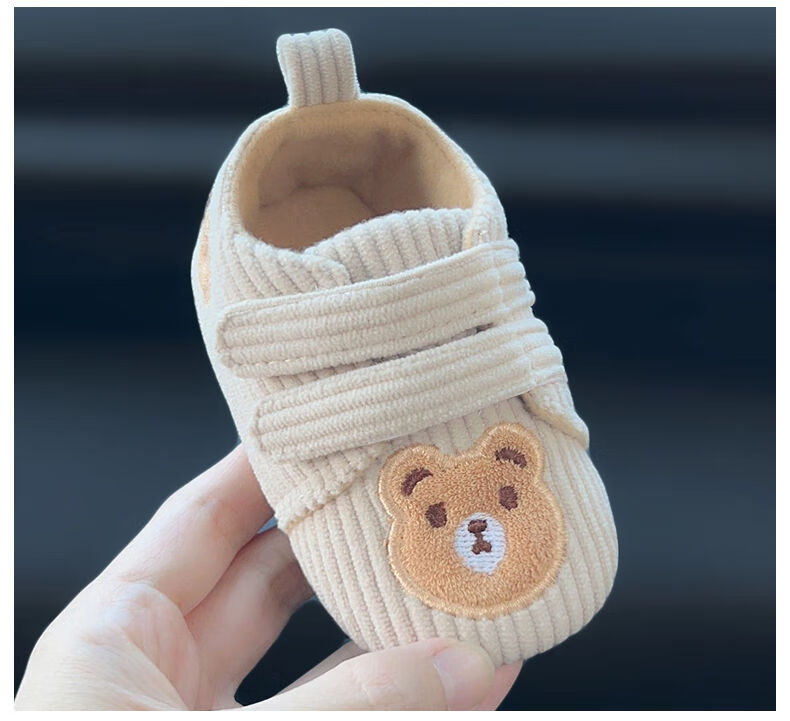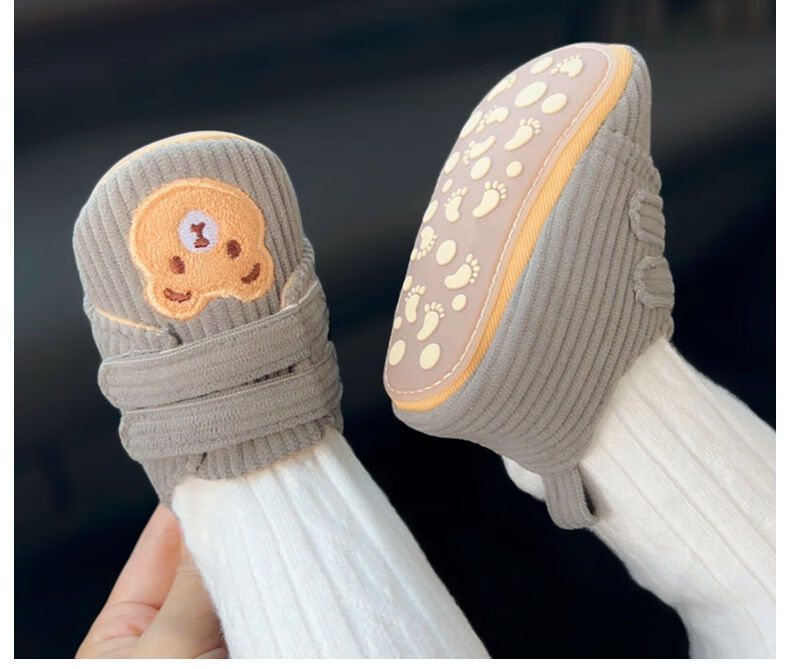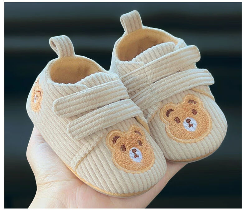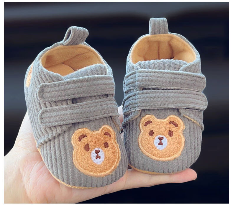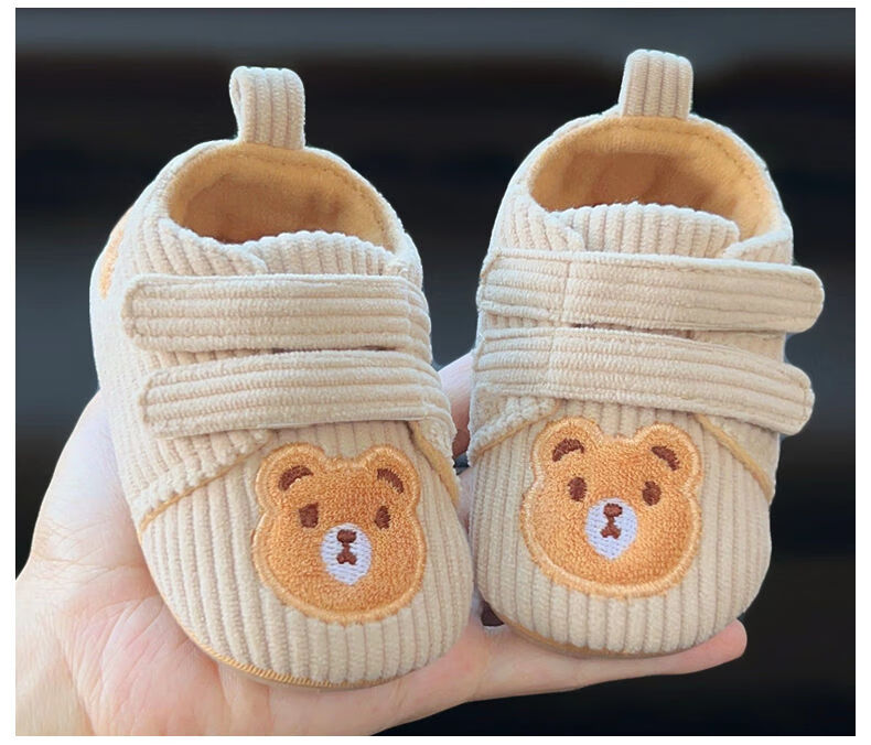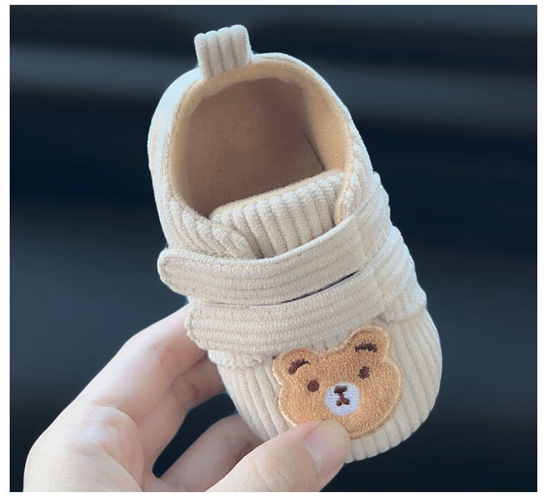 G.duck小黄鸭婴儿鞋秋冬季0-1岁新生儿卡通鞋子男女宝宝软底灯芯绒保暖 诺_卡其(大熊_灯芯绒) 11 S