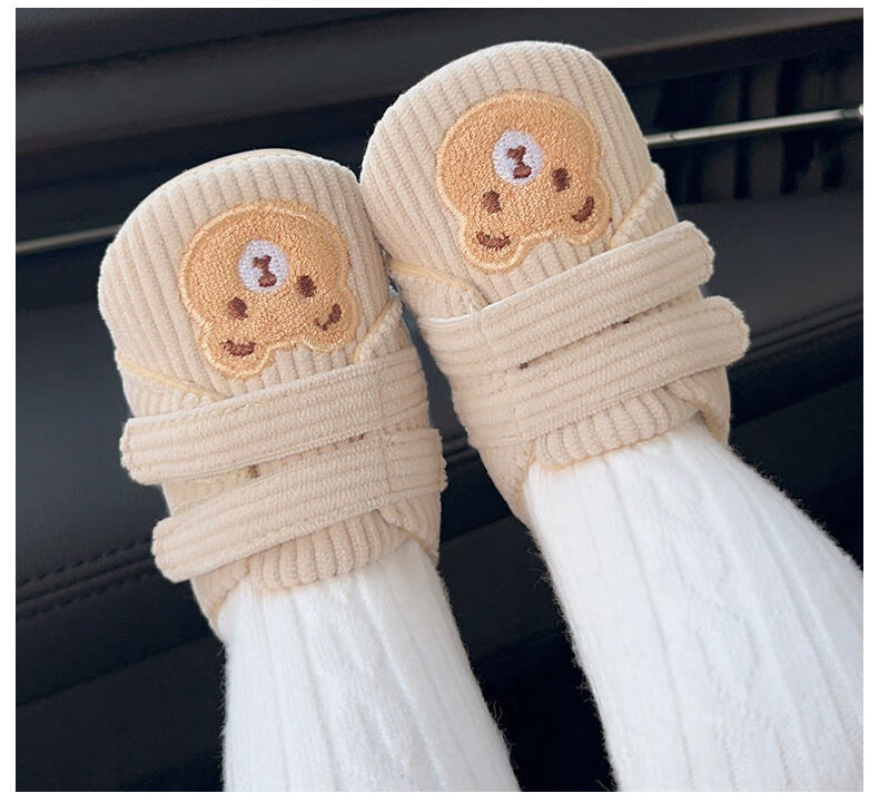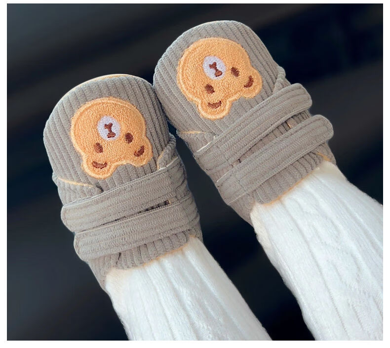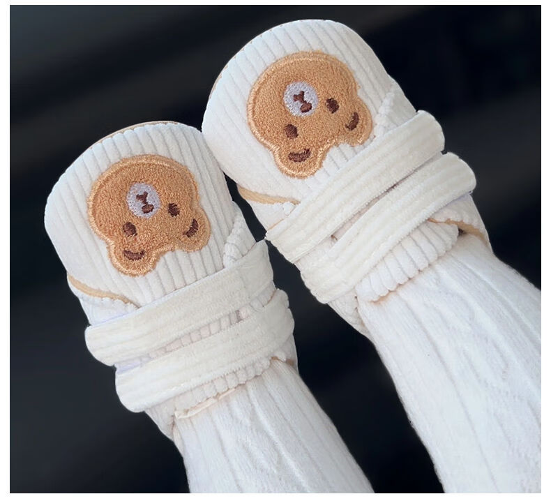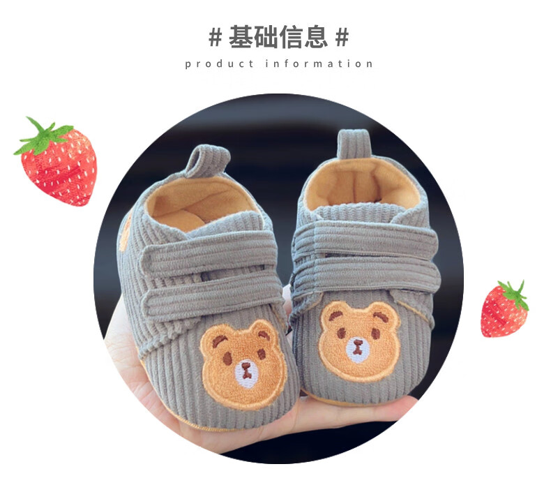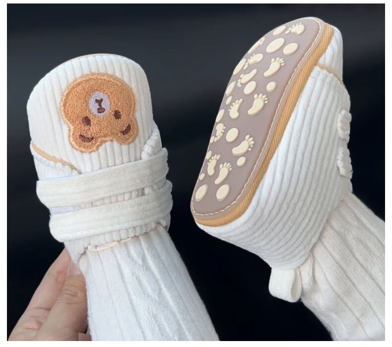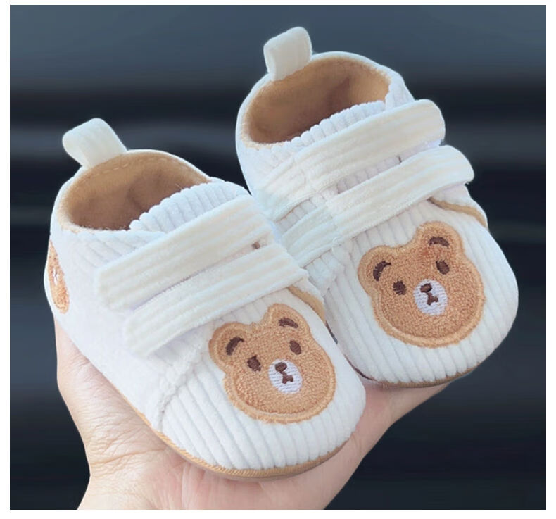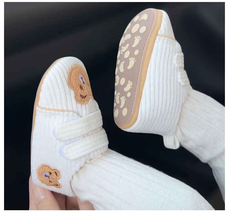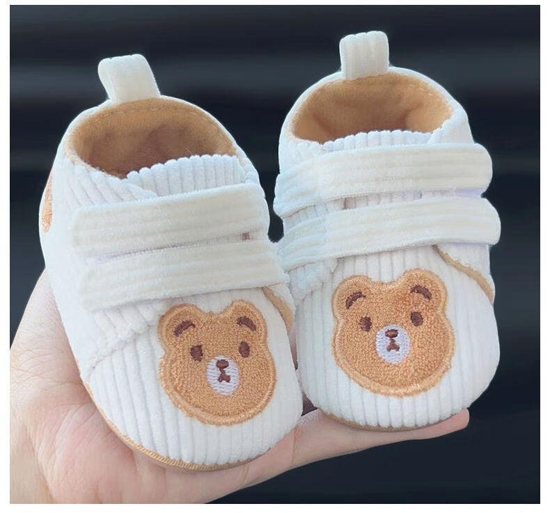 G.duck小黄鸭婴儿鞋秋冬季0-1岁新生儿卡通鞋子男女宝宝软底灯芯绒保暖 诺_卡其(大熊_灯芯绒) 11 S