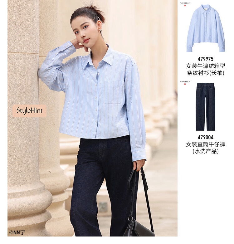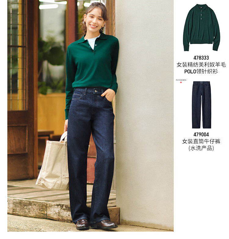 优衣库女装直筒牛仔裤/中腰水洗产品休闲裤子25秋冬新款479004 54 绿色 26 /160/66A