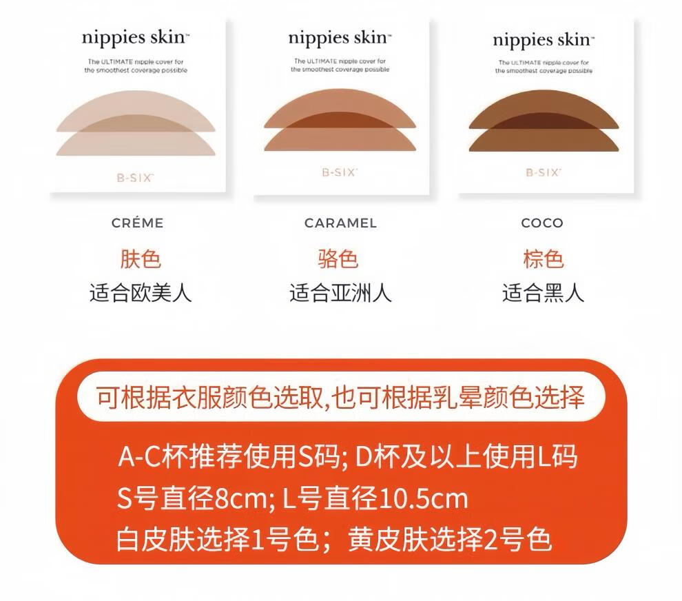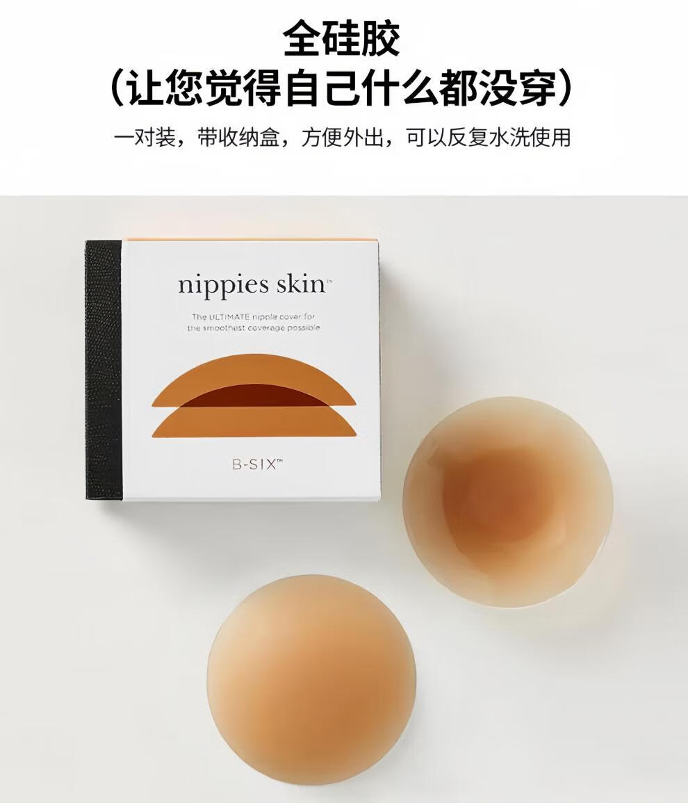 美国bsix Nippies Skin 乳贴防凸点硅胶隐形无痕内衣Bristols胸贴 S号,1号色_CREME(适合A到C杯)_赠送清洗