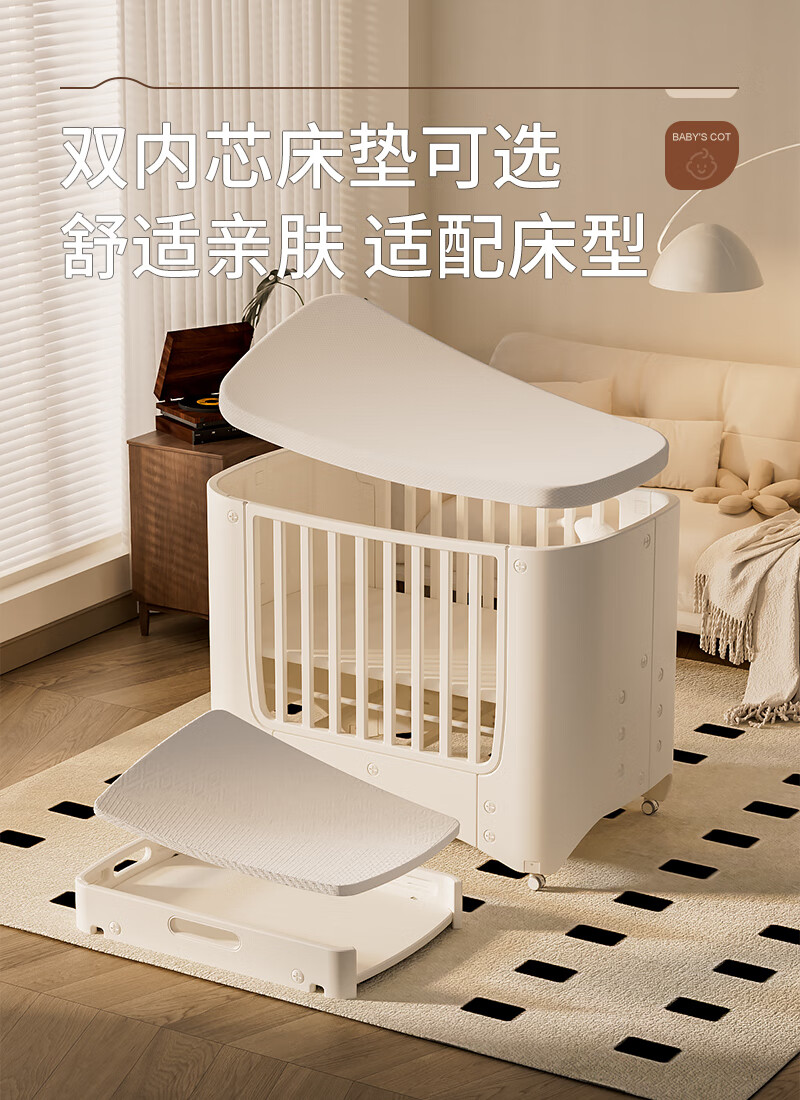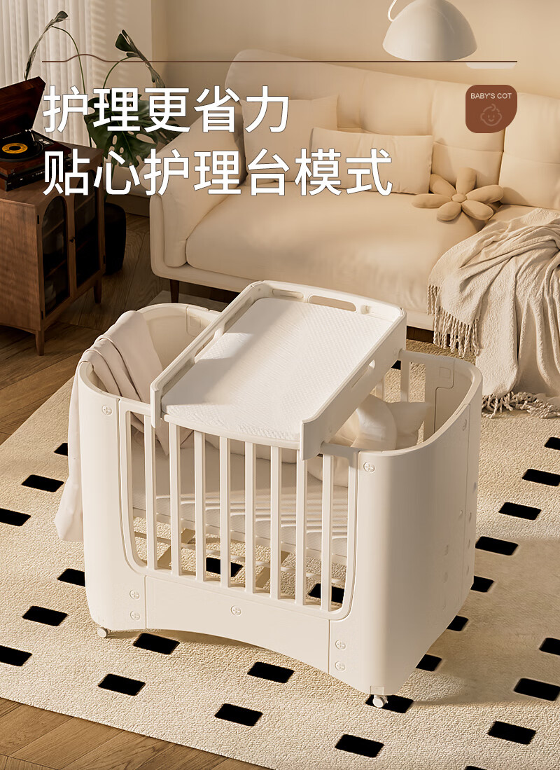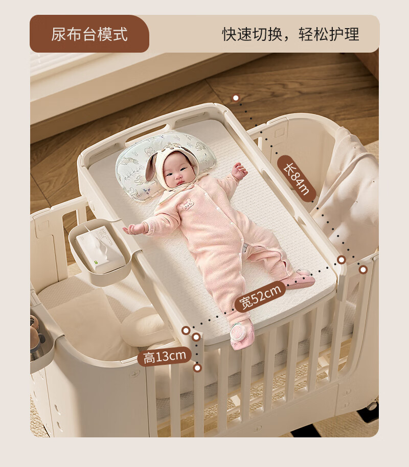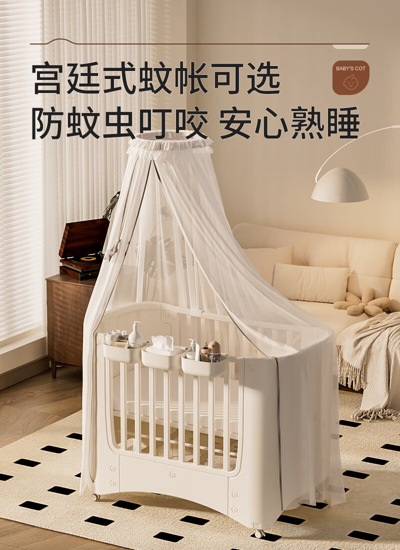 Cuna Shantou Lincun, cama de empalme extraíble ajustable, cama de juego, cambiador multifuncional para bebé, lavabo colgante, estera de fibra de aire 4D, mosquitera, mesa para cambiar pañales, otra estructura de soporte de montaje