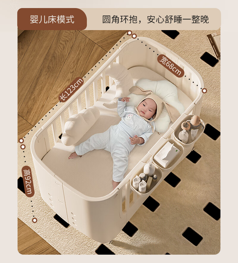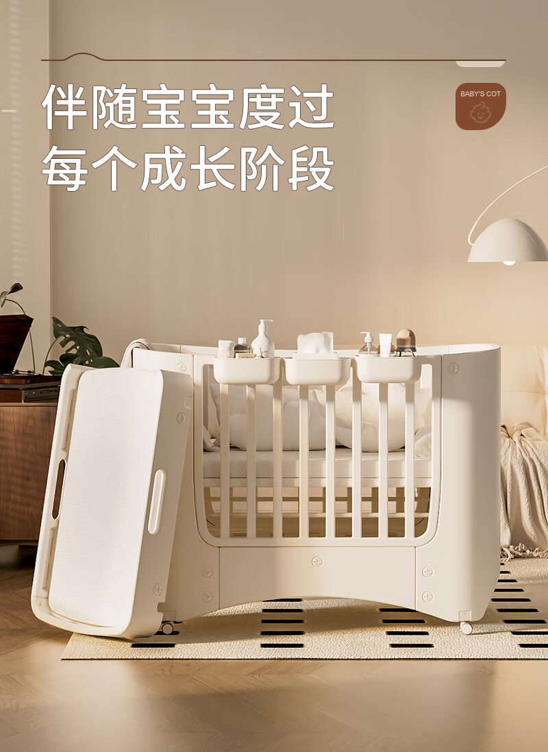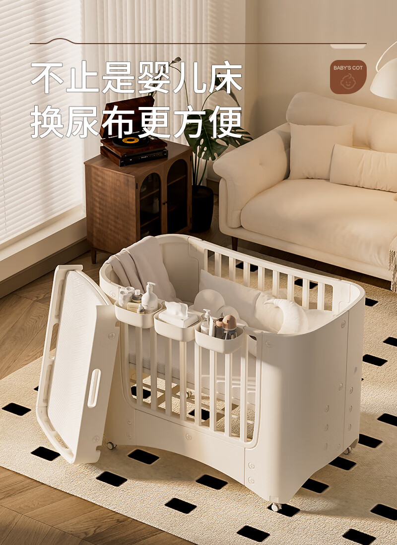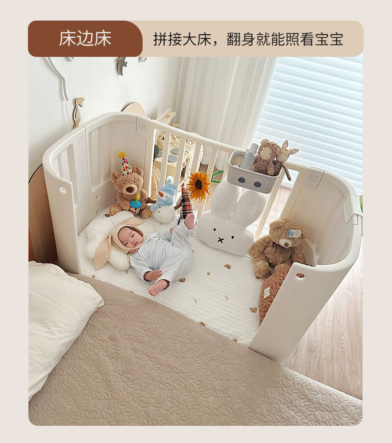 Cuna Shantou Lincun, cama de empalme extraíble ajustable, cama de juego, cambiador multifuncional para bebé, lavabo colgante, estera de fibra de aire 4D, mosquitera, mesa para cambiar pañales, otra estructura de soporte de montaje