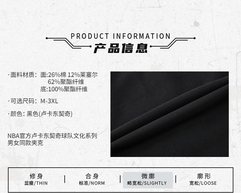 NBA 洛杉矶湖人卢卡东契奇球队文化系列夹克 篮球运动外套 腾讯体育 3XL
