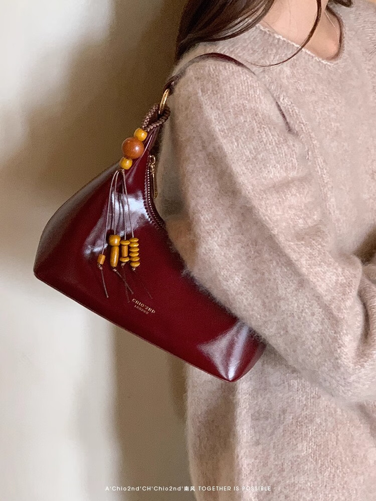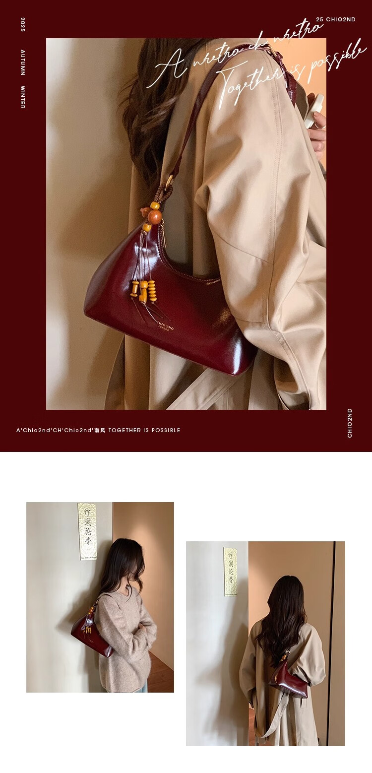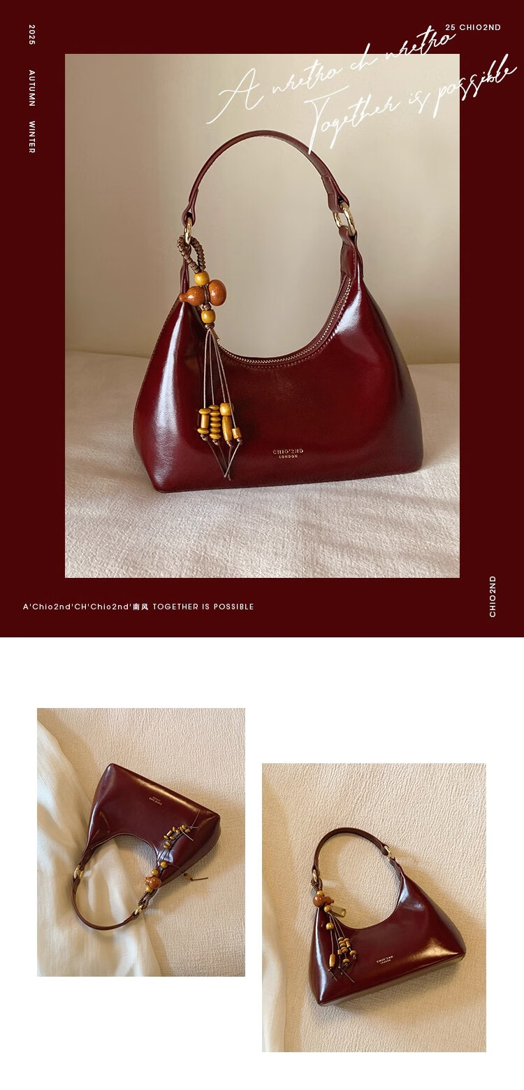 南风Chio2nd赫本晚宴腋下包2025新款红色手提包包女款通勤单肩斜挎包 樱桃红