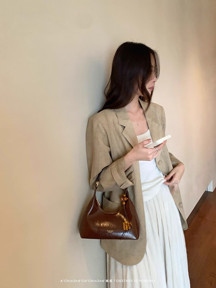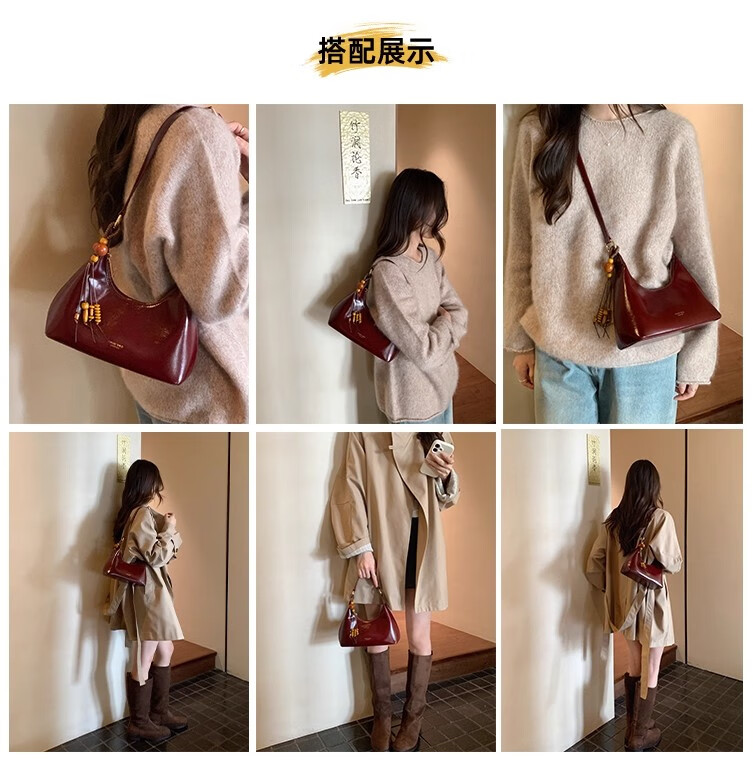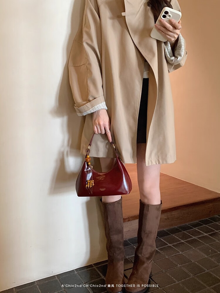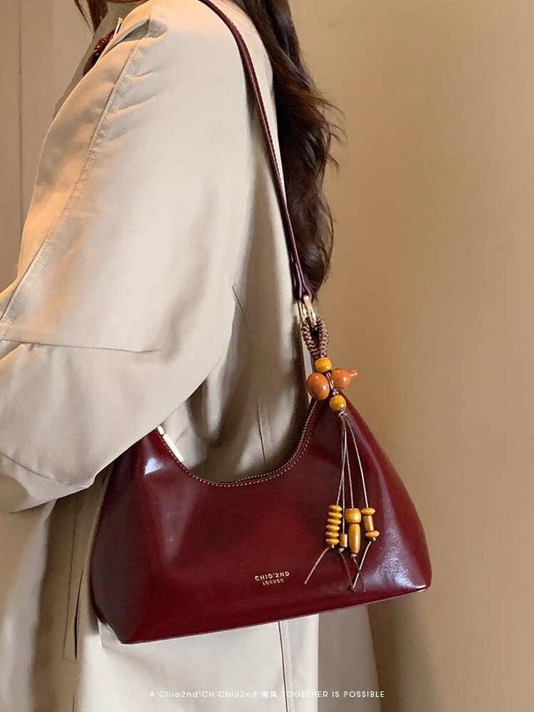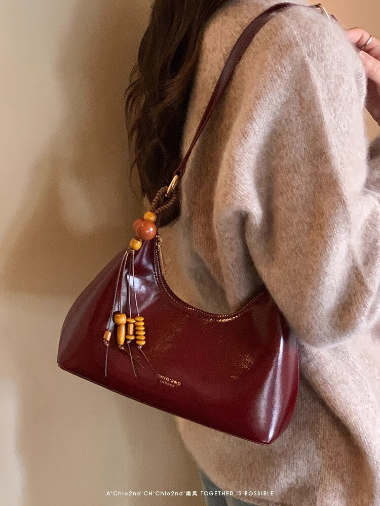 南风Chio2nd赫本晚宴腋下包2025新款红色手提包包女款通勤单肩斜挎包 樱桃红