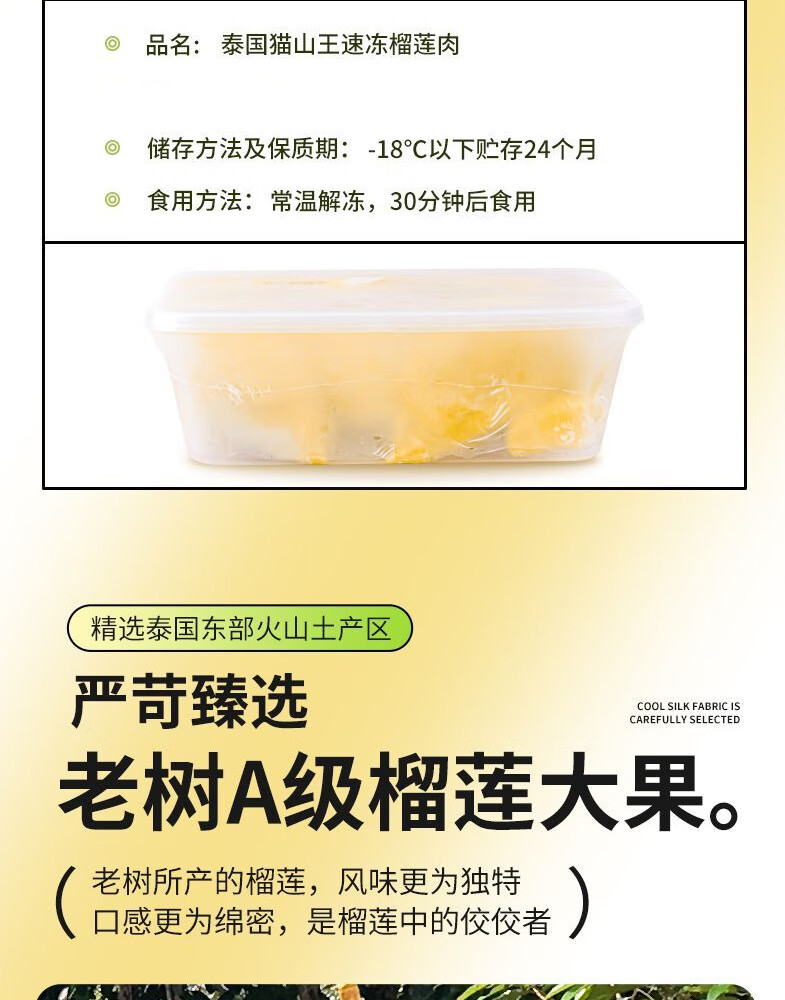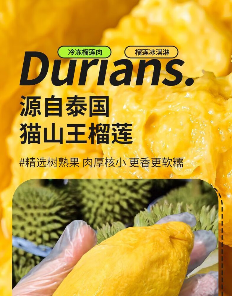 老树A果泰国猫山王榴莲肉冷冻果肉 老树A果250克五盒