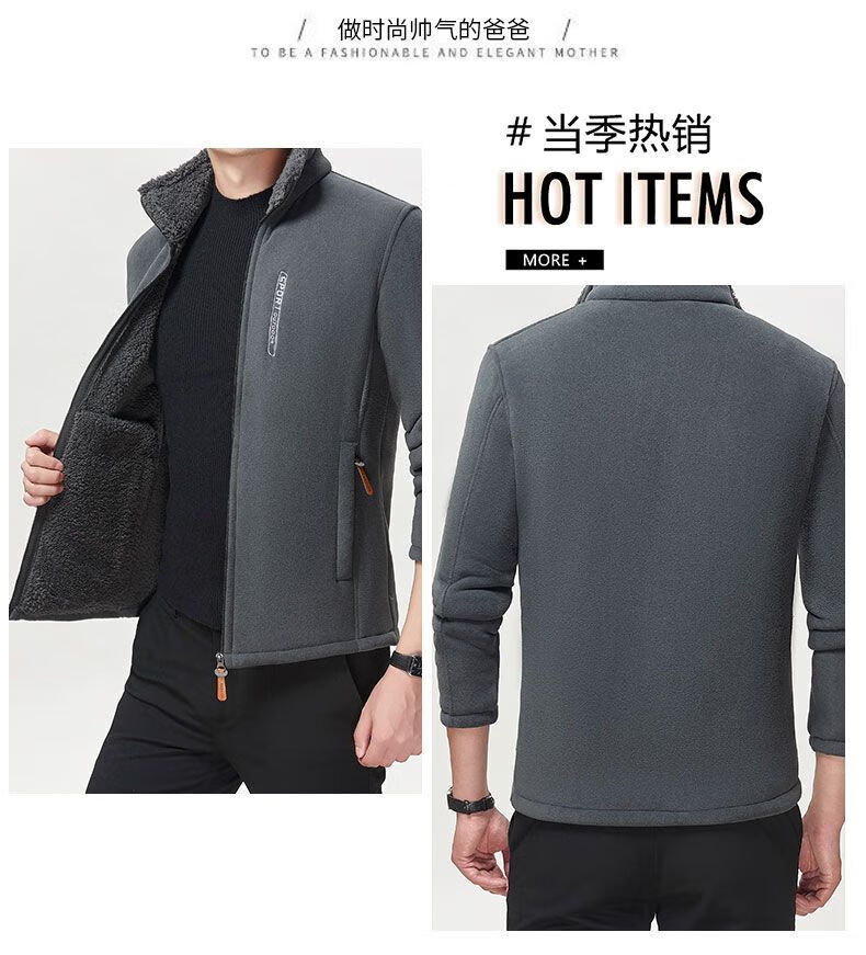 Распродажа Double Eleven, осенне-зимняя мужская куртка, топы, свитер на молнии из флиса плюс бархатный утолщенный Zcy Grey (тип флиса), 3XL (подходит для 135-155 Jin Jin = 0,5 кг)