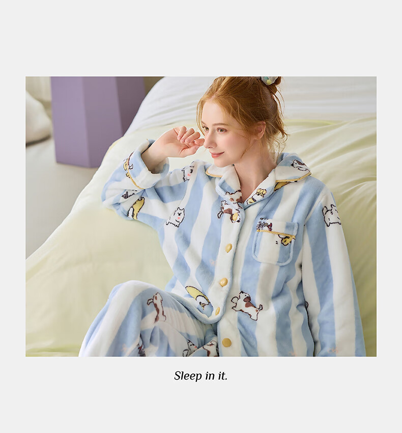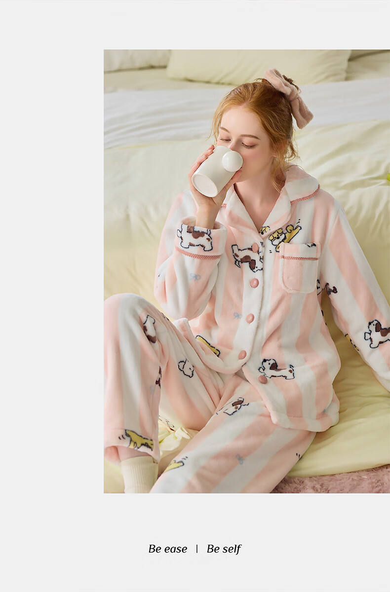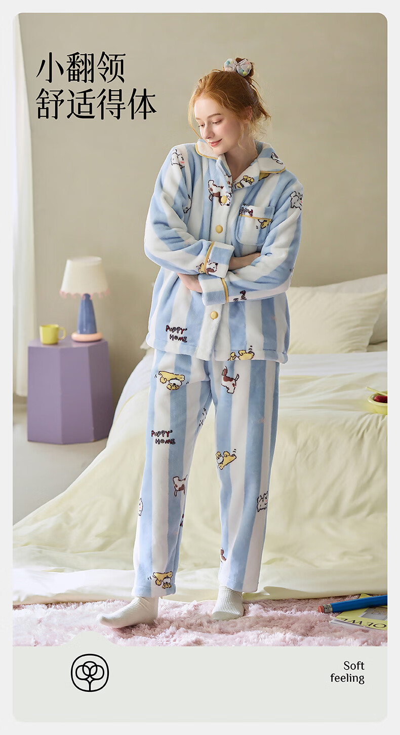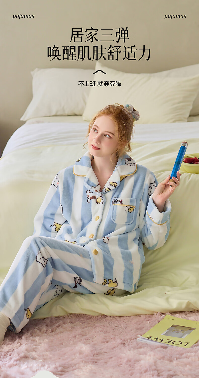 FENTENG FENTENG autumn and winter coral velvet pajamas plus velvet thickened cartoon cute M recommendation 90-110Jin Jin equals 0.5 kg