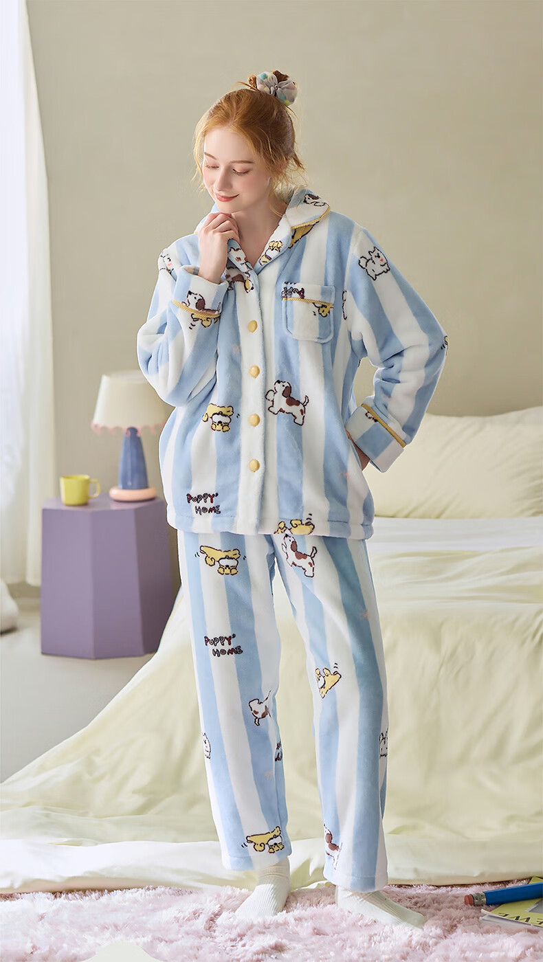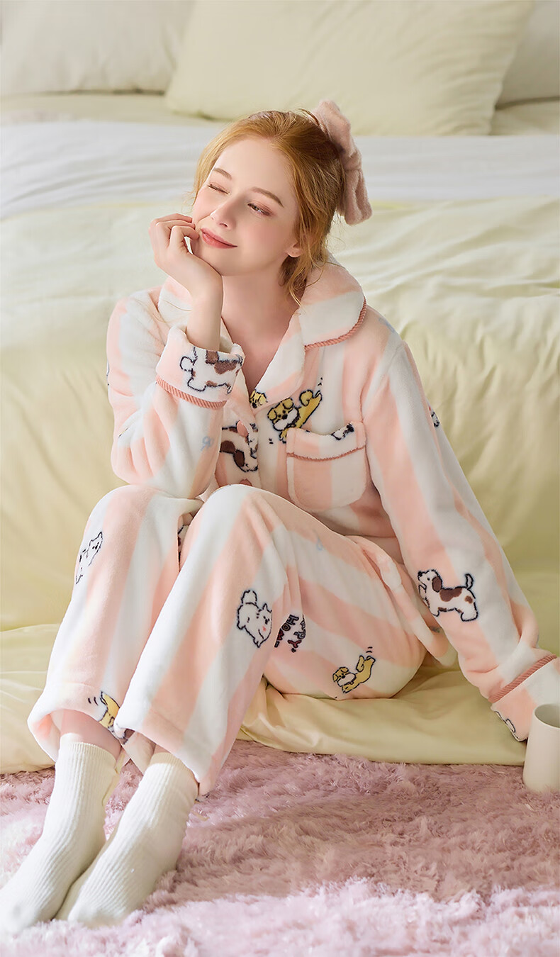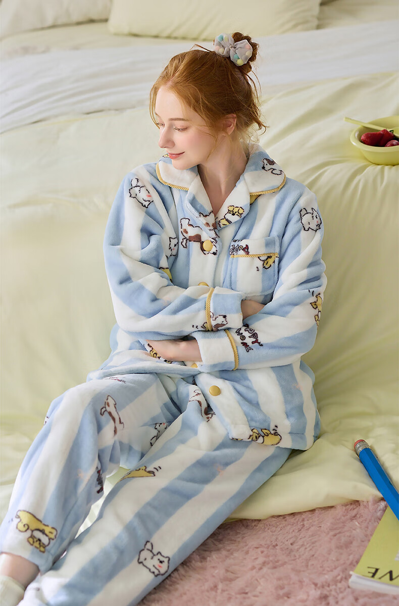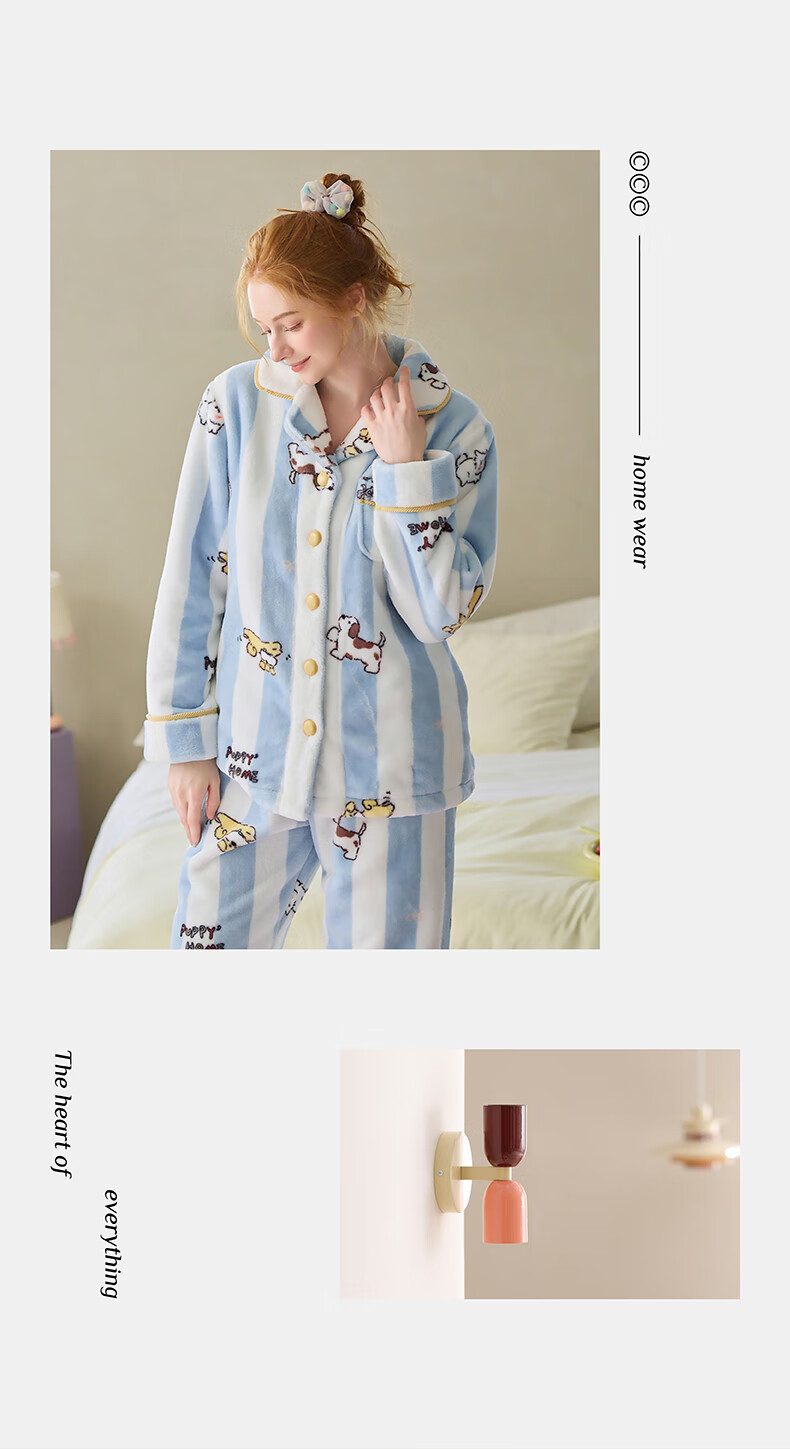 FENTENG FENTENG autumn and winter coral velvet pajamas plus velvet thickened cartoon cute M recommendation 90-110Jin Jin equals 0.5 kg