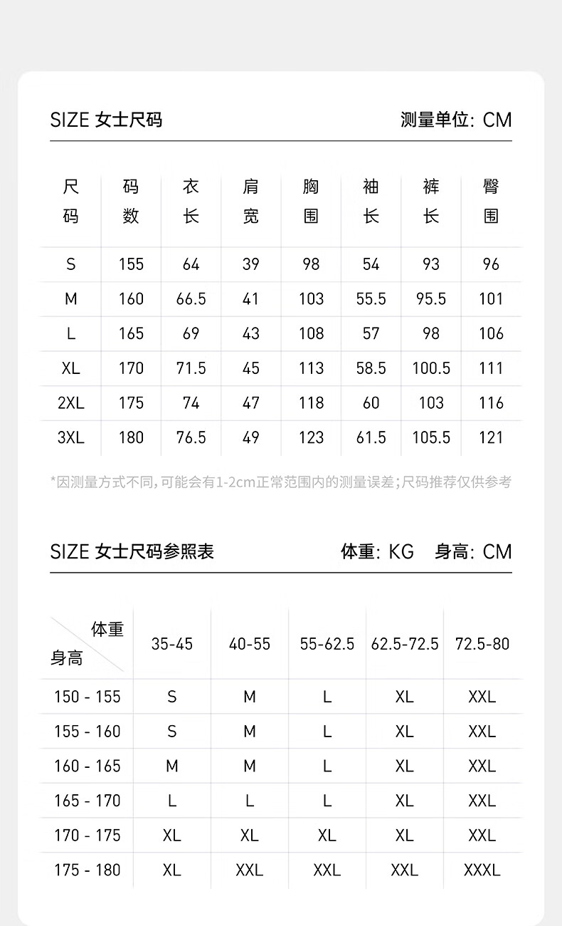 China (cm) 160-165/84-86 165-170 / 88-90 167-172 / 92-96 168-173 / 98-102 170-176 / 106-110