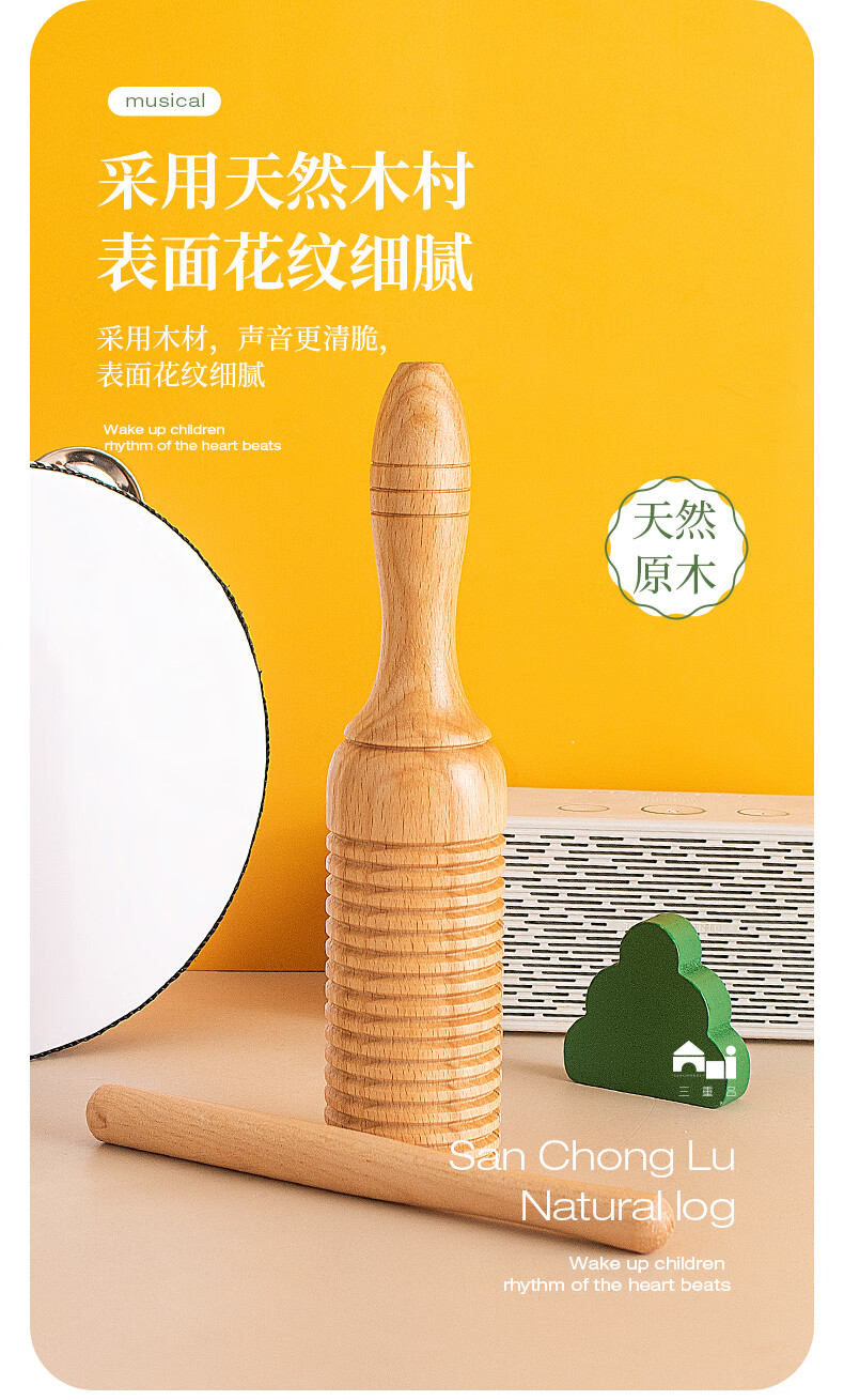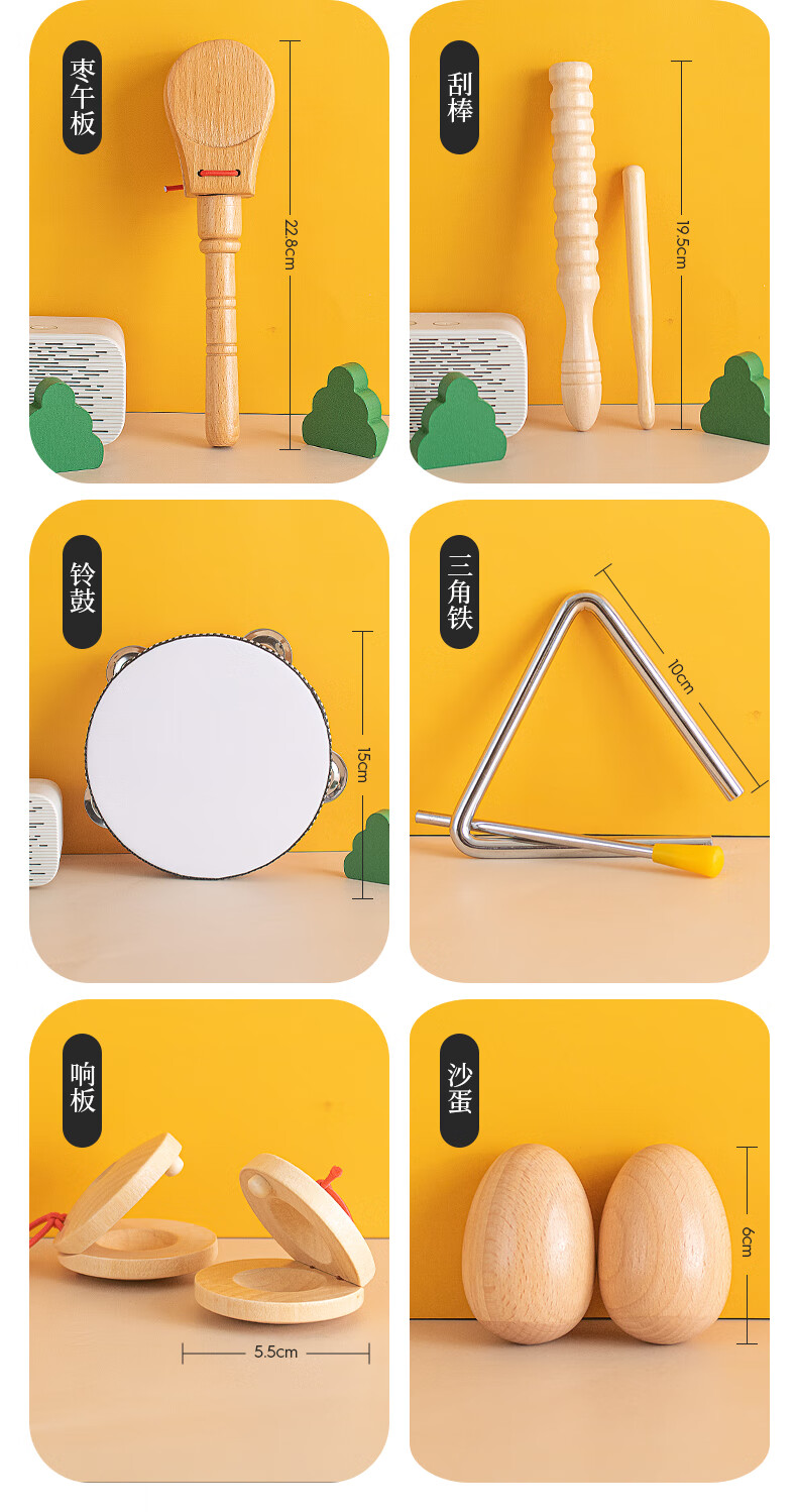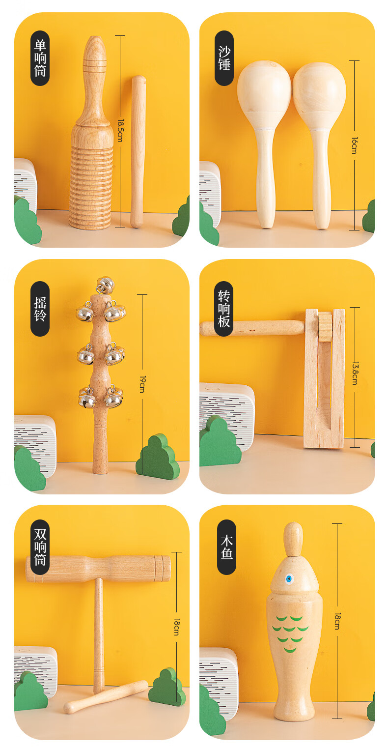 音念儿童奥尔夫打击乐器木制音乐教学套组适用于幼儿园与小学课堂 原木大号沙锤20cm(1对)原木
