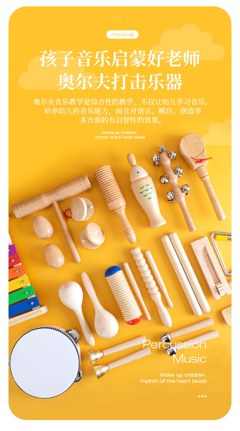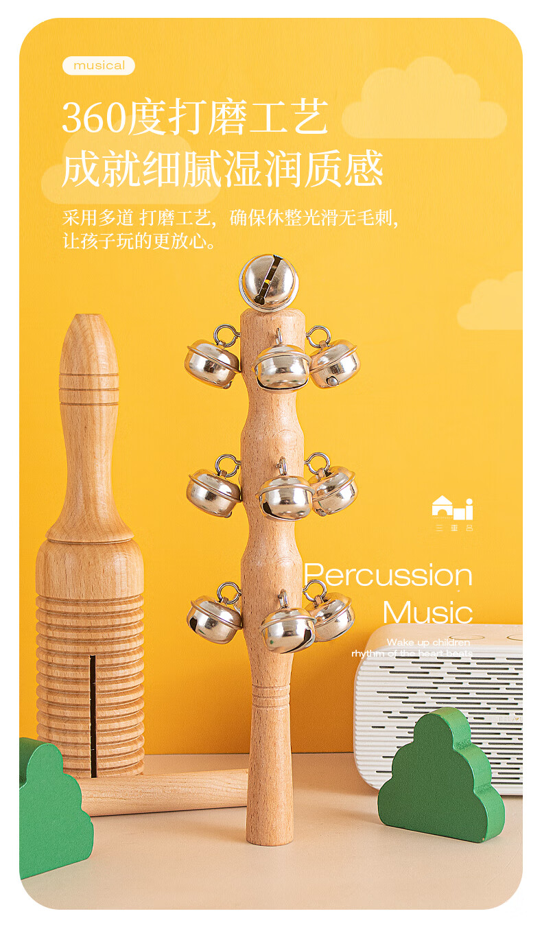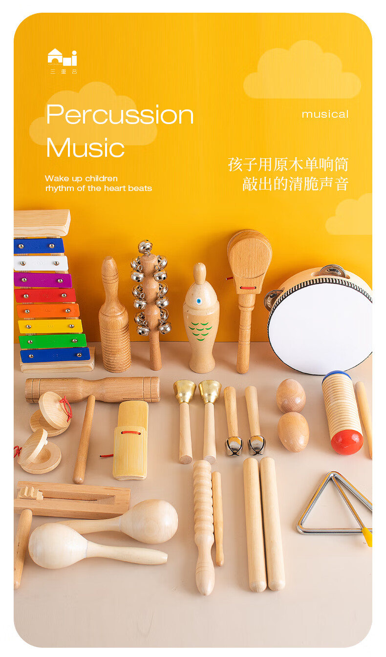 音念儿童奥尔夫打击乐器木制音乐教学套组适用于幼儿园与小学课堂 原木大号沙锤20cm(1对)原木