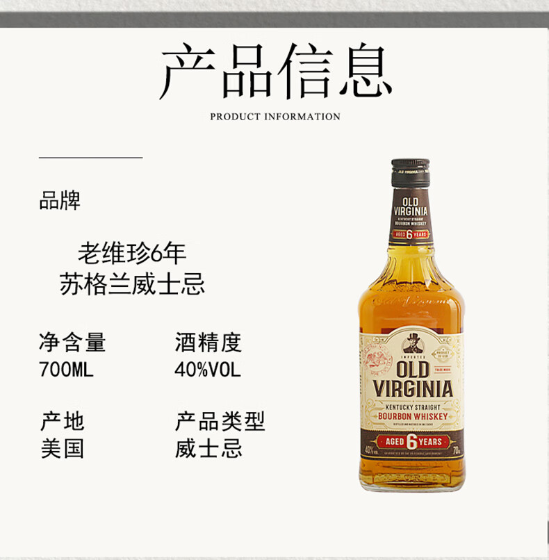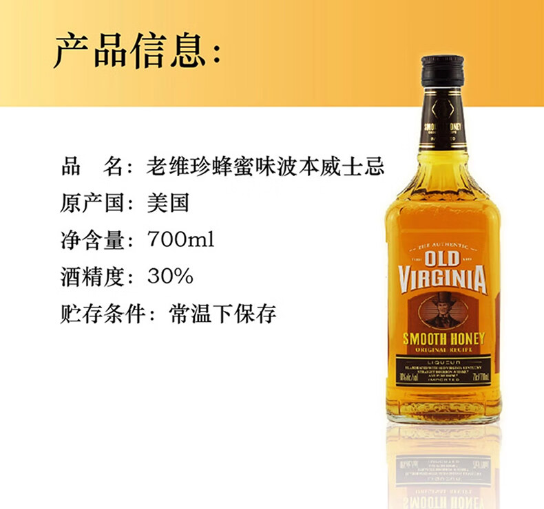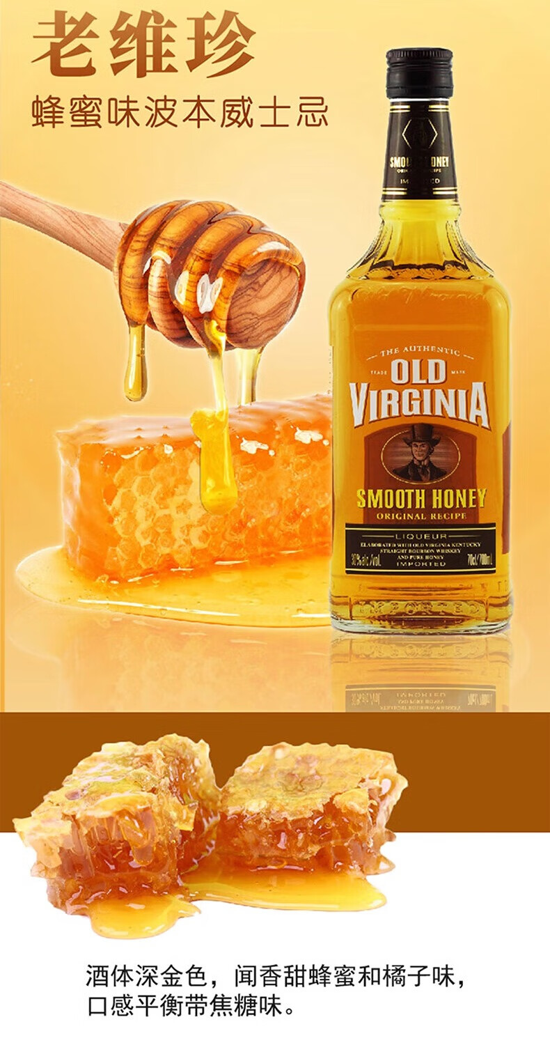 老维珍(OLD VIRGINIA )老维珍波本威士忌 Old Virginia 美国肯塔基进口洋酒缺 老维珍蜂蜜味波本威士忌700mL