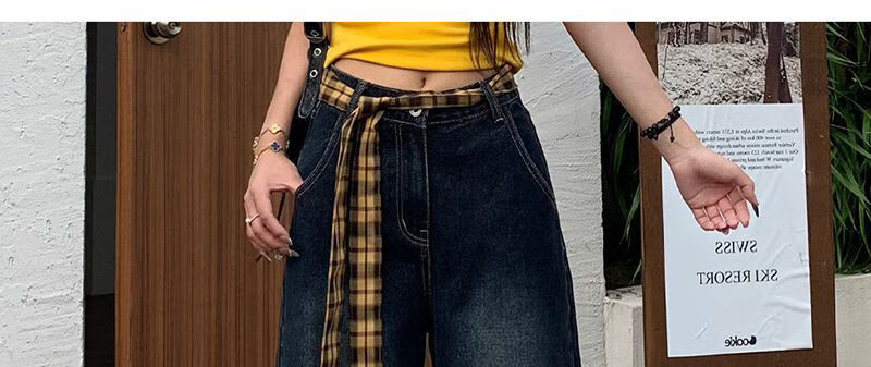 Xiaohongshus gleicher Stil, cooler und stilvoller Herbst-Berufsanzug für Damen, 2025, superheißes Herbst-OOTD-Outfit, komplettes Set ++ Jeans mit gelb-schwarz kariertem Gürtel, Frühherbst-Outfit, Frühherbst-Damenbekleidung 2025, neuer Stil S S