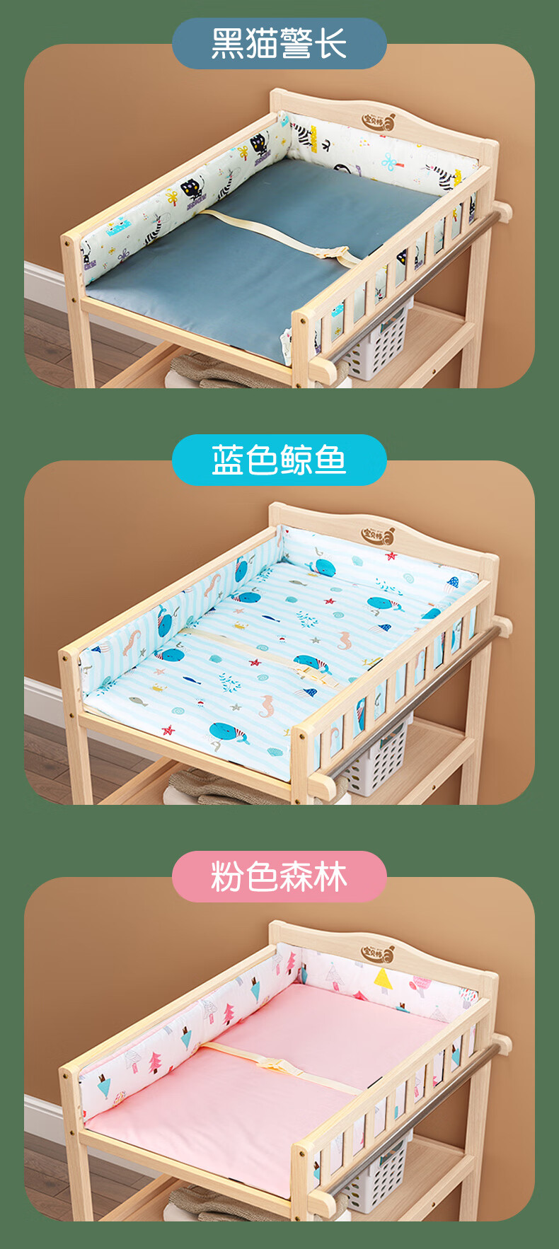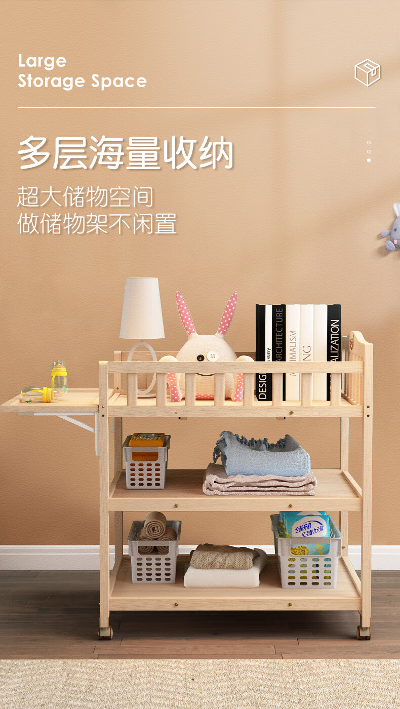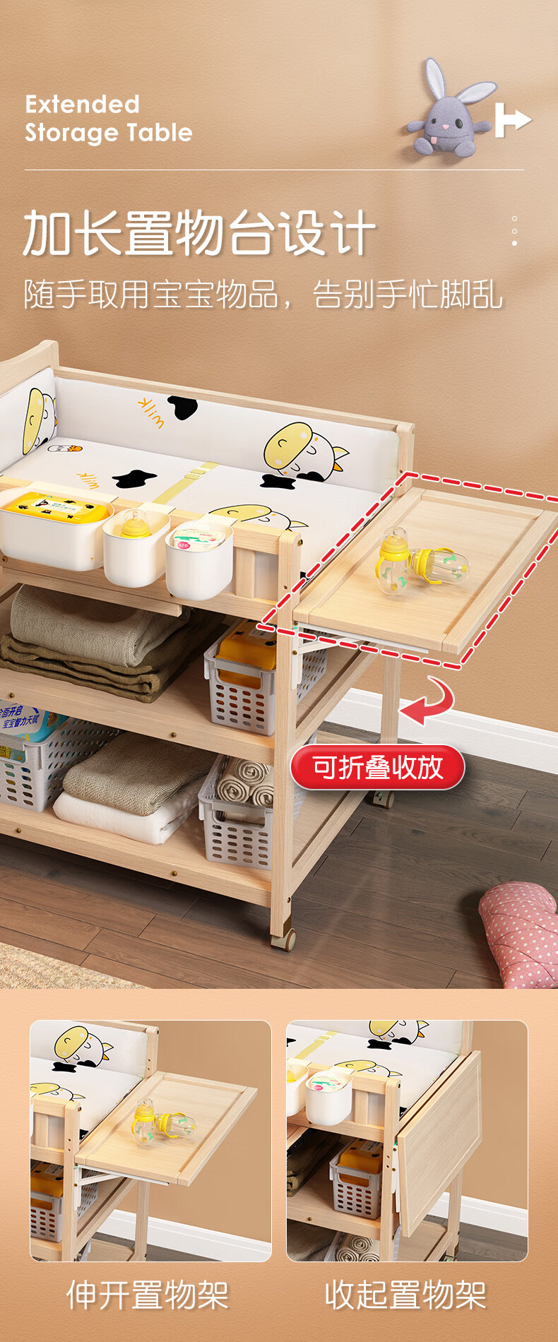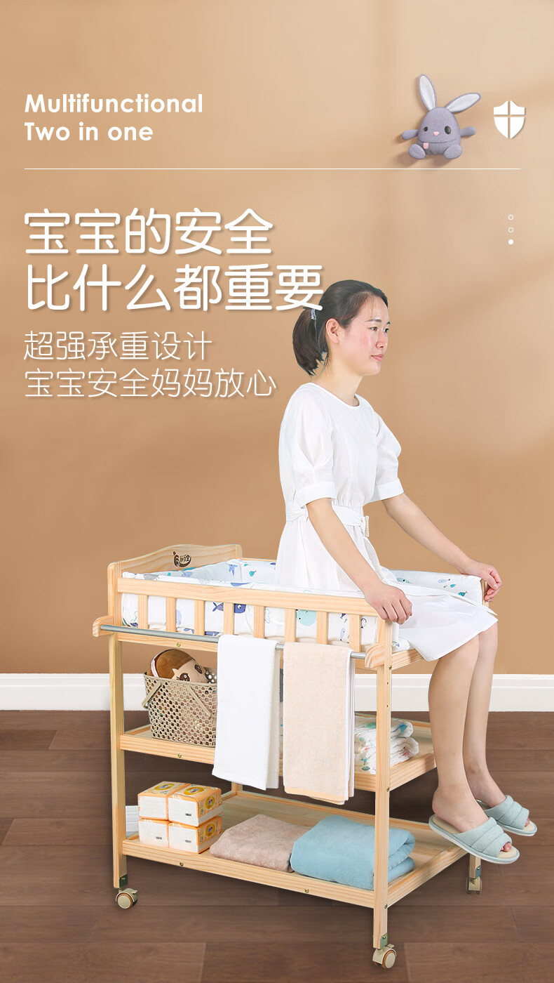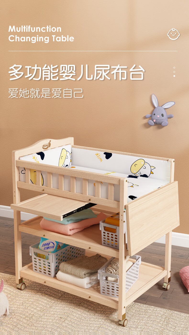 Baby bangbang solid wood diaper table, baby care table, newborn massage and bathing table, multi-functional baby changing table, double-layer diaper table (solid wood partition) + storage box + cotton pad (color remarks)