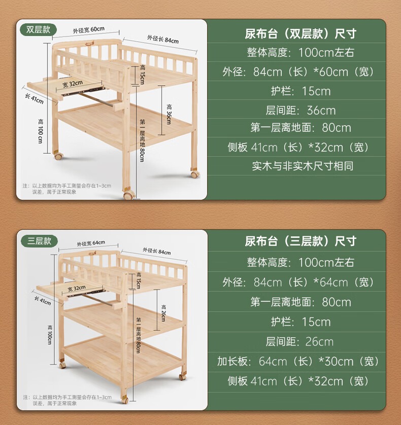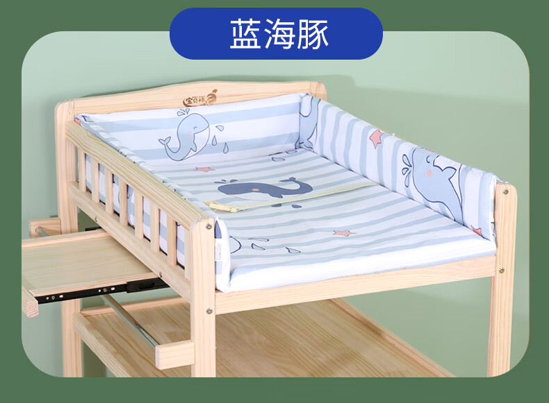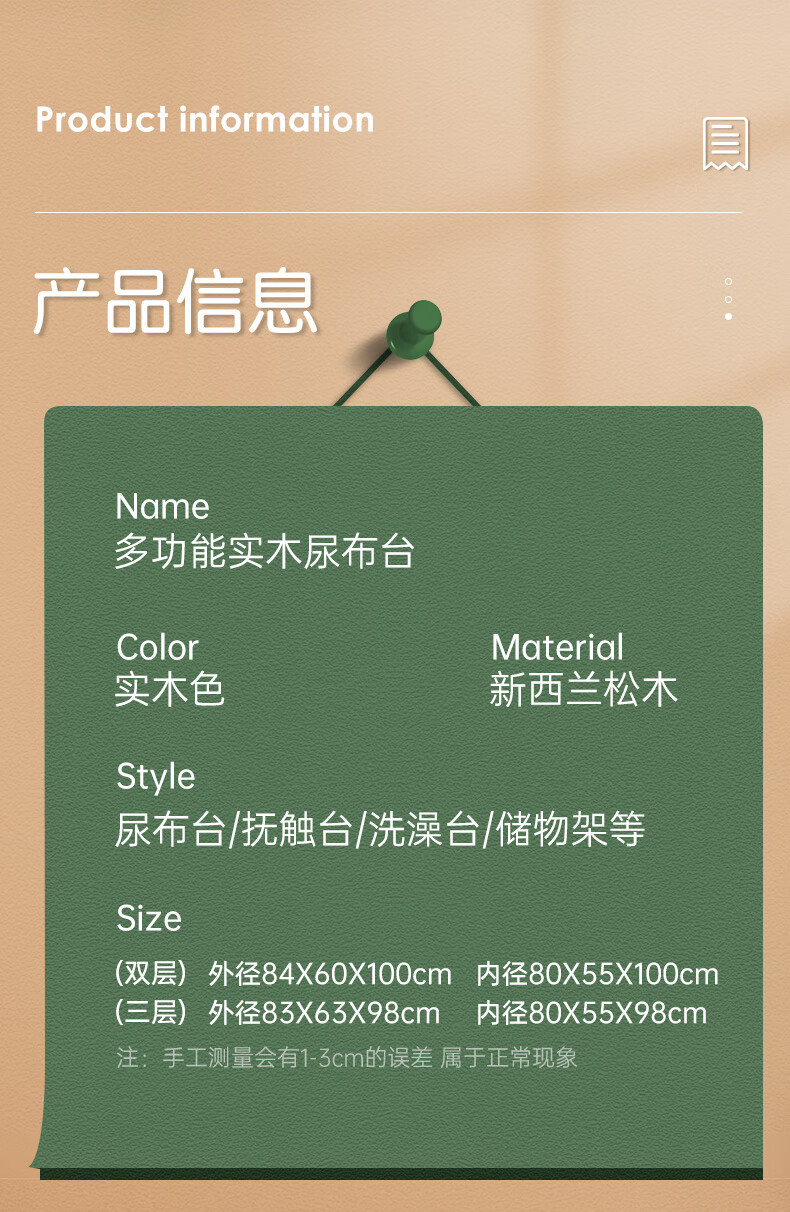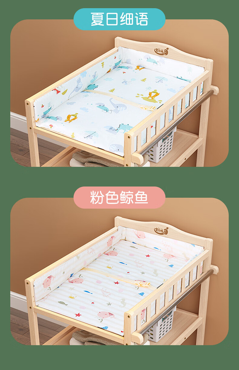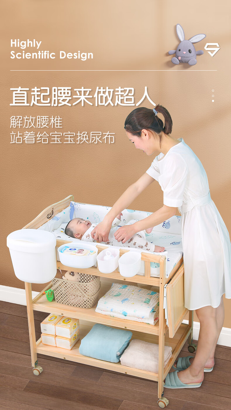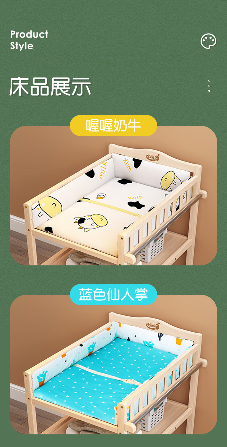 Baby bangbang solid wood diaper table, baby care table, newborn massage and bathing table, multi-functional baby changing table, double-layer diaper table (solid wood partition) + storage box + cotton pad (color remarks)