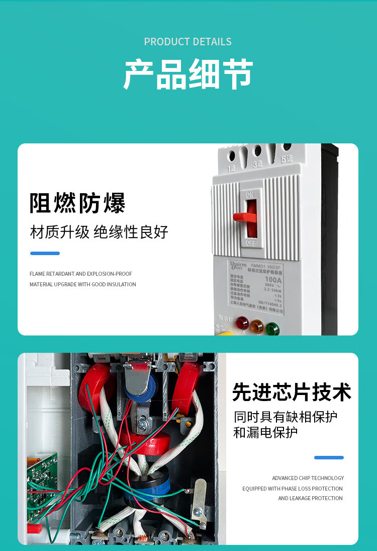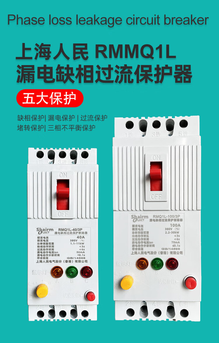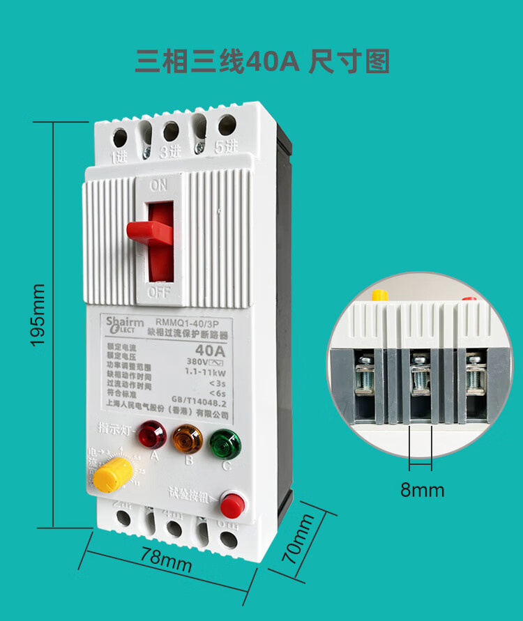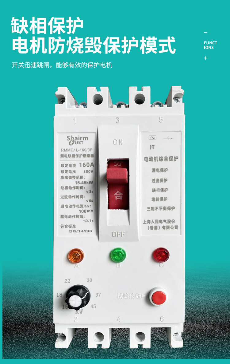 Moteur triphasé 380 V pompe à eau perte de phase protecteur de fuite interrupteur de protection contre la perte de phase de surcharge disjoncteur perte triphasée protection contre la perte de phase triphasée disjoncteur 40A