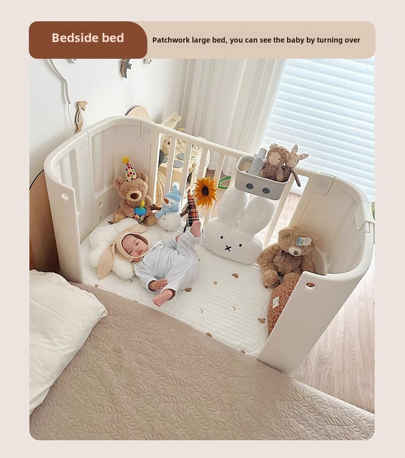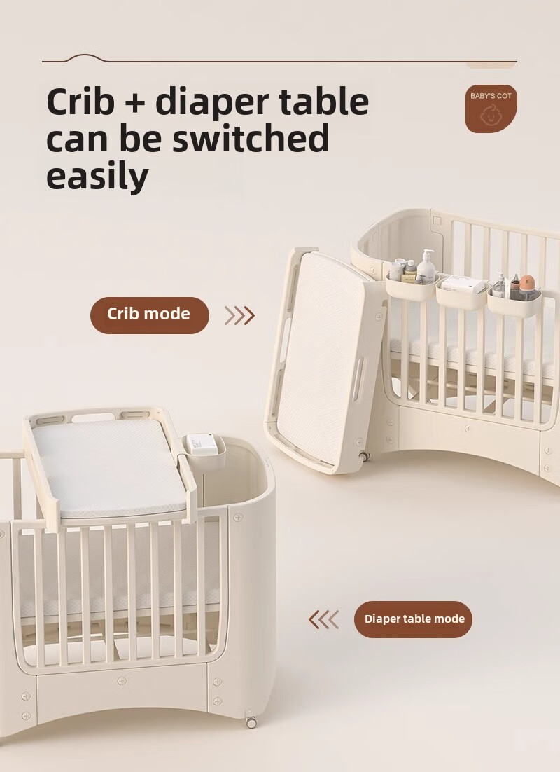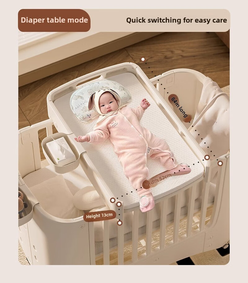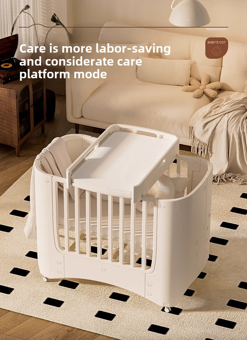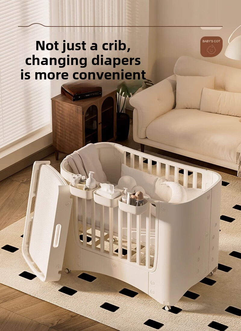 婴儿床可移动多功能新生儿拼接大床Bb床可调节高度变化桌婴儿床 婴儿床+挂盆+椰棕乳胶垫+尿布台 其他_组装_框架结构