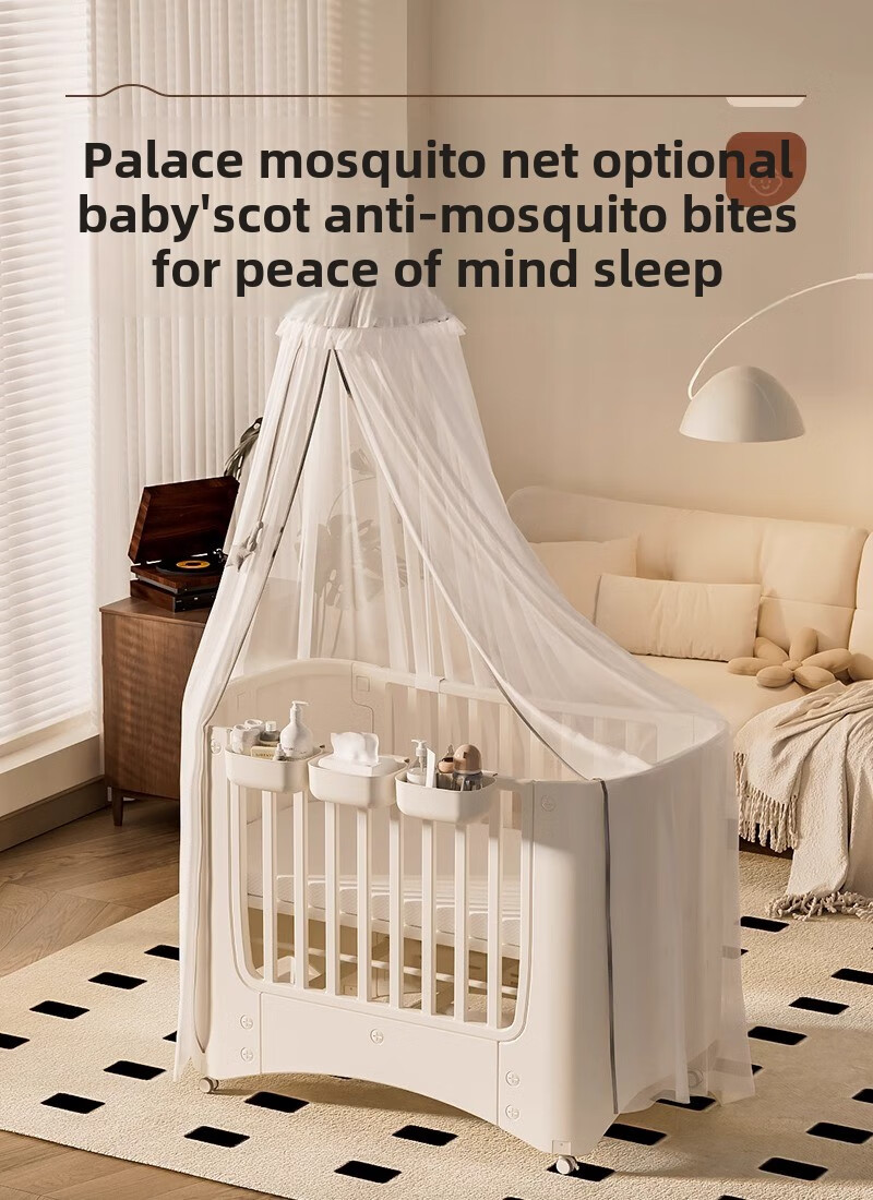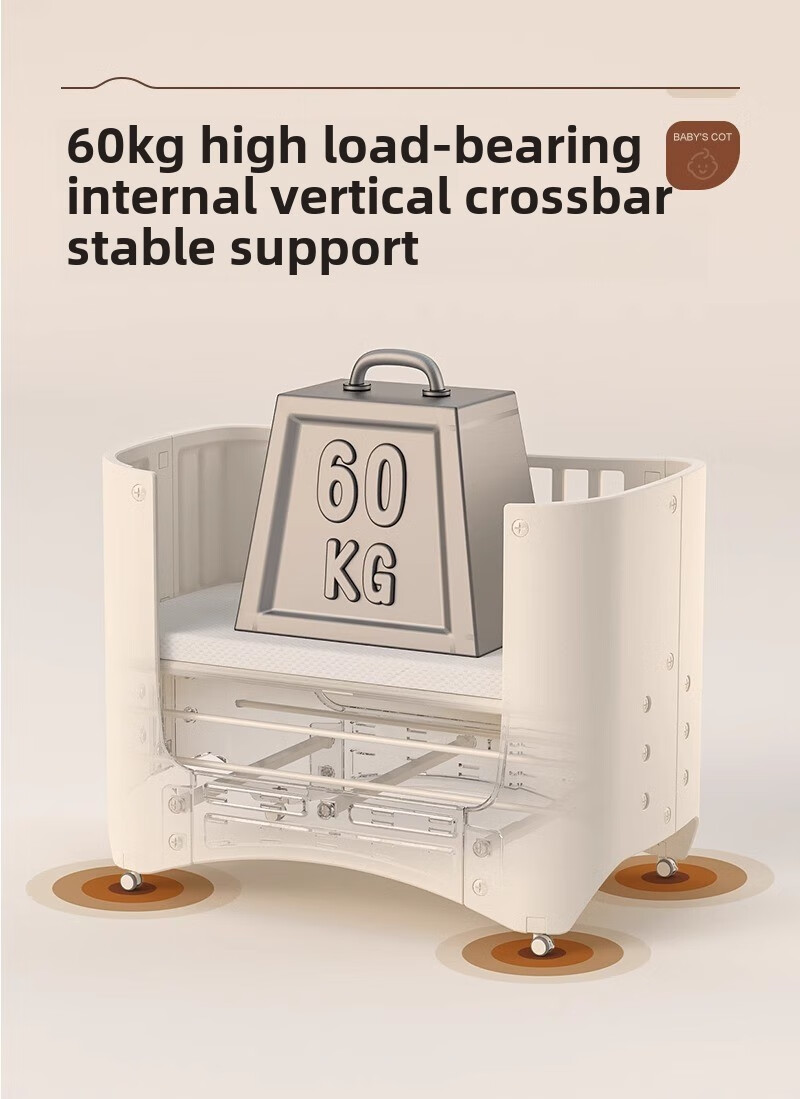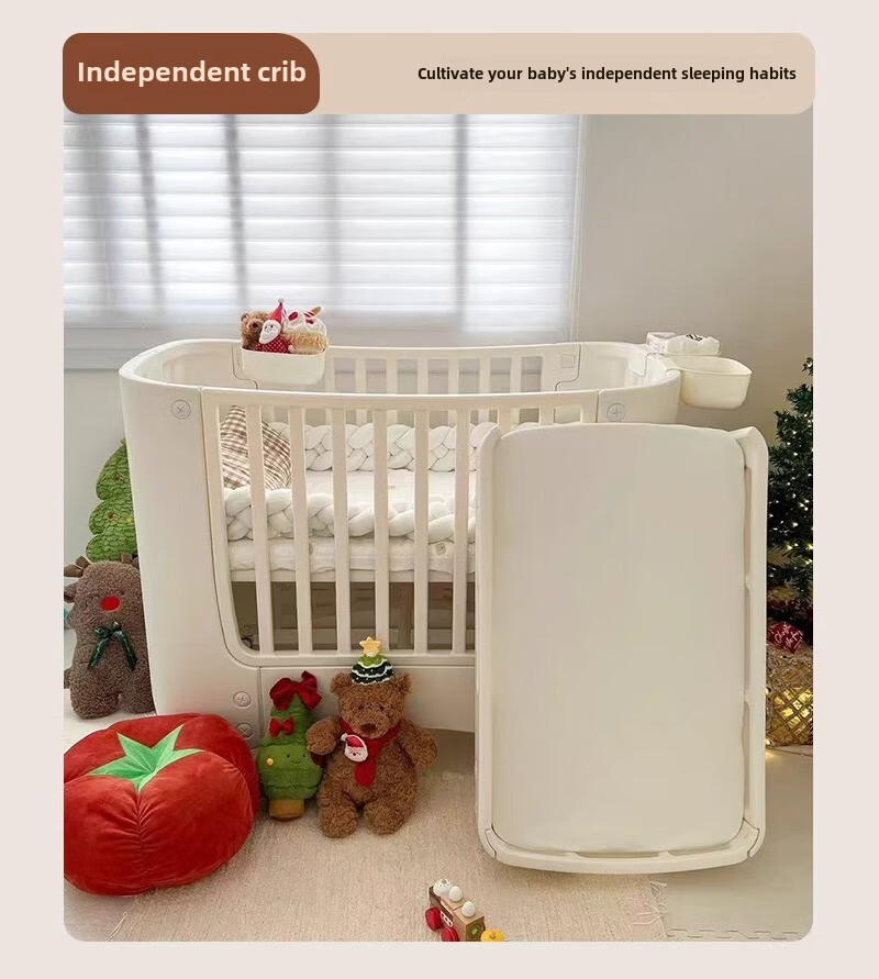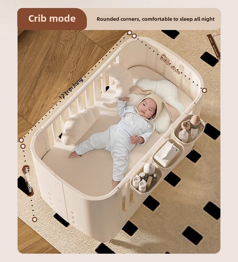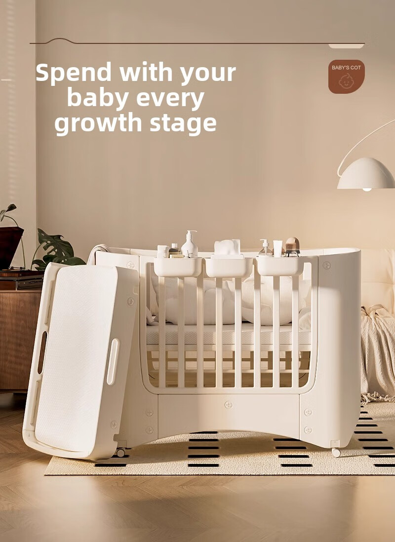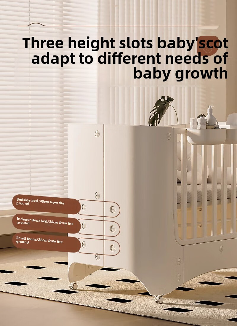 婴儿床可移动多功能新生儿拼接大床Bb床可调节高度变化桌婴儿床 婴儿床+挂盆+椰棕乳胶垫+尿布台 其他_组装_框架结构