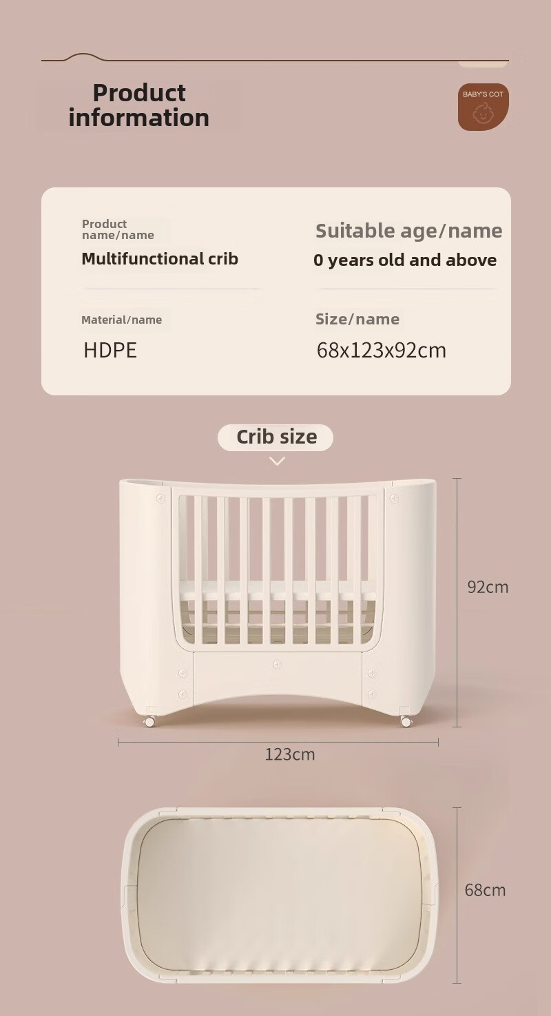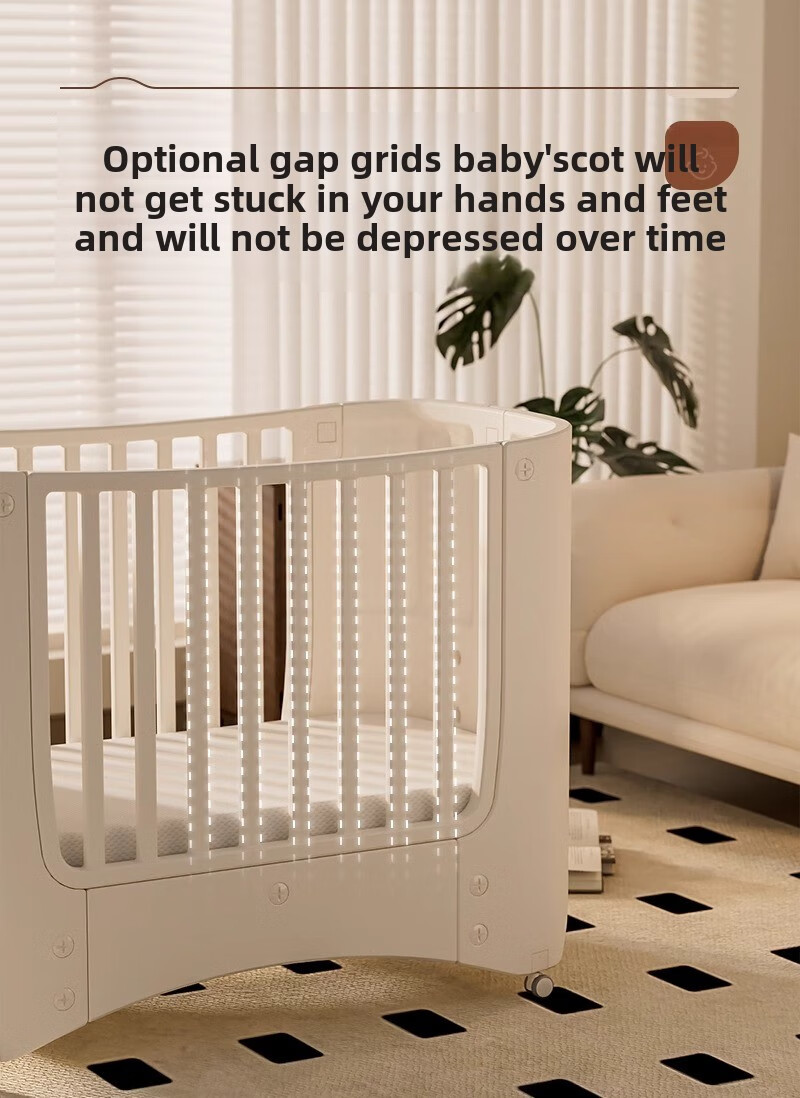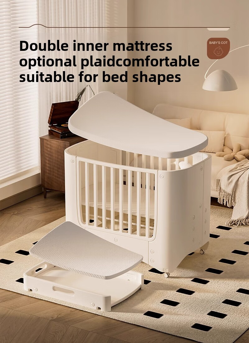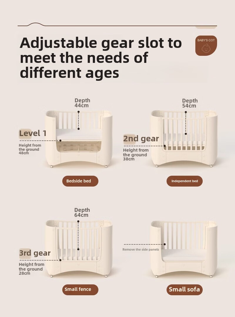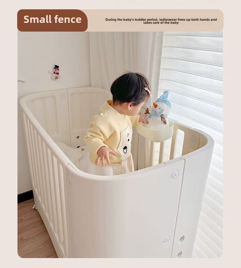 婴儿床可移动多功能新生儿拼接大床Bb床可调节高度变化桌婴儿床 婴儿床+挂盆+椰棕乳胶垫+尿布台 其他_组装_框架结构