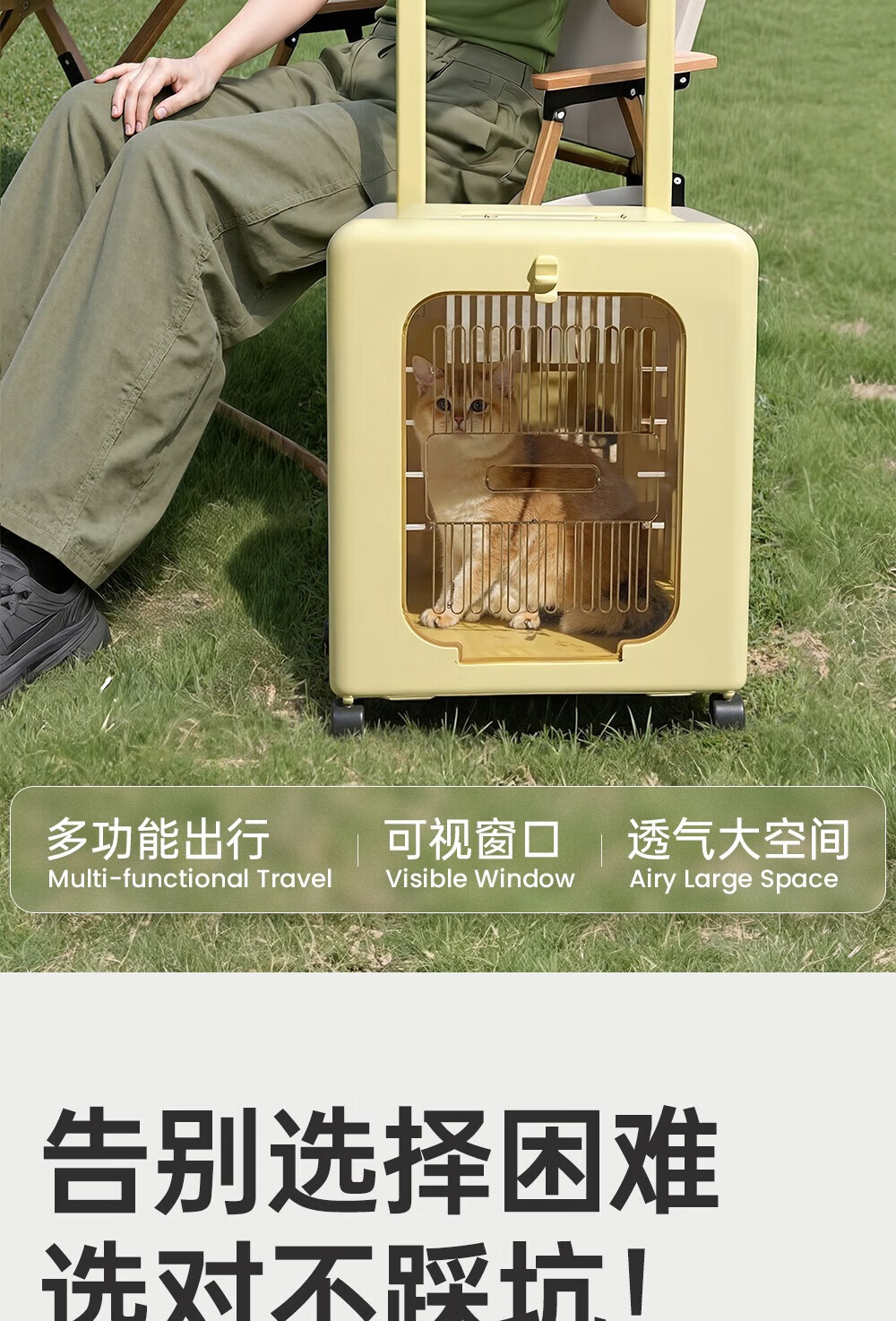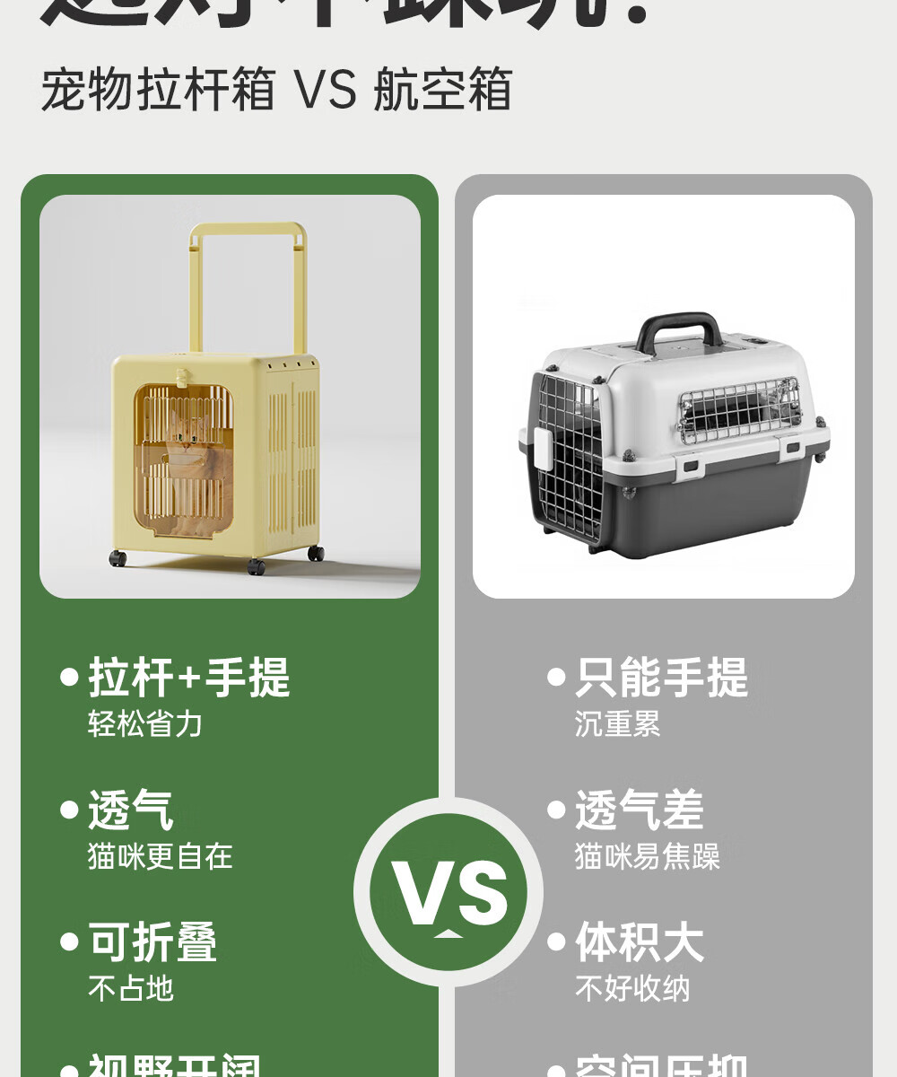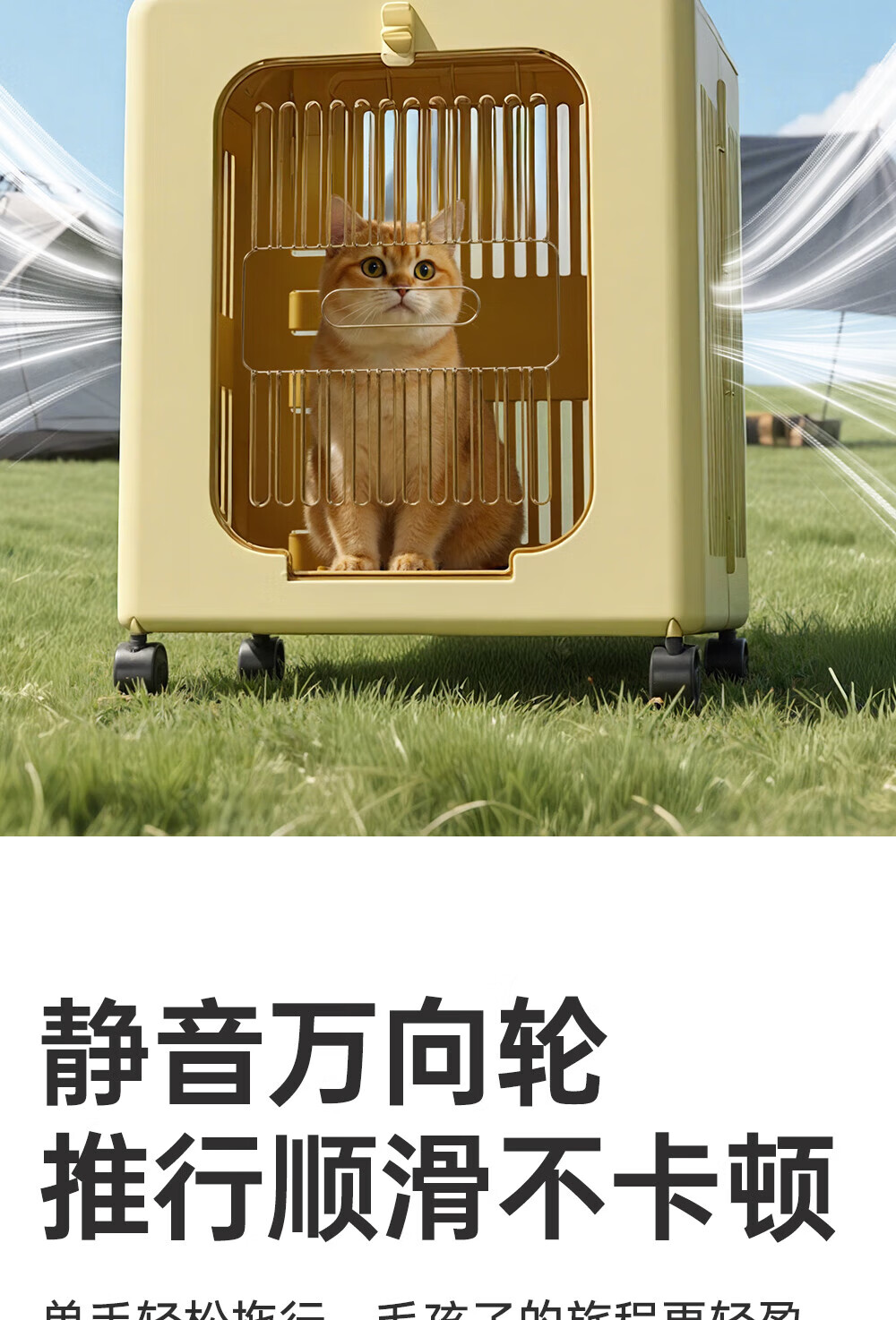 Outdoor cat outing box, foldable portable suitcase, large capacity trolley box, pet cat flight box, off-white, extremely breathable, 75CM extra long trolley
