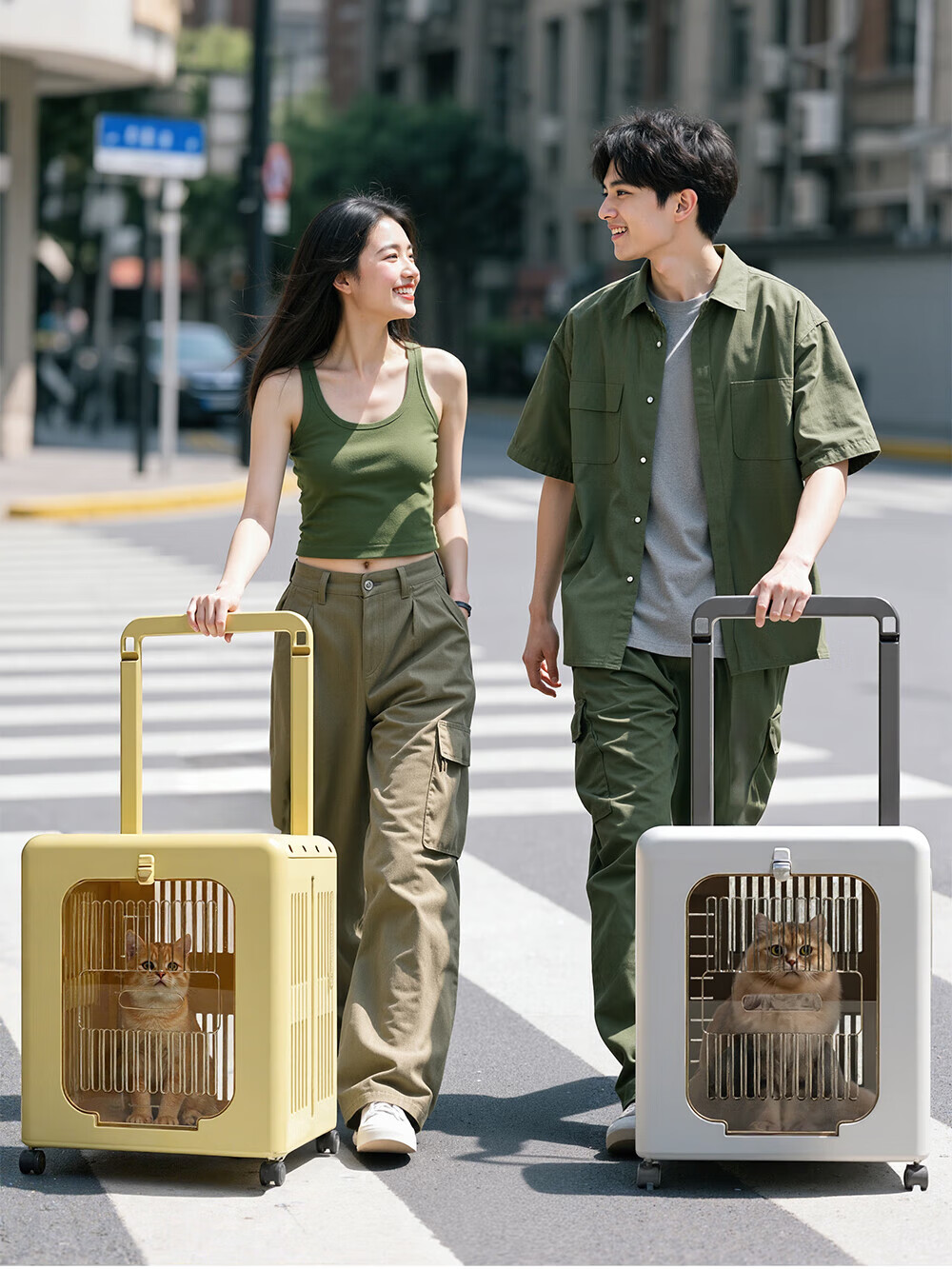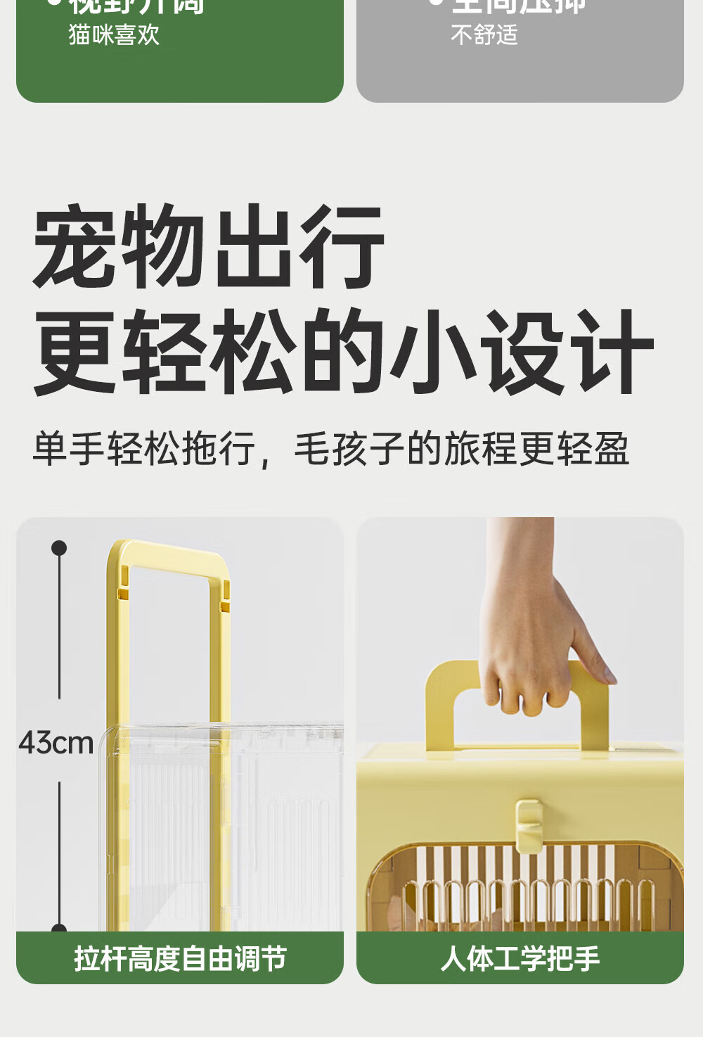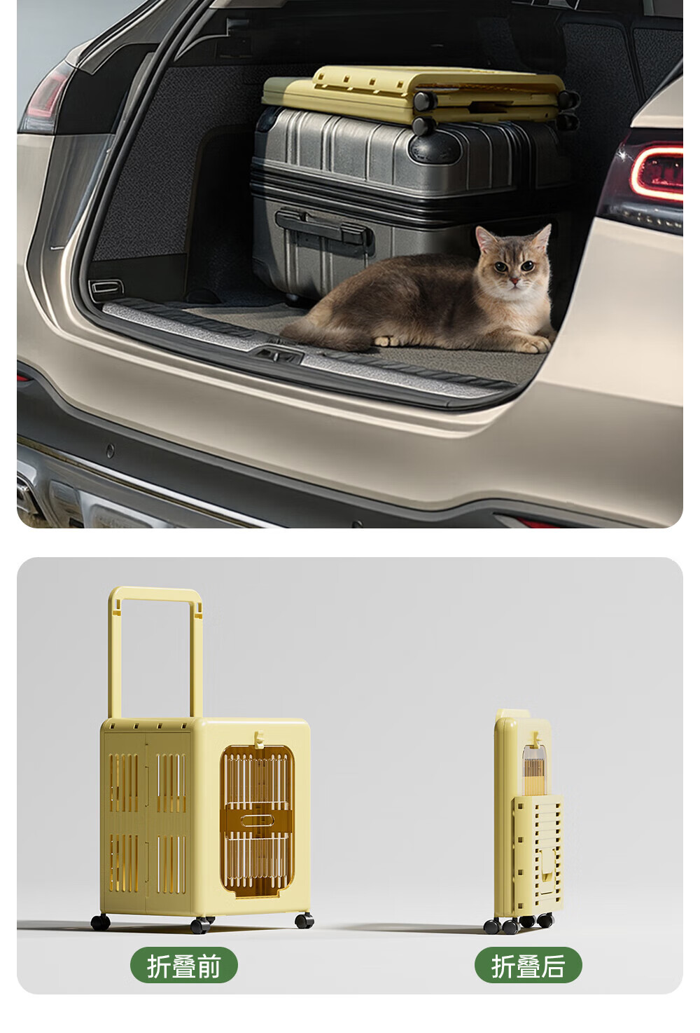 Outdoor cat outing box, foldable portable suitcase, large capacity trolley box, pet cat flight box, off-white, extremely breathable, 75CM extra long trolley