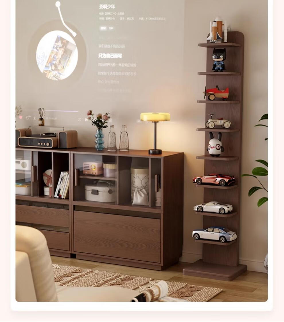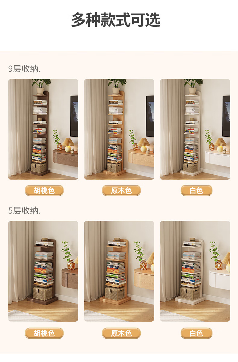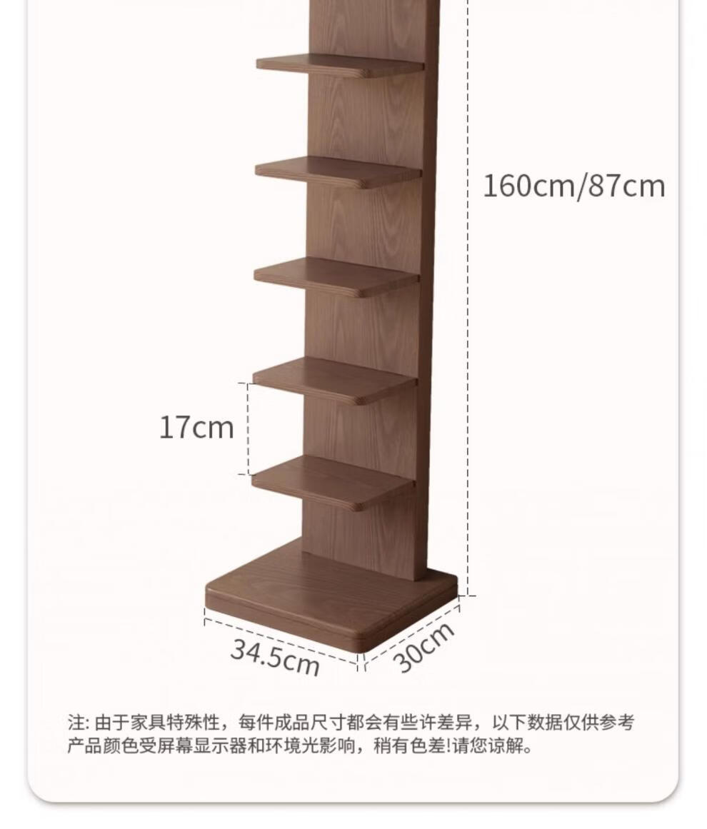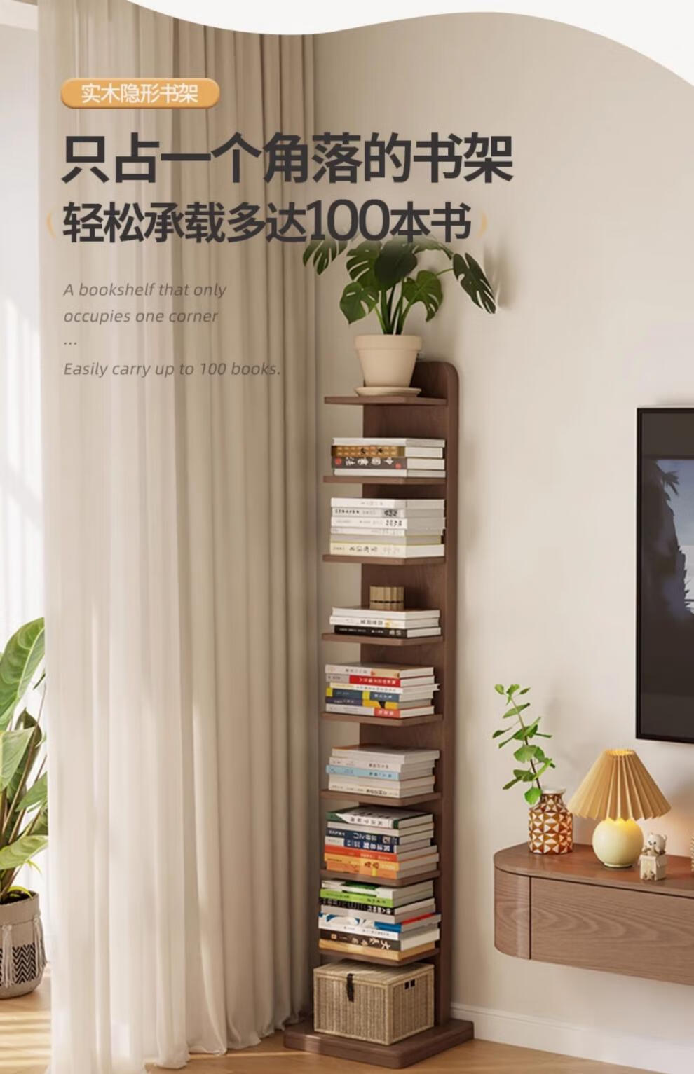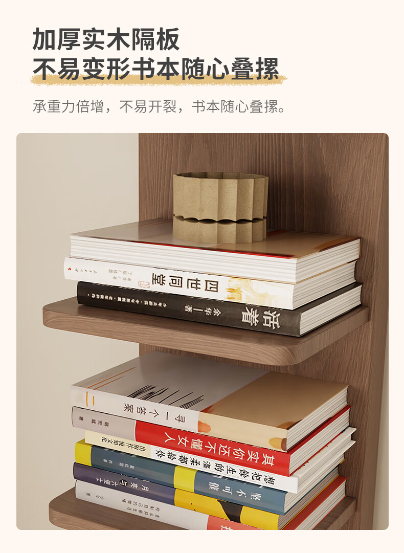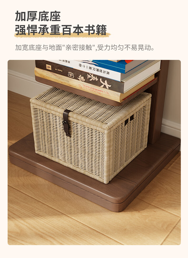 艾迪姿广东佛山实木书架落地置物架隐形立式客厅小书架转角防倾倒窄书柜 9层实木隐形书架-胡桃色