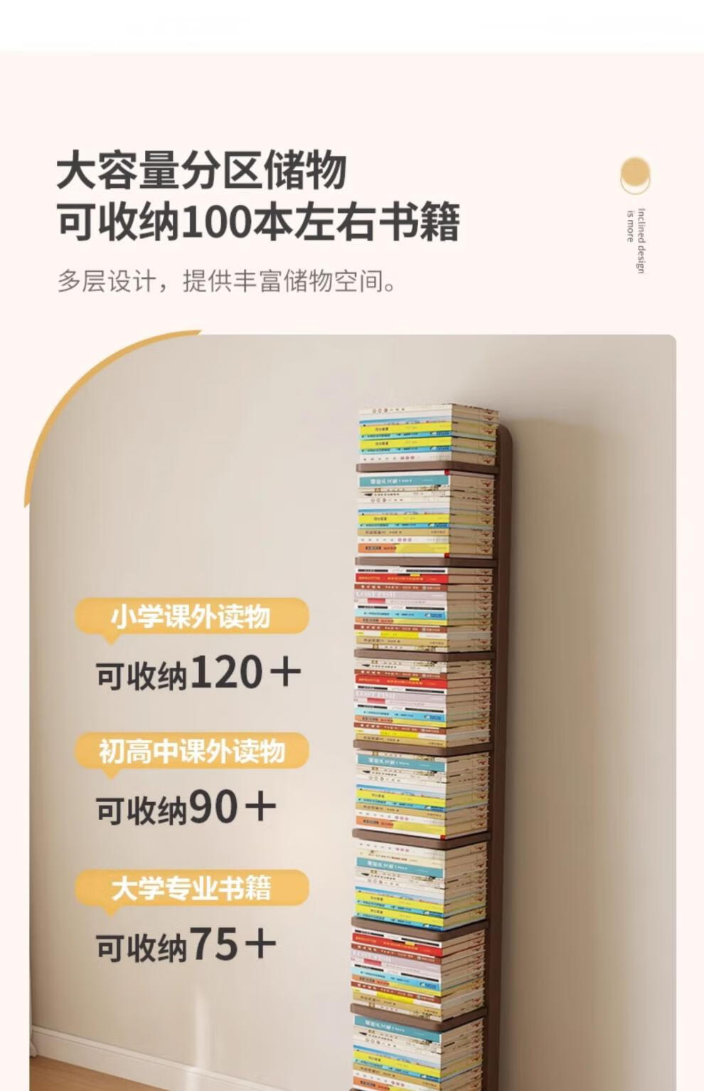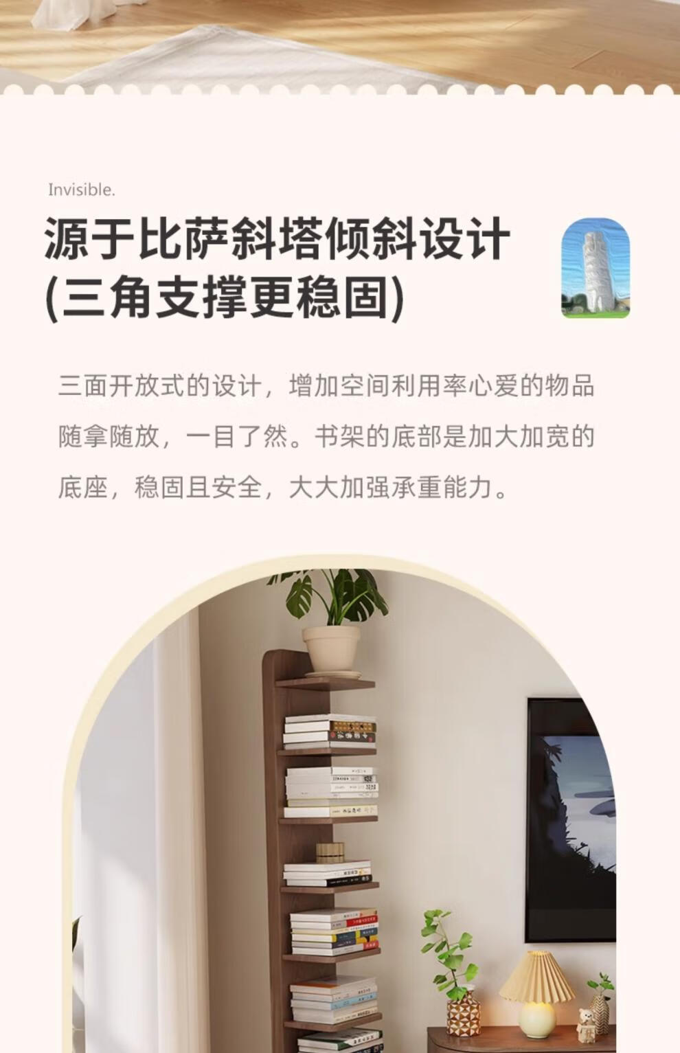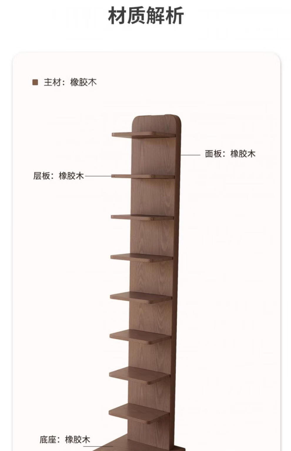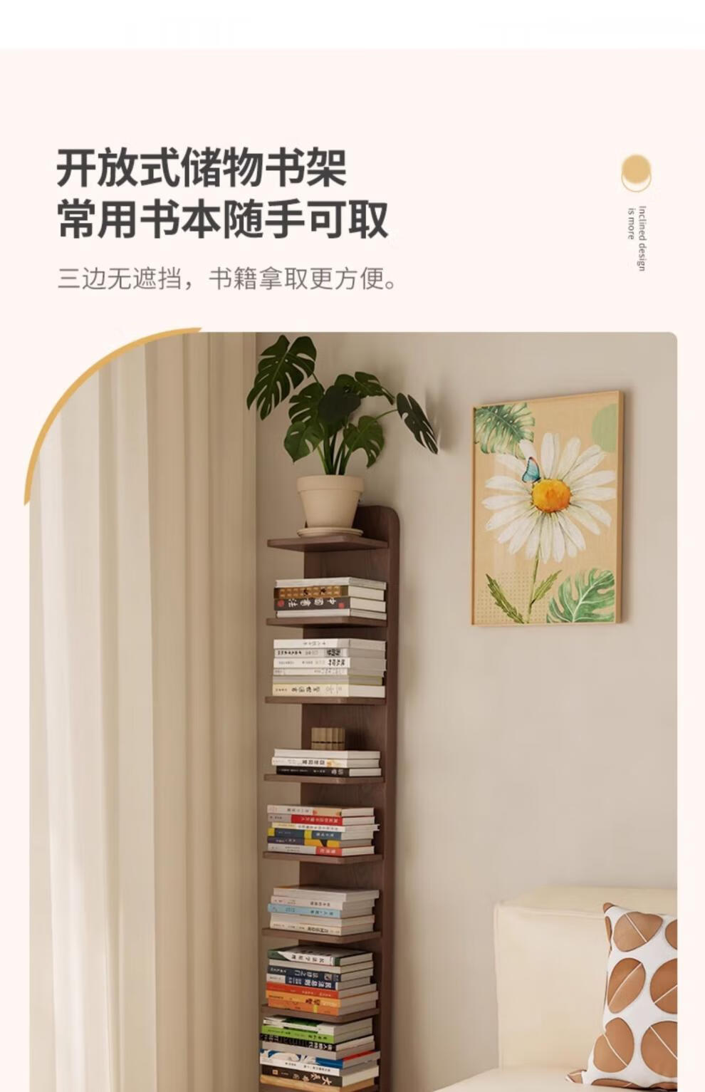 艾迪姿广东佛山实木书架落地置物架隐形立式客厅小书架转角防倾倒窄书柜 9层实木隐形书架-胡桃色