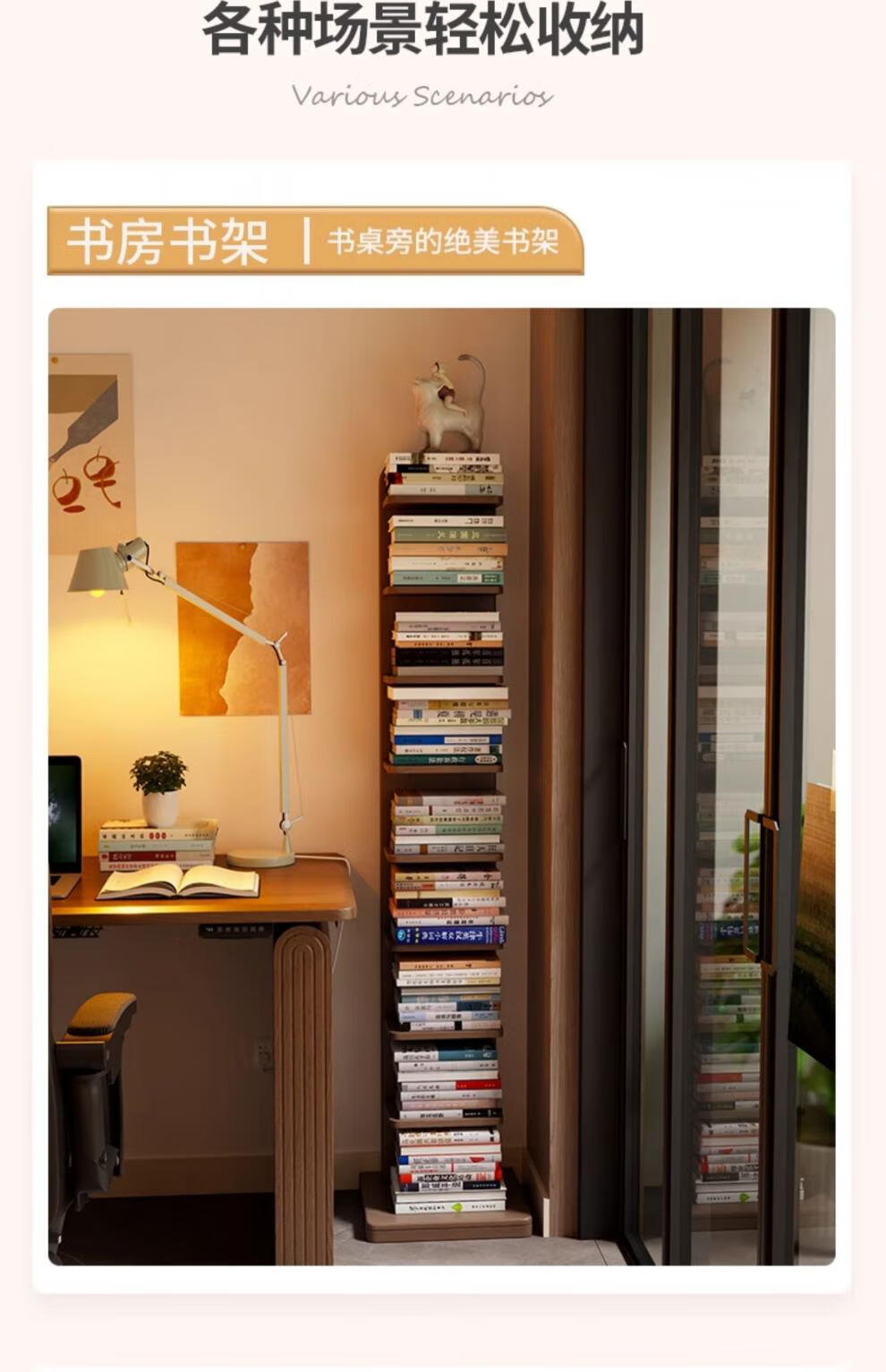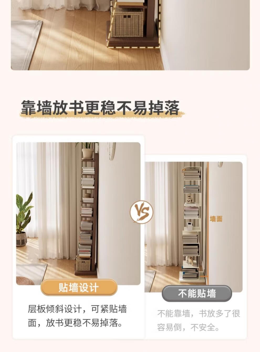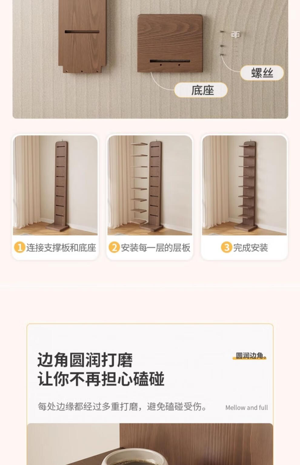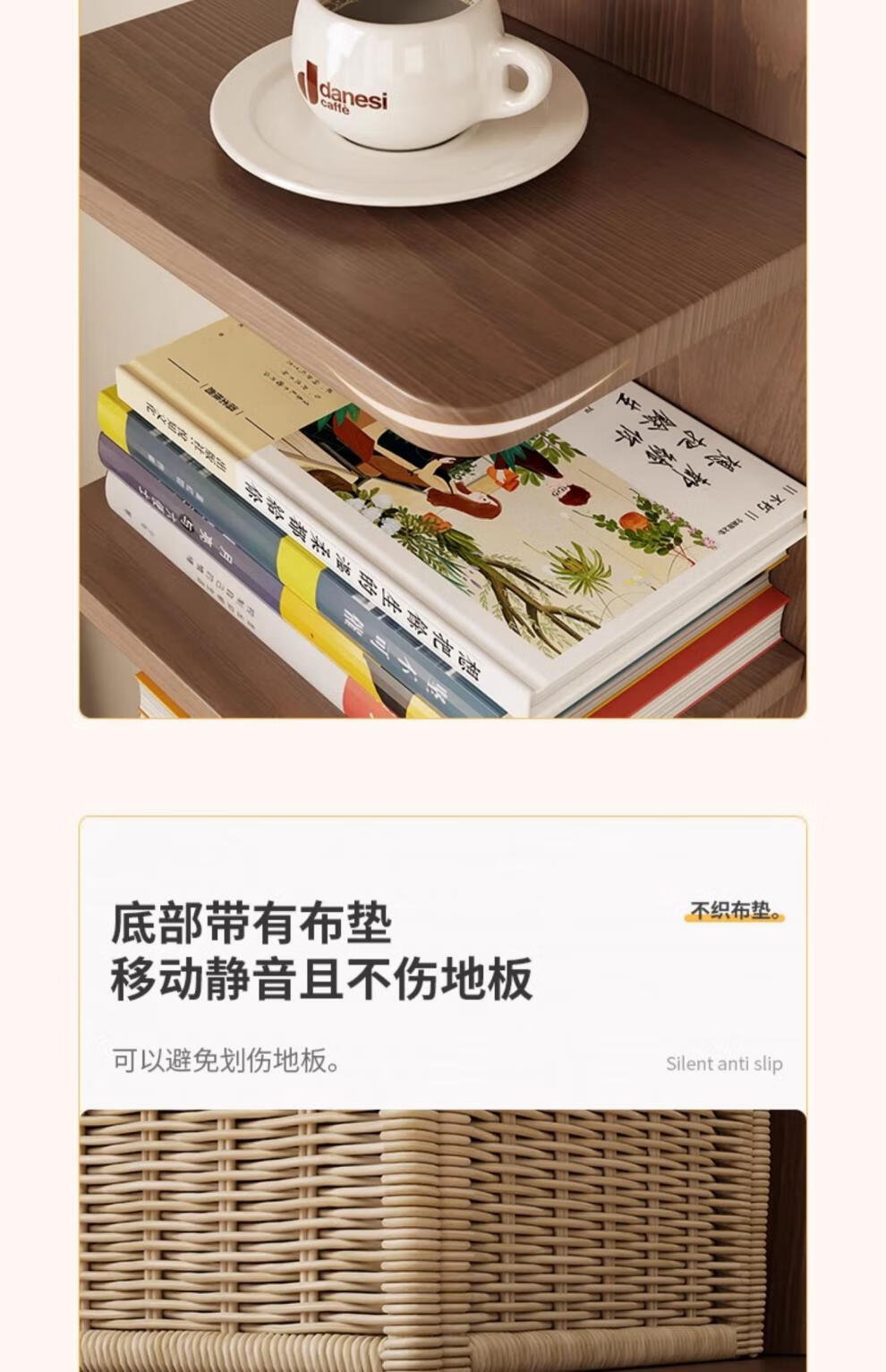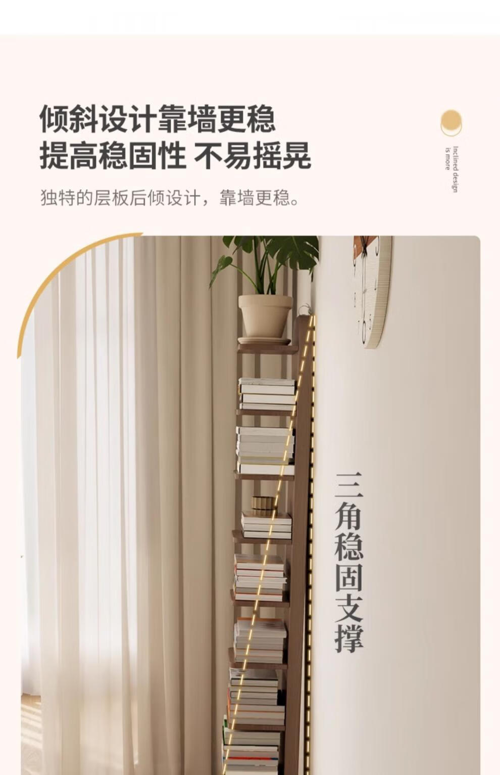 艾迪姿广东佛山实木书架落地置物架隐形立式客厅小书架转角防倾倒窄书柜 9层实木隐形书架-胡桃色