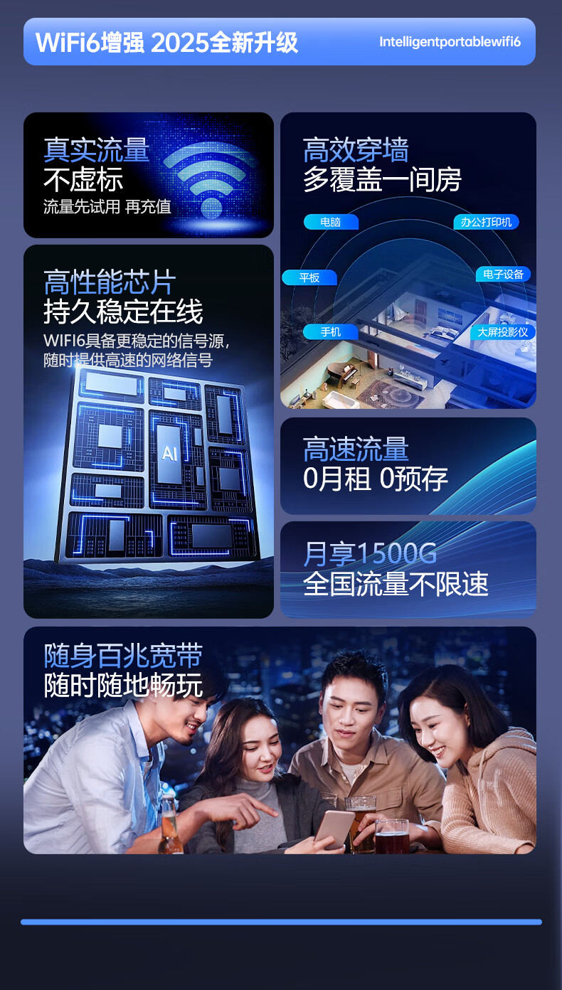 咖柠绮随身wifi2025款移动无线网络wifi-6三网全国通用无限高速流量家用携带上网卡智能超长续航车载路由 【光纤版】78核提速7999%-送1500G
