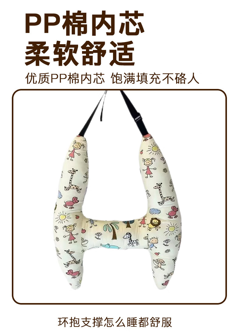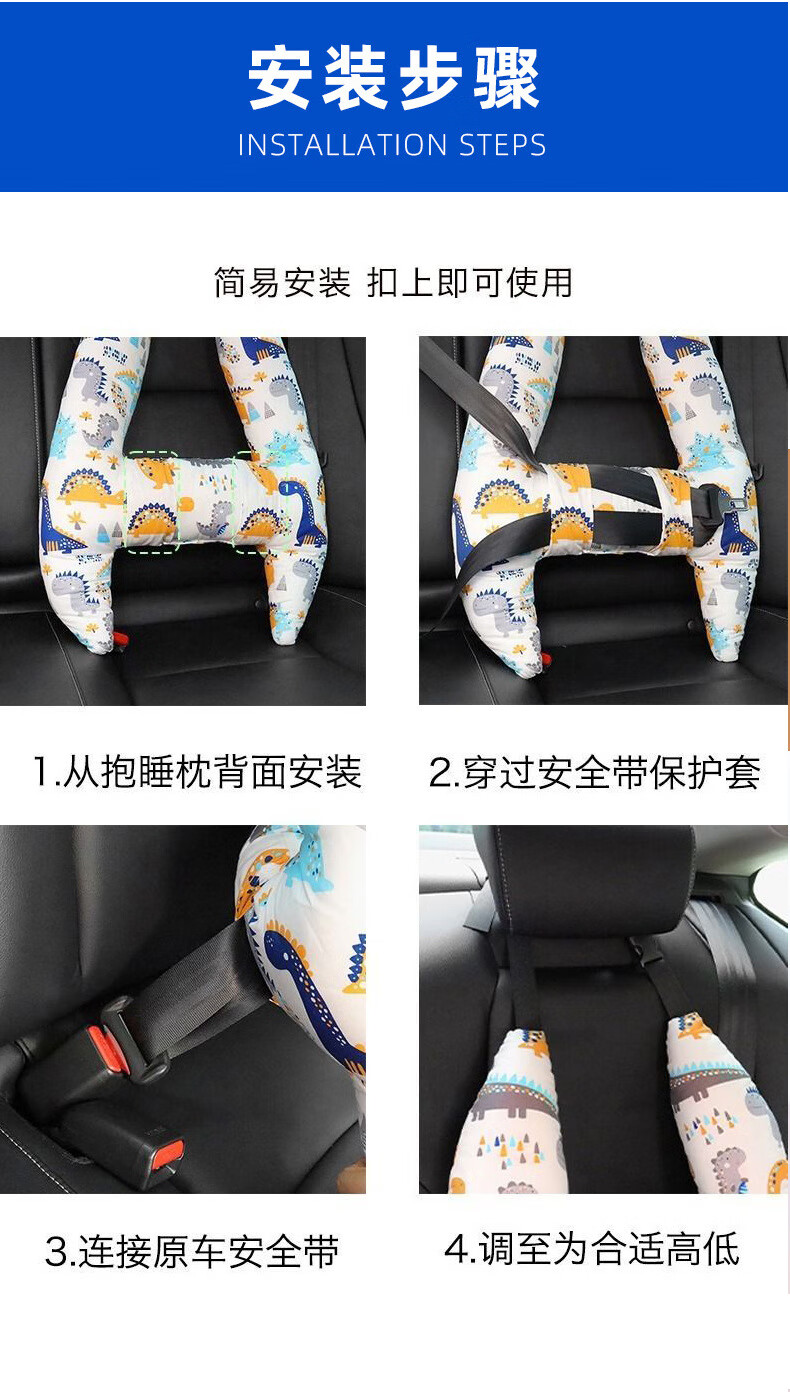 汽车抱枕儿童卡通睡枕车载抱枕车上舒适后排安全带防勒脖睡觉神器 蓝色恐龙 55*67