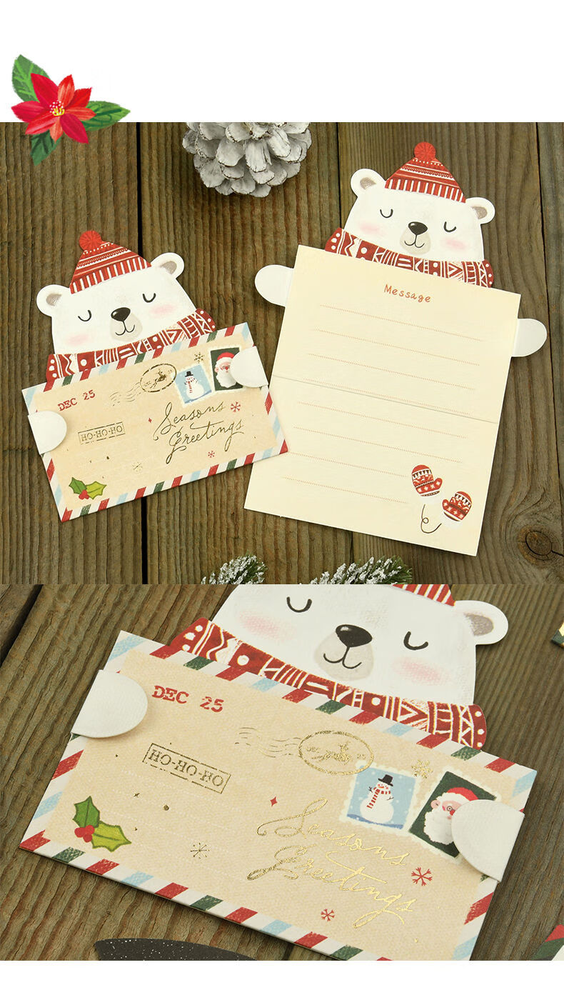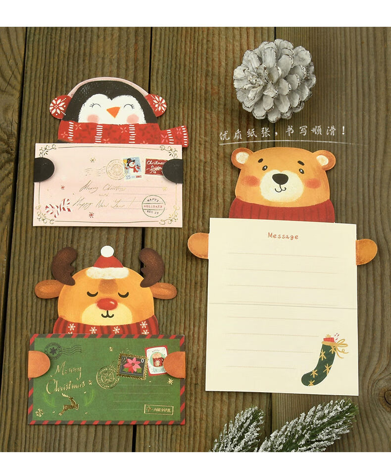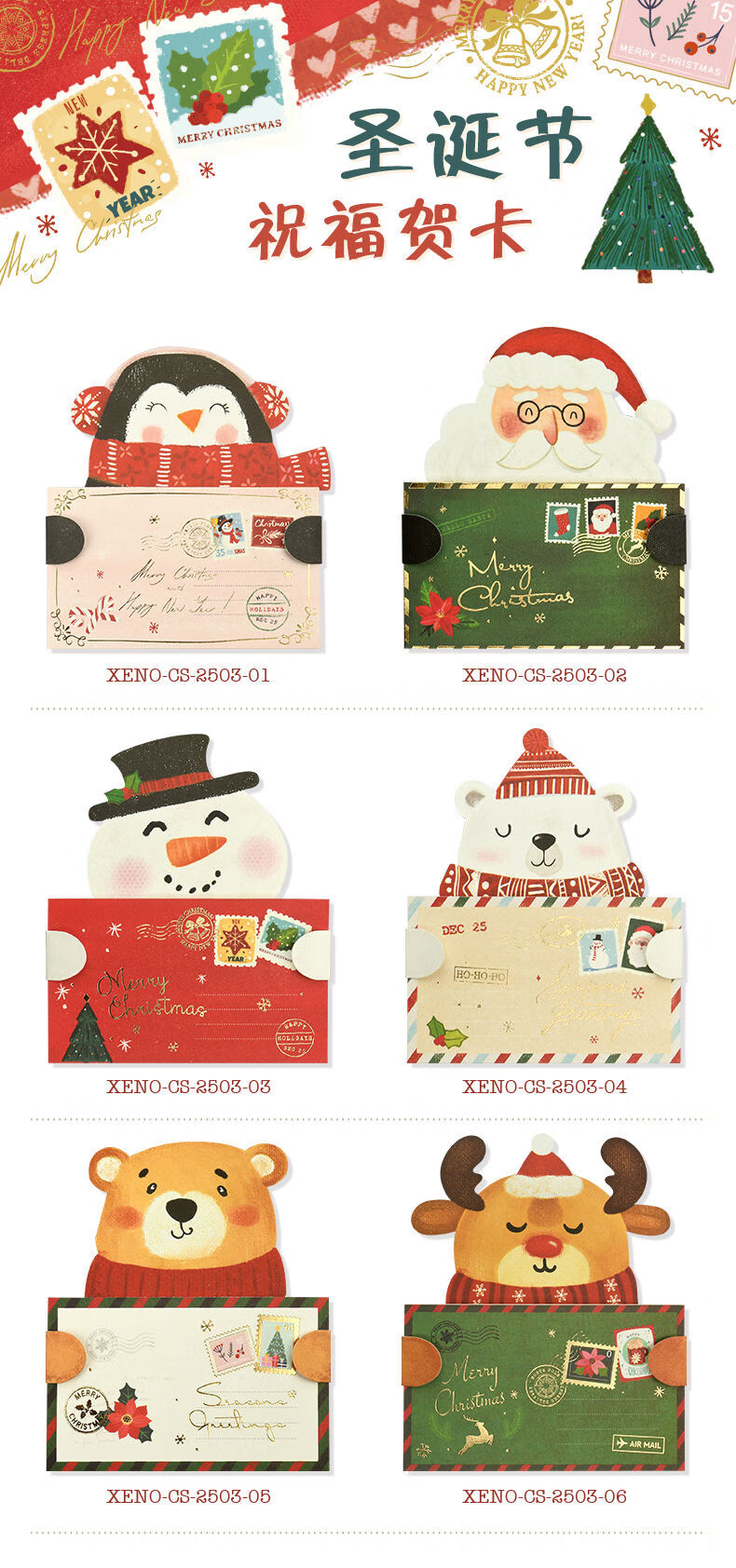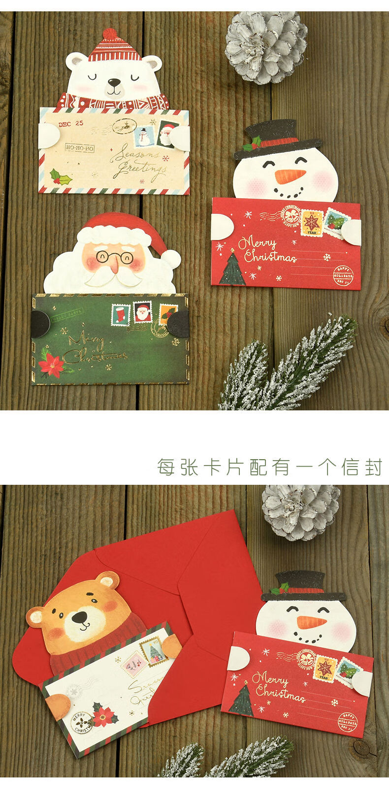 山头林村圣诞贺卡英文圣诞节平安夜礼物小卡片卡通可爱明信片幼儿园儿童小学生祝福留言卡手写信感谢折叠复 圣诞贺卡22021张装图案随机发
