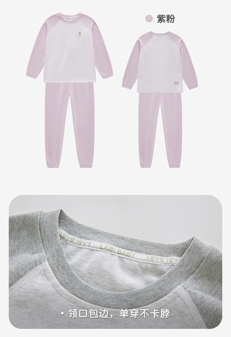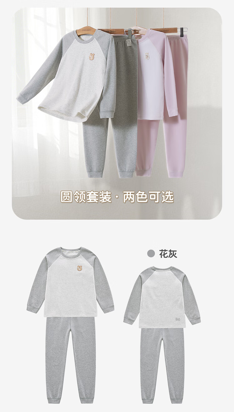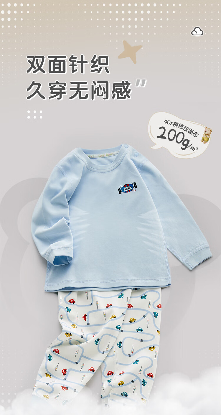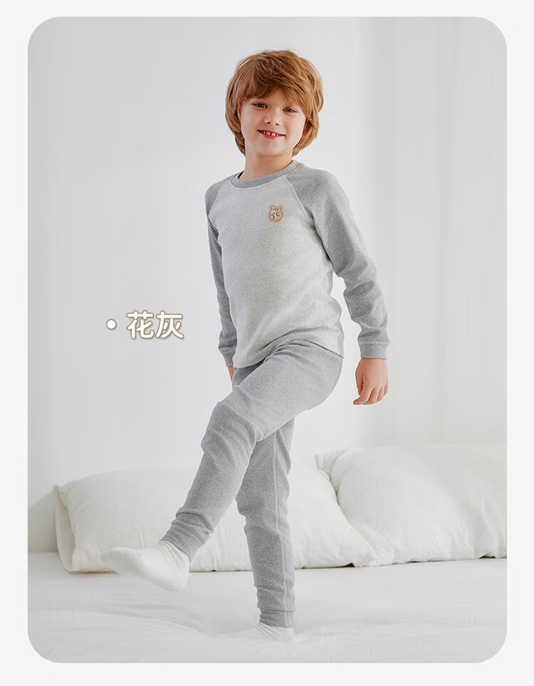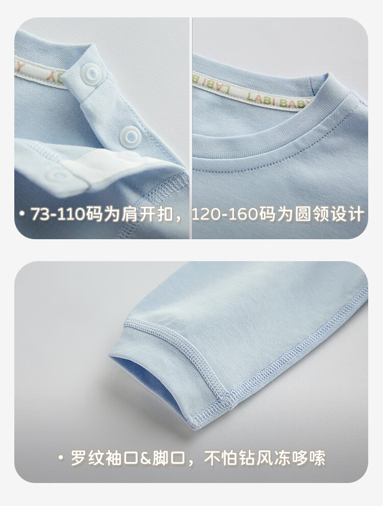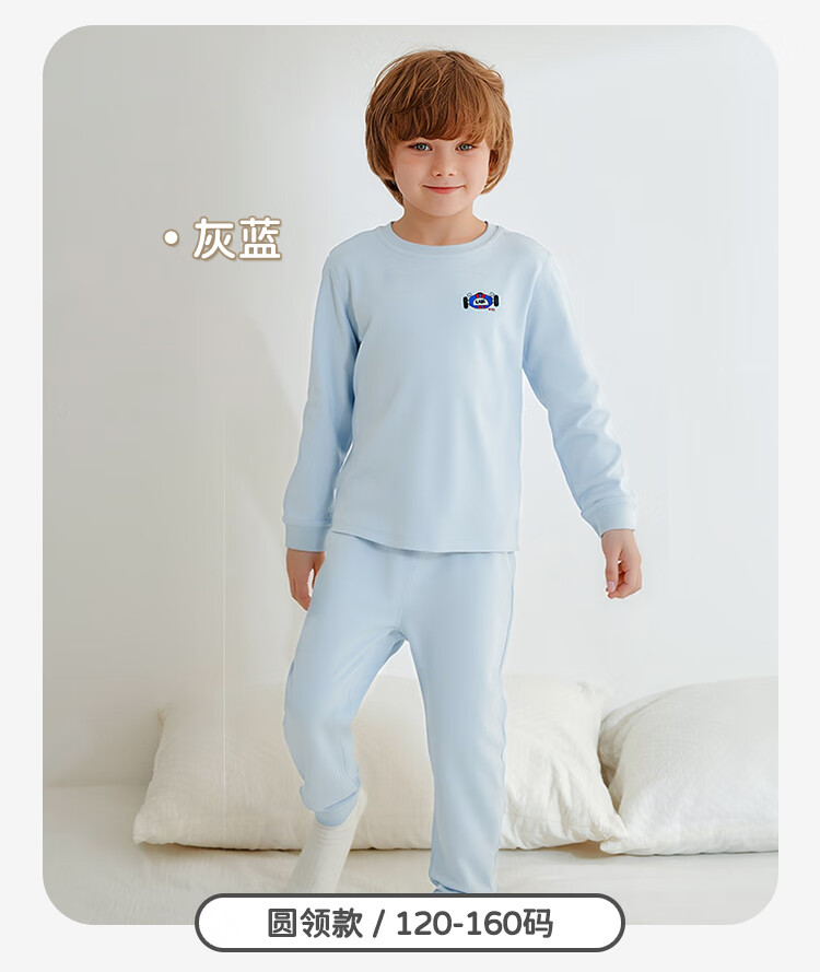 拉比【100%精梳棉】73-160码】儿童内衣套装秋衣裤男女童睡衣校服神器 圆领服套装-灰蓝(双面布) 150