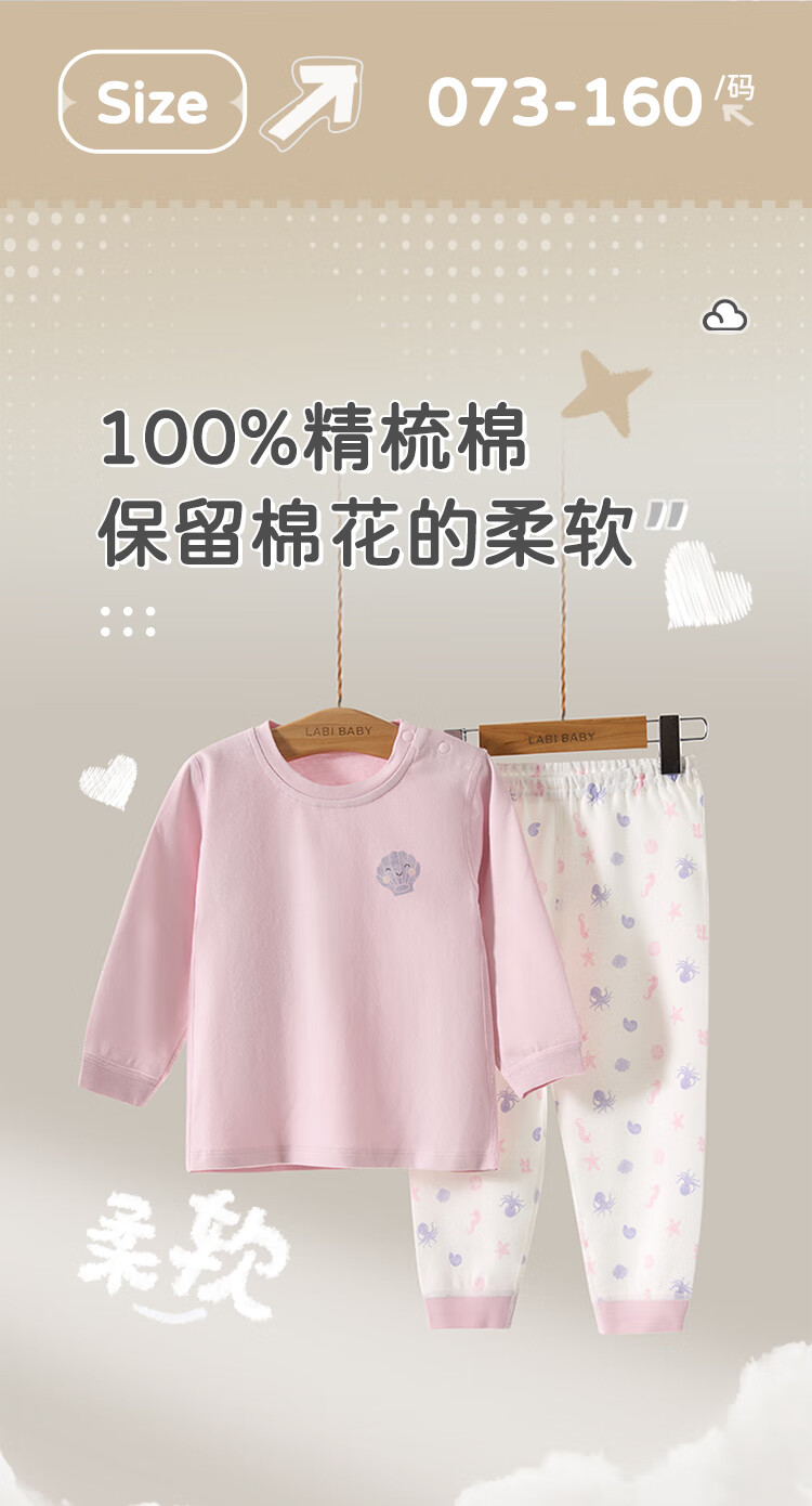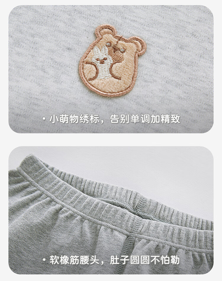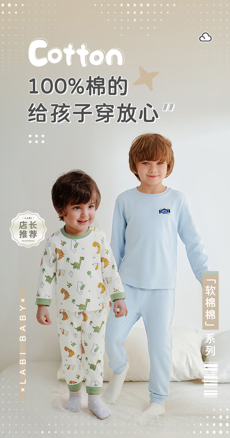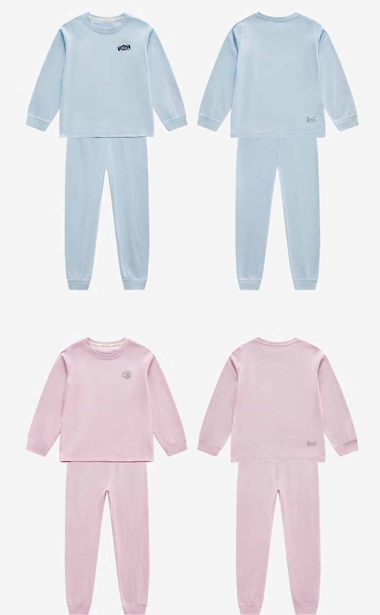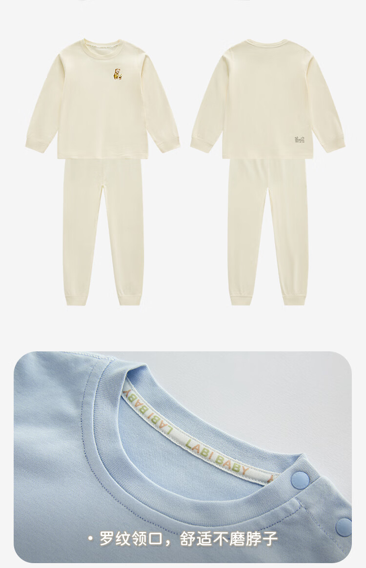 拉比【100%精梳棉】73-160码】儿童内衣套装秋衣裤男女童睡衣校服神器 圆领服套装-灰蓝(双面布) 150