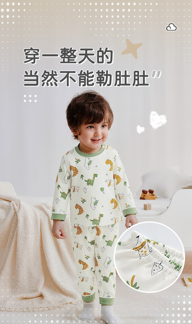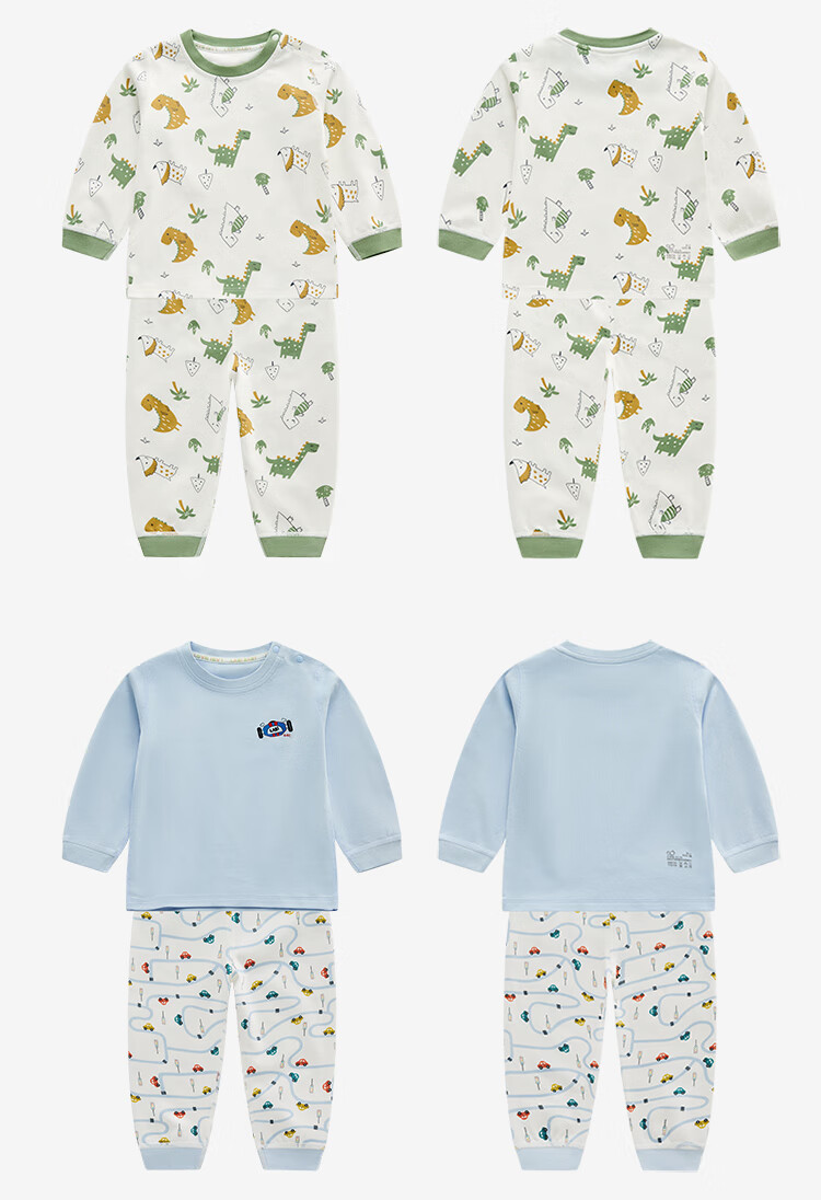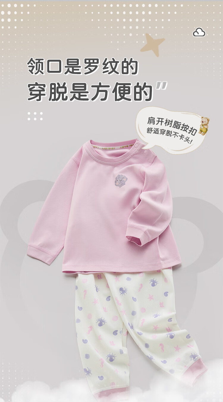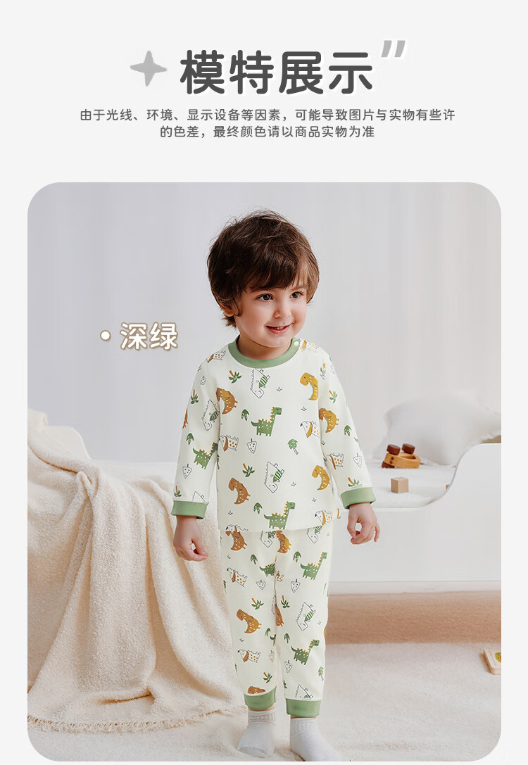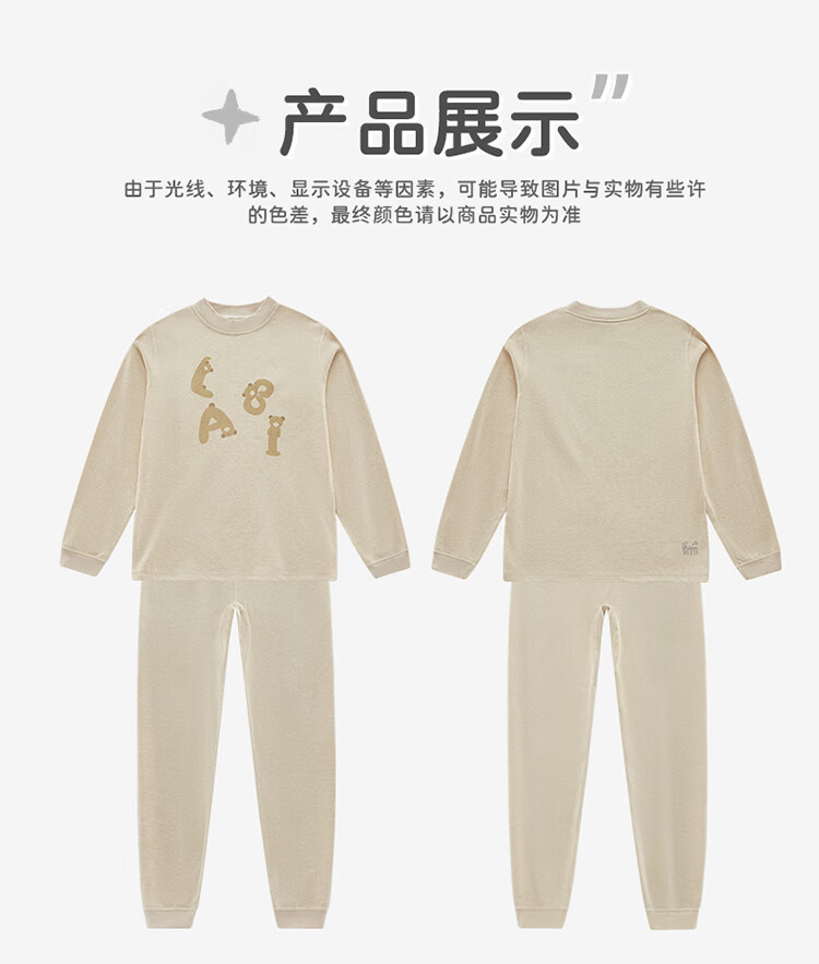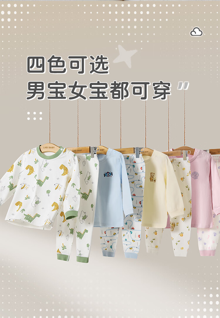 拉比【100%精梳棉】73-160码】儿童内衣套装秋衣裤男女童睡衣校服神器 圆领服套装-灰蓝(双面布) 150