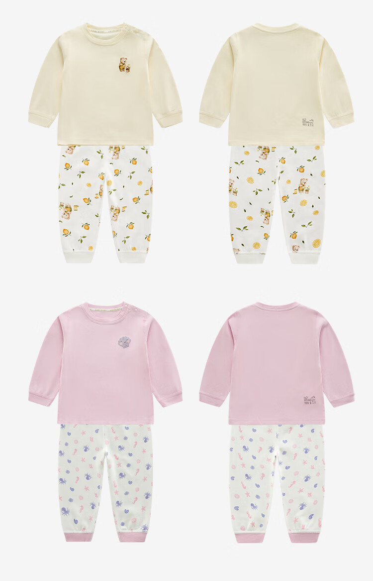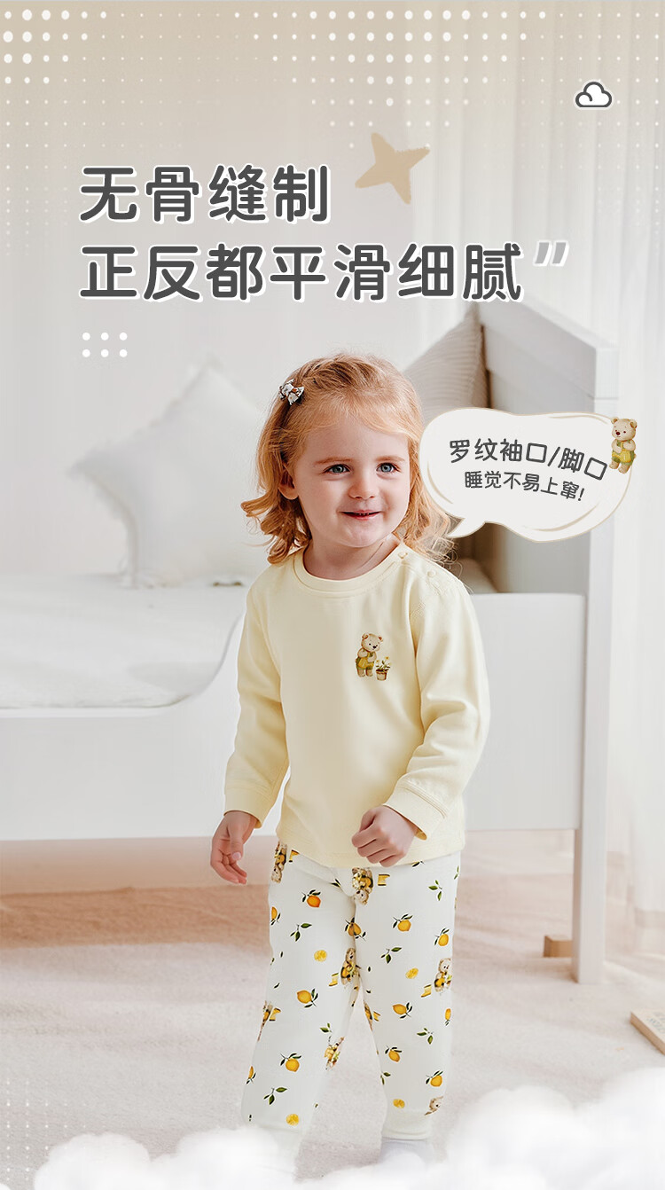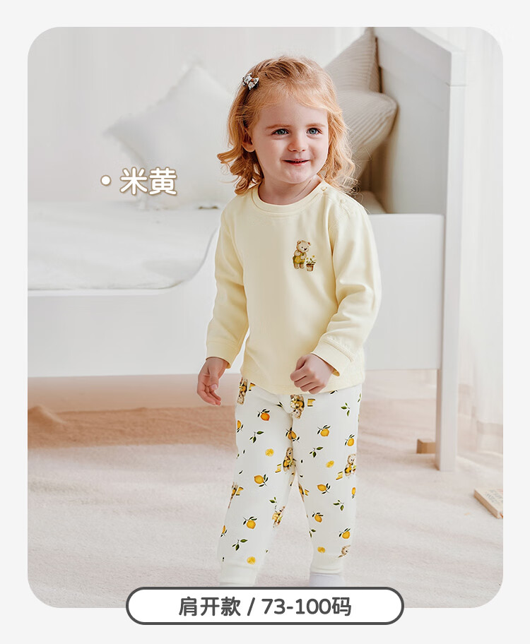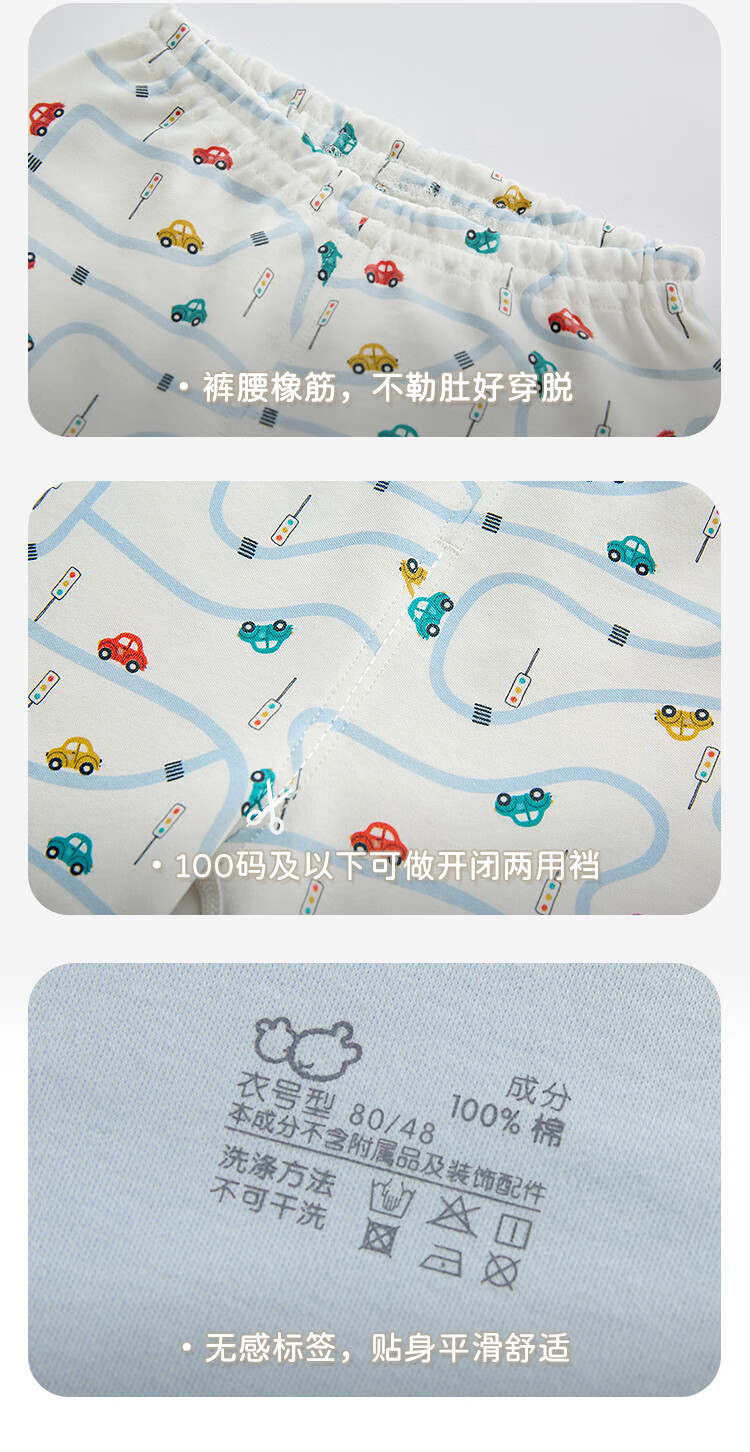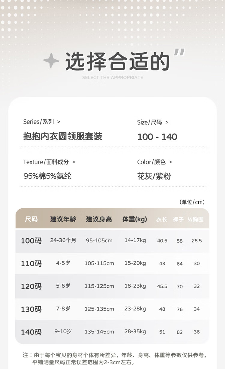 拉比【100%精梳棉】73-160码】儿童内衣套装秋衣裤男女童睡衣校服神器 圆领服套装-灰蓝(双面布) 150