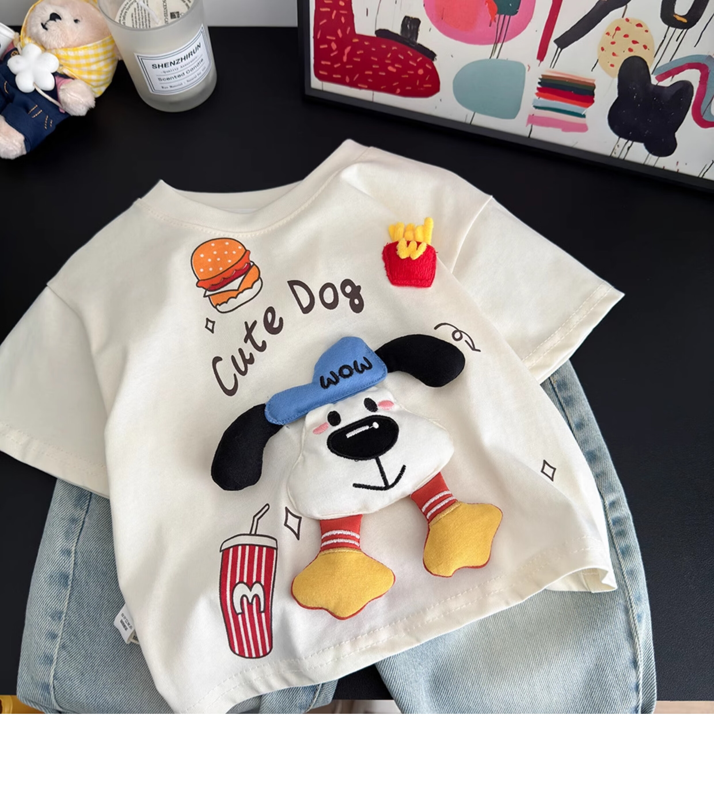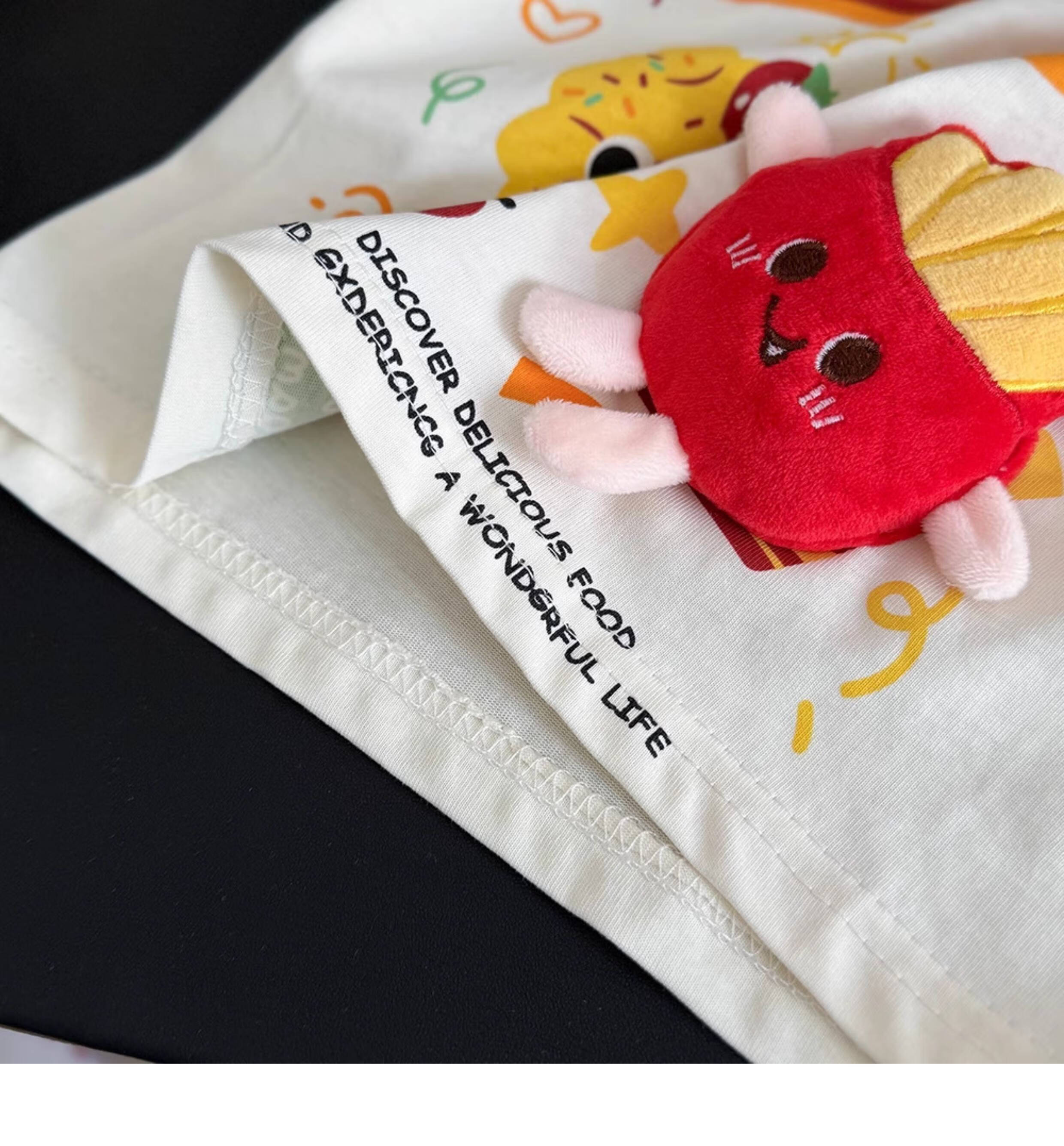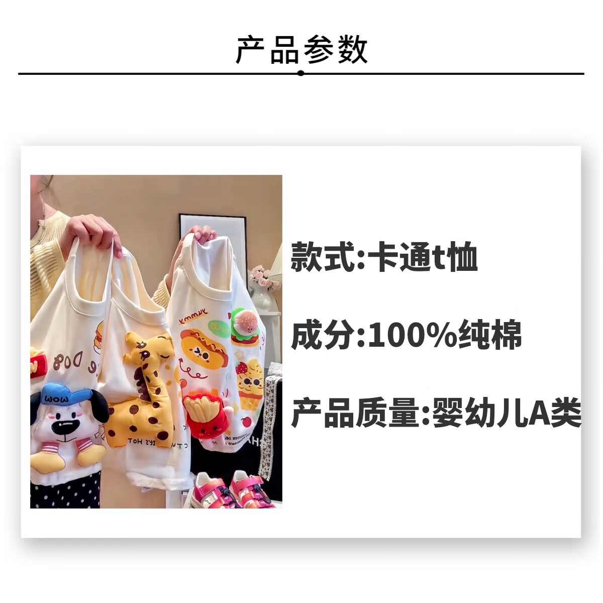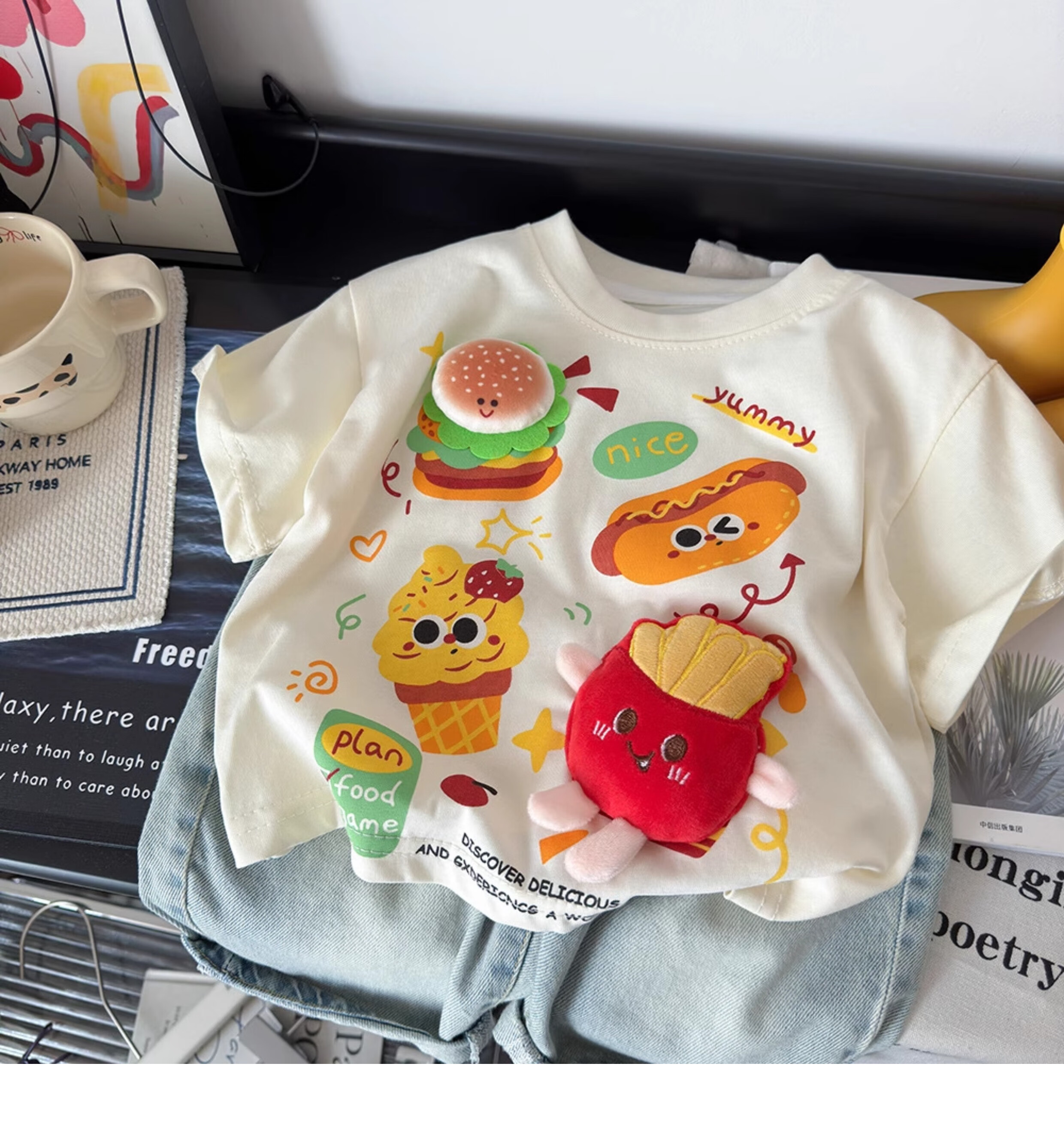 儿童纯棉短袖T恤子款立体玩偶卡通印花趣味可爱汉堡男女童薄款 阳光长颈鹿短袖 90 cm