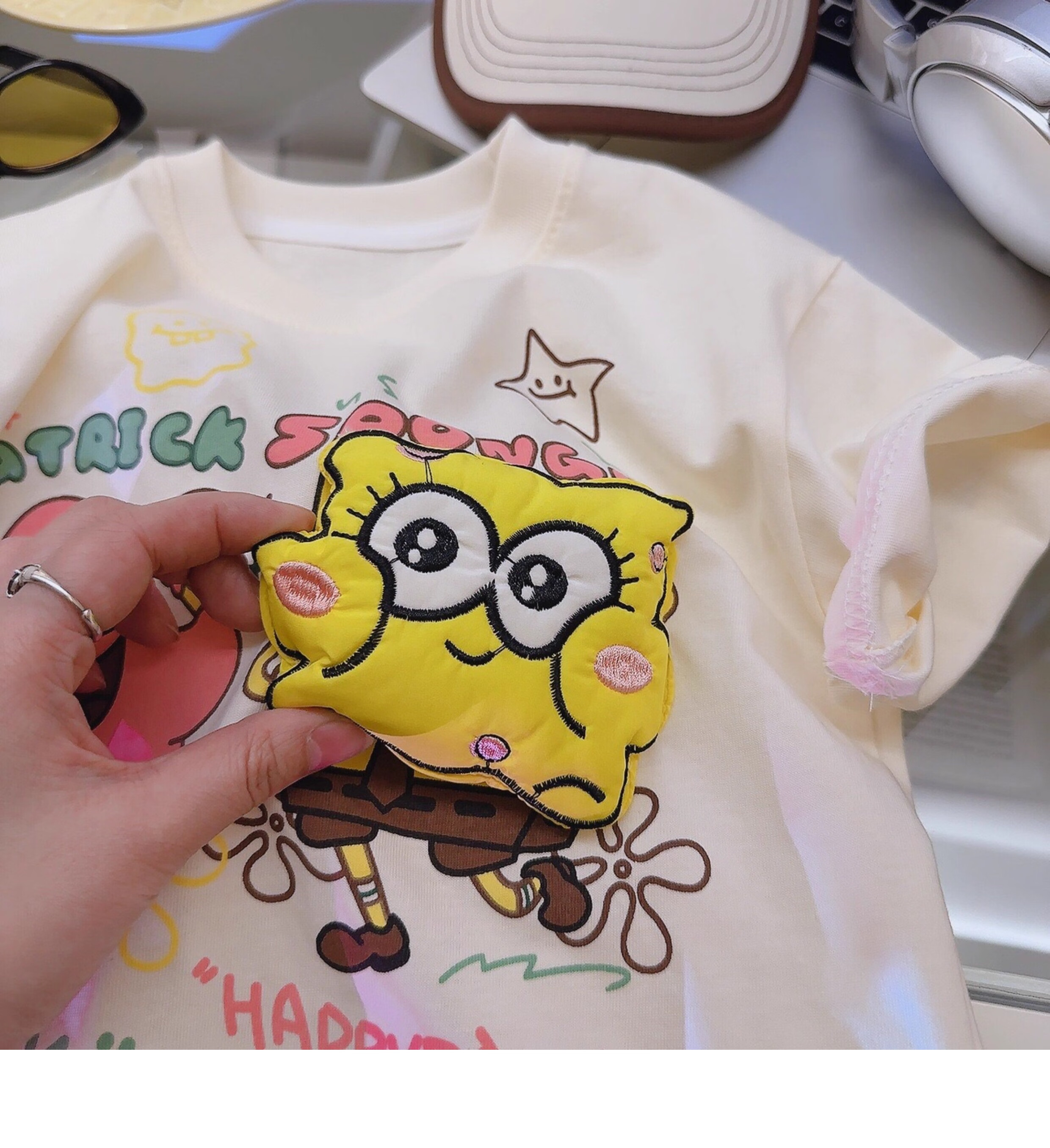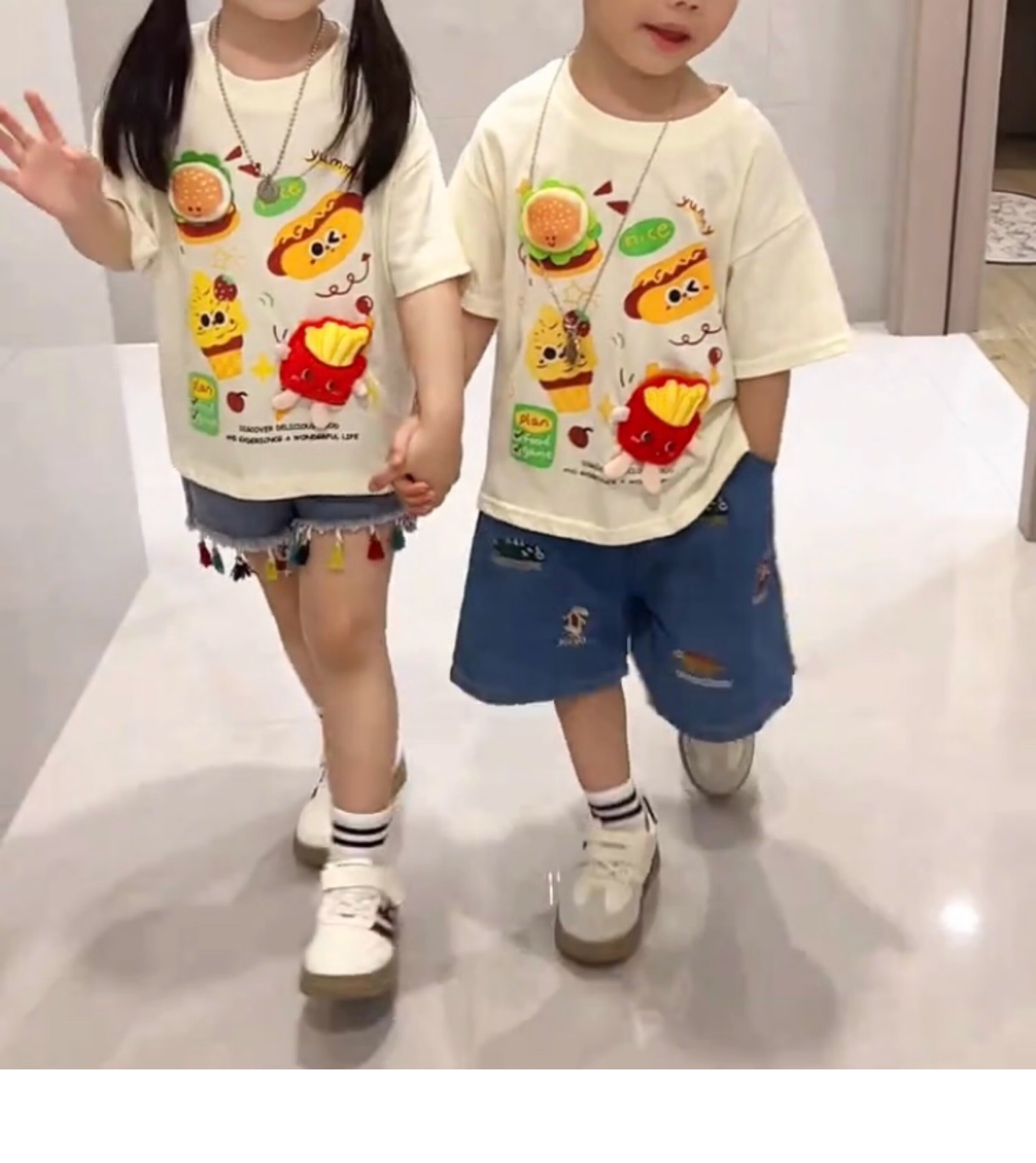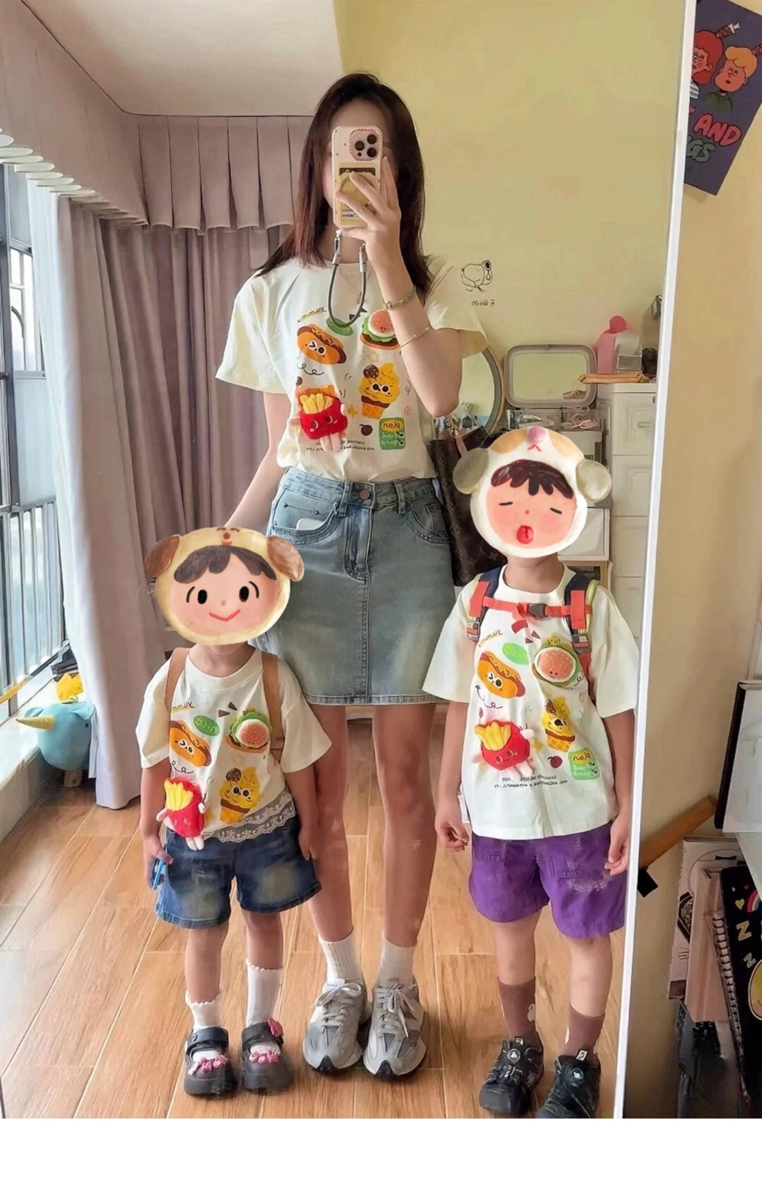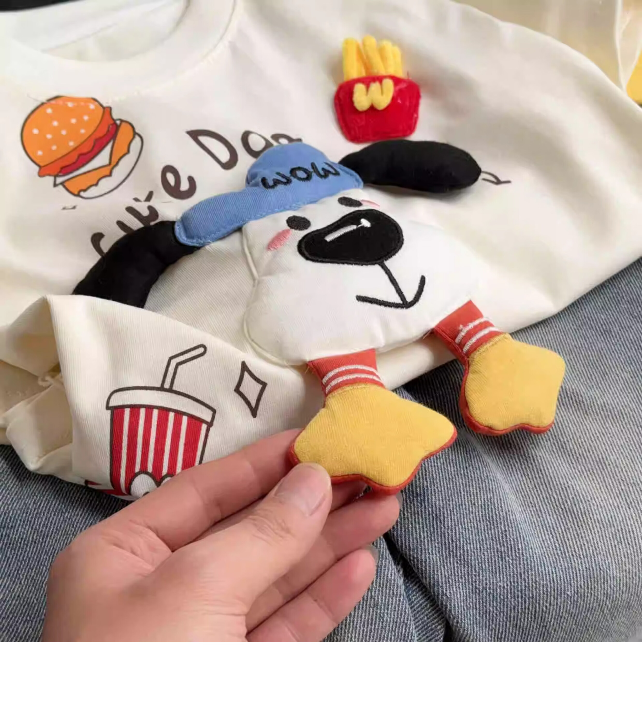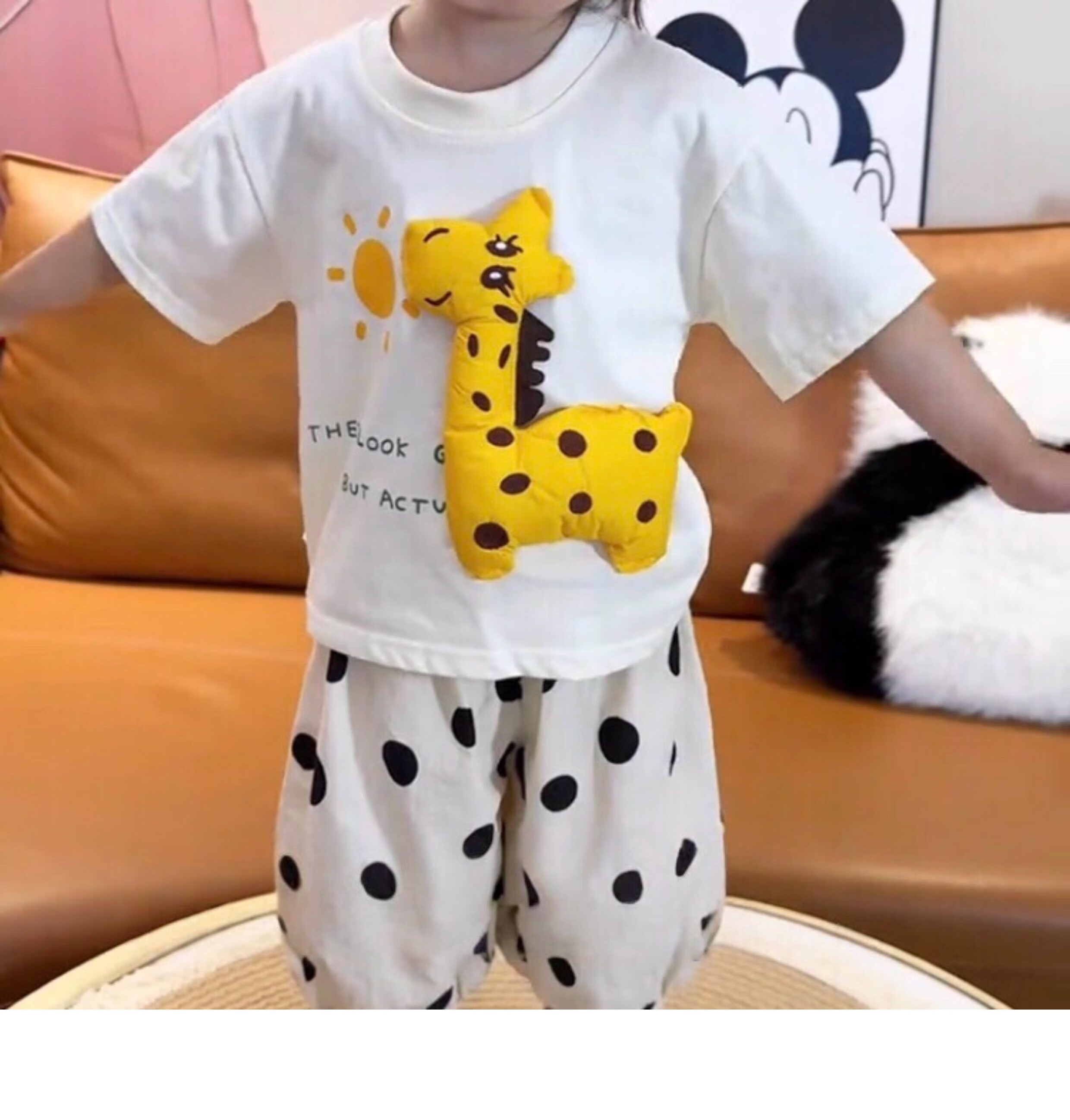 儿童纯棉短袖T恤子款立体玩偶卡通印花趣味可爱汉堡男女童薄款 阳光长颈鹿短袖 90 cm