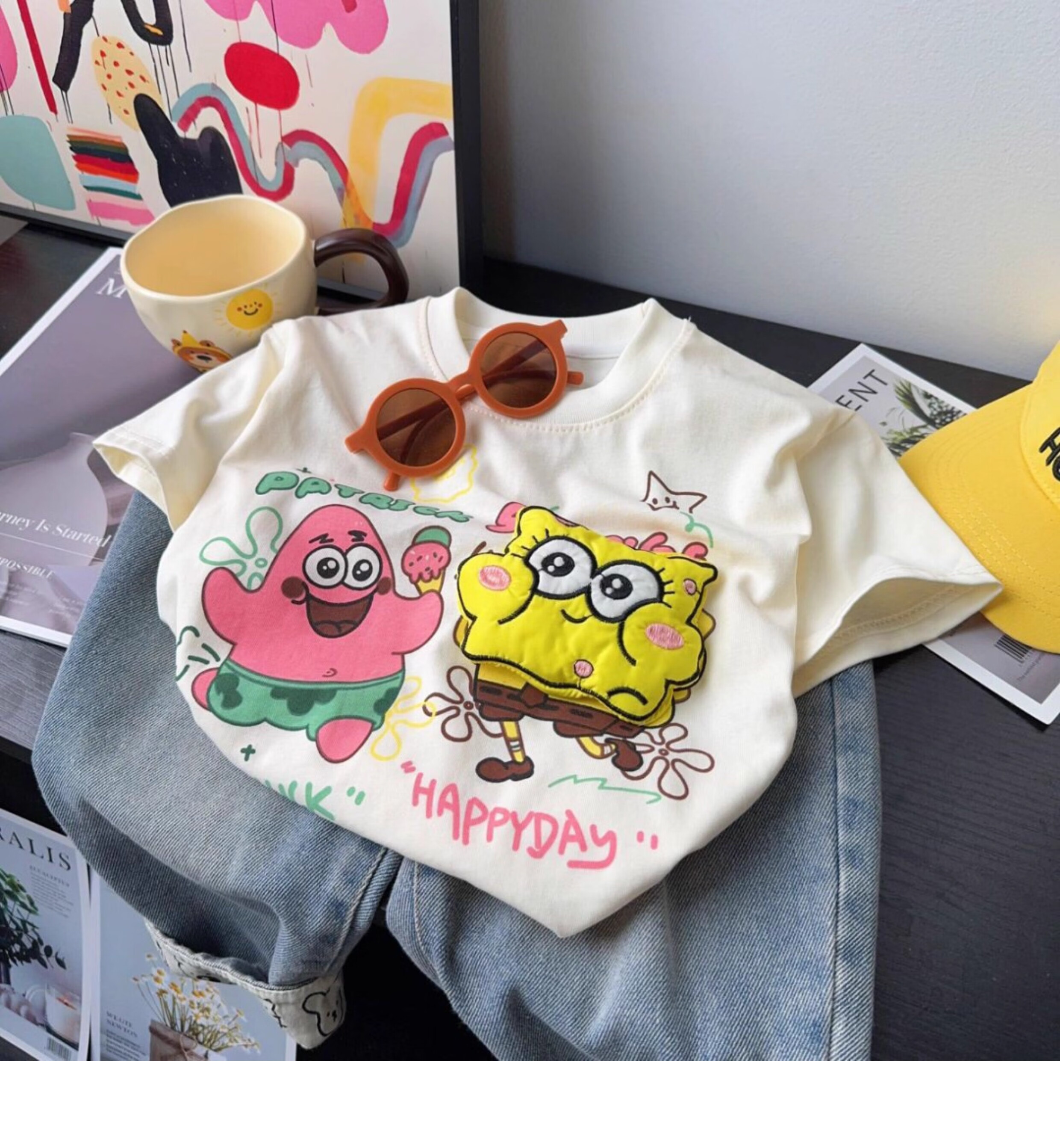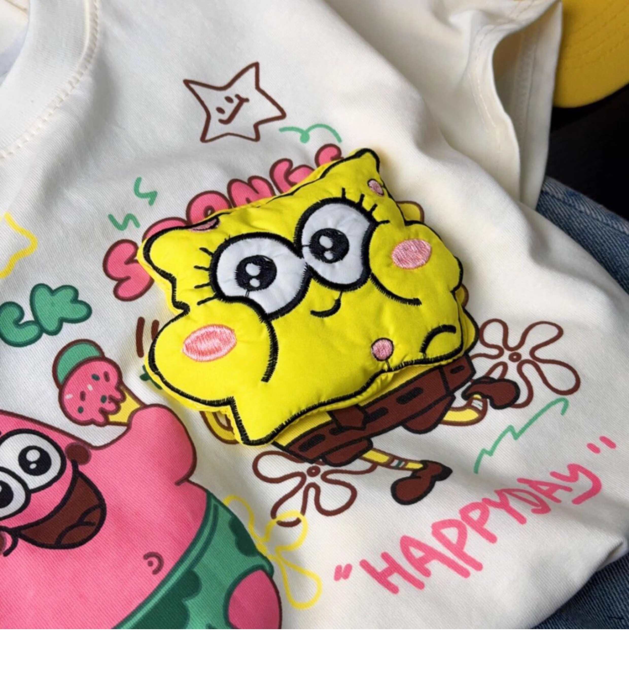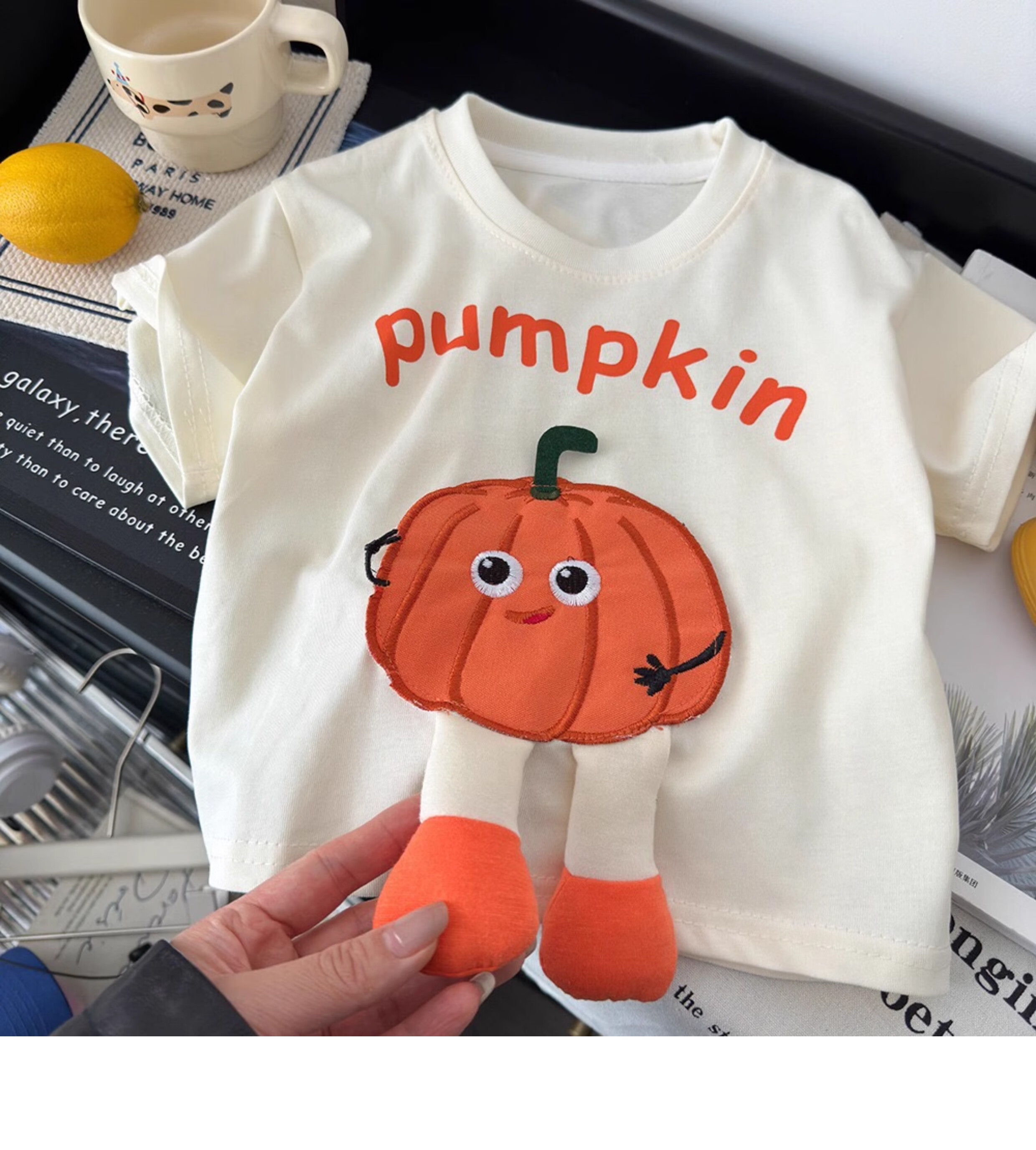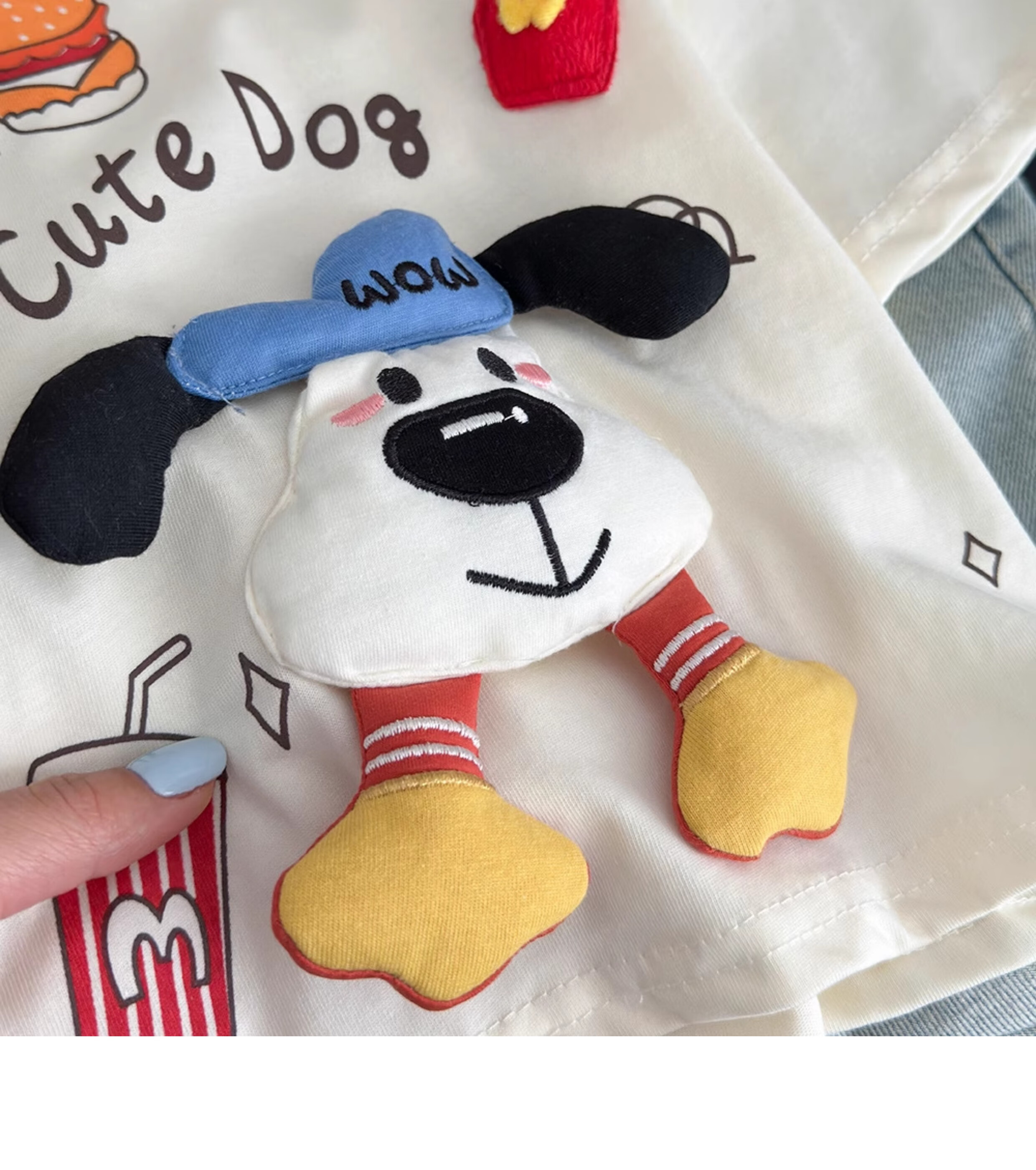 儿童纯棉短袖T恤子款立体玩偶卡通印花趣味可爱汉堡男女童薄款 阳光长颈鹿短袖 90 cm
