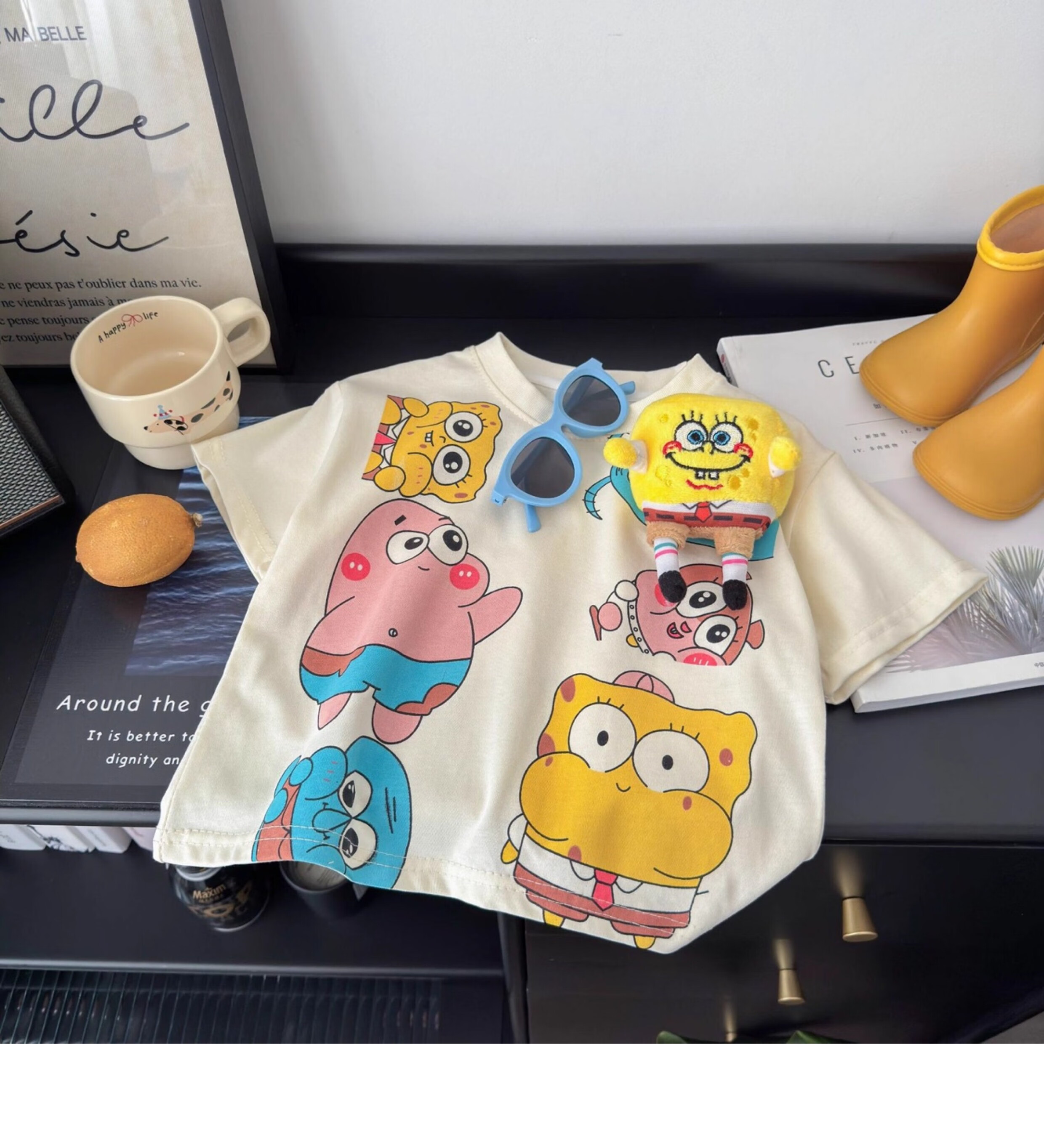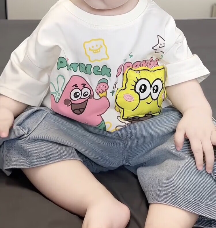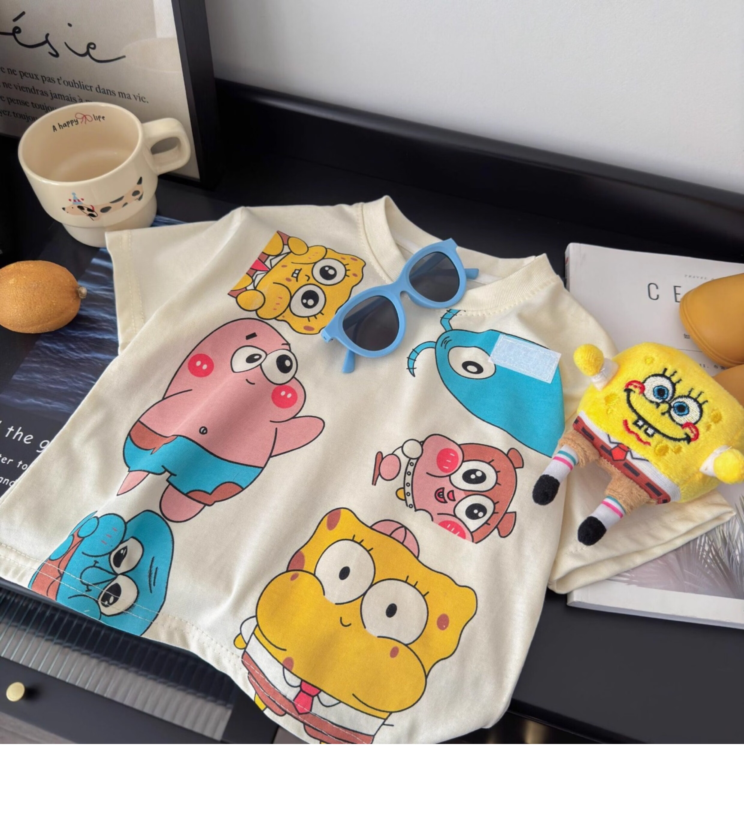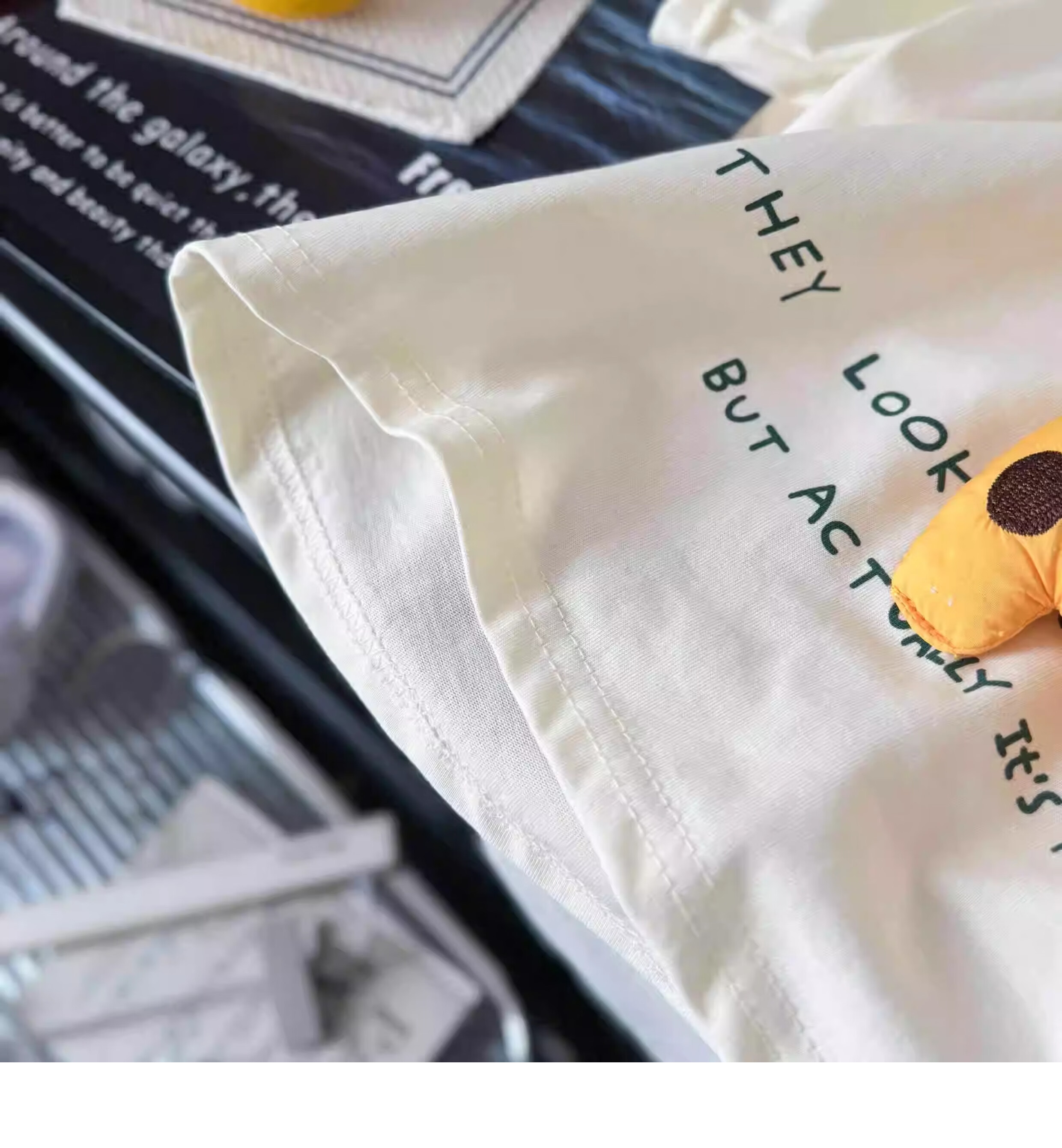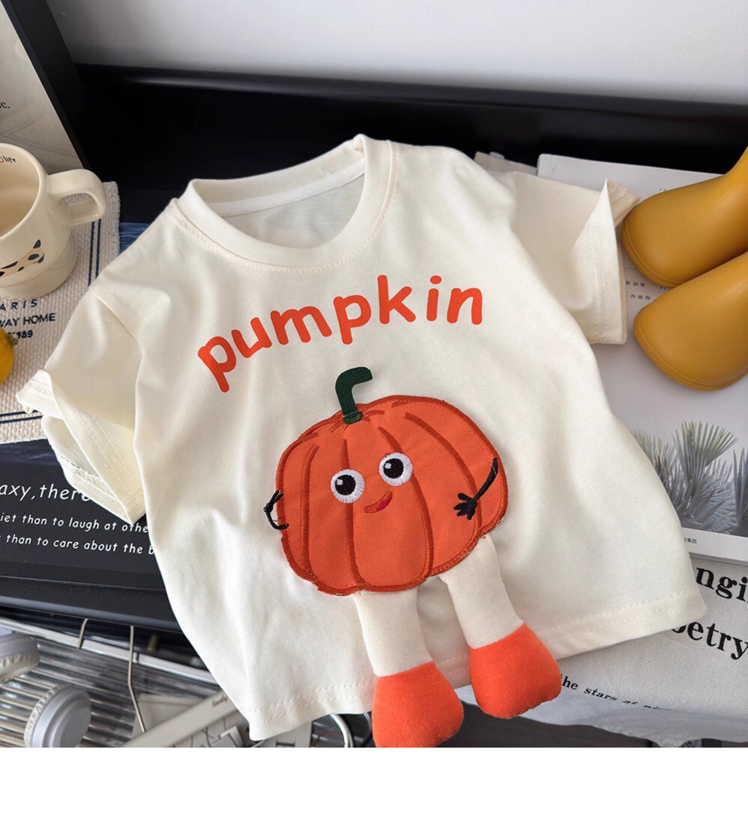 儿童纯棉短袖T恤子款立体玩偶卡通印花趣味可爱汉堡男女童薄款 阳光长颈鹿短袖 90 cm