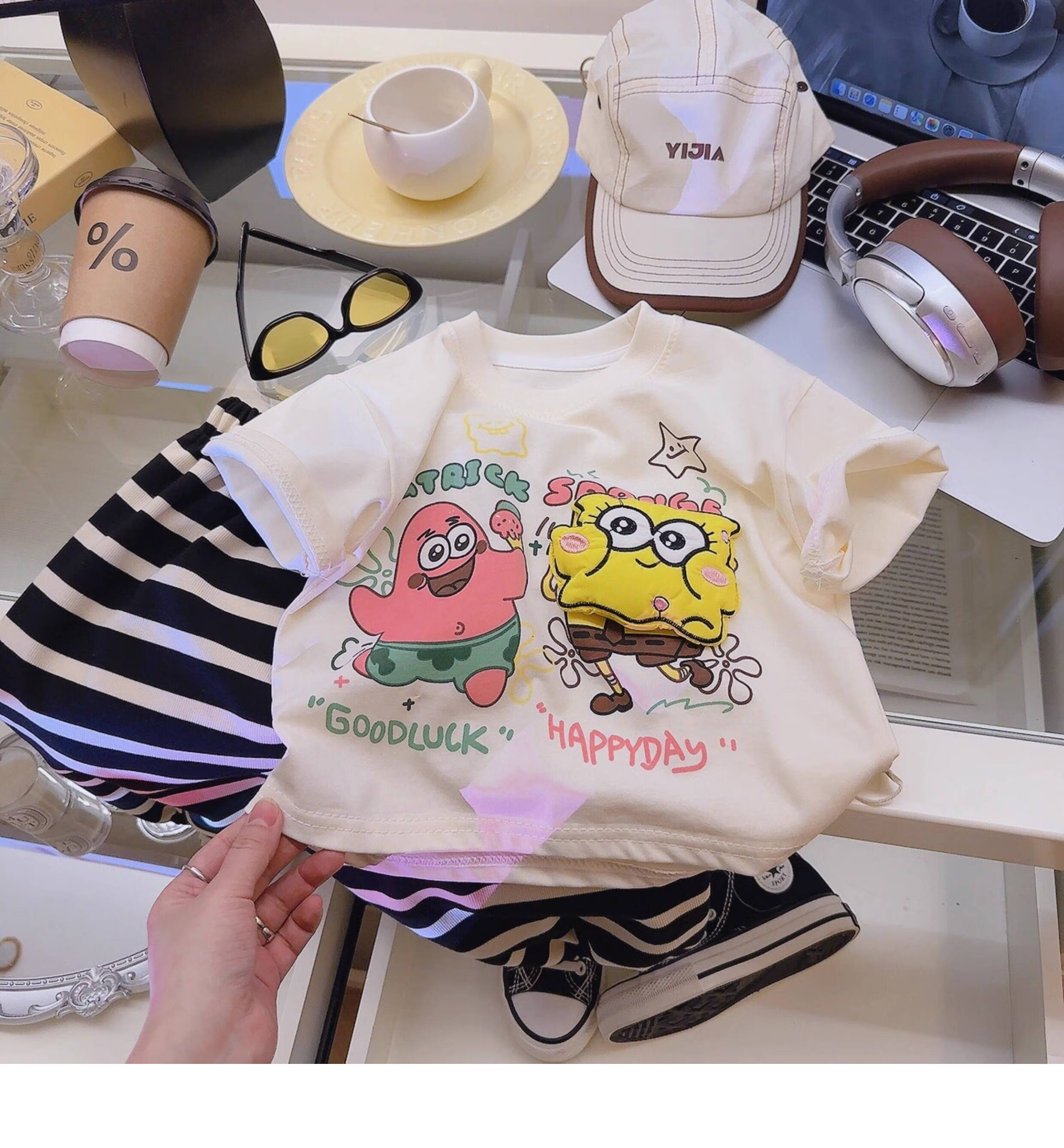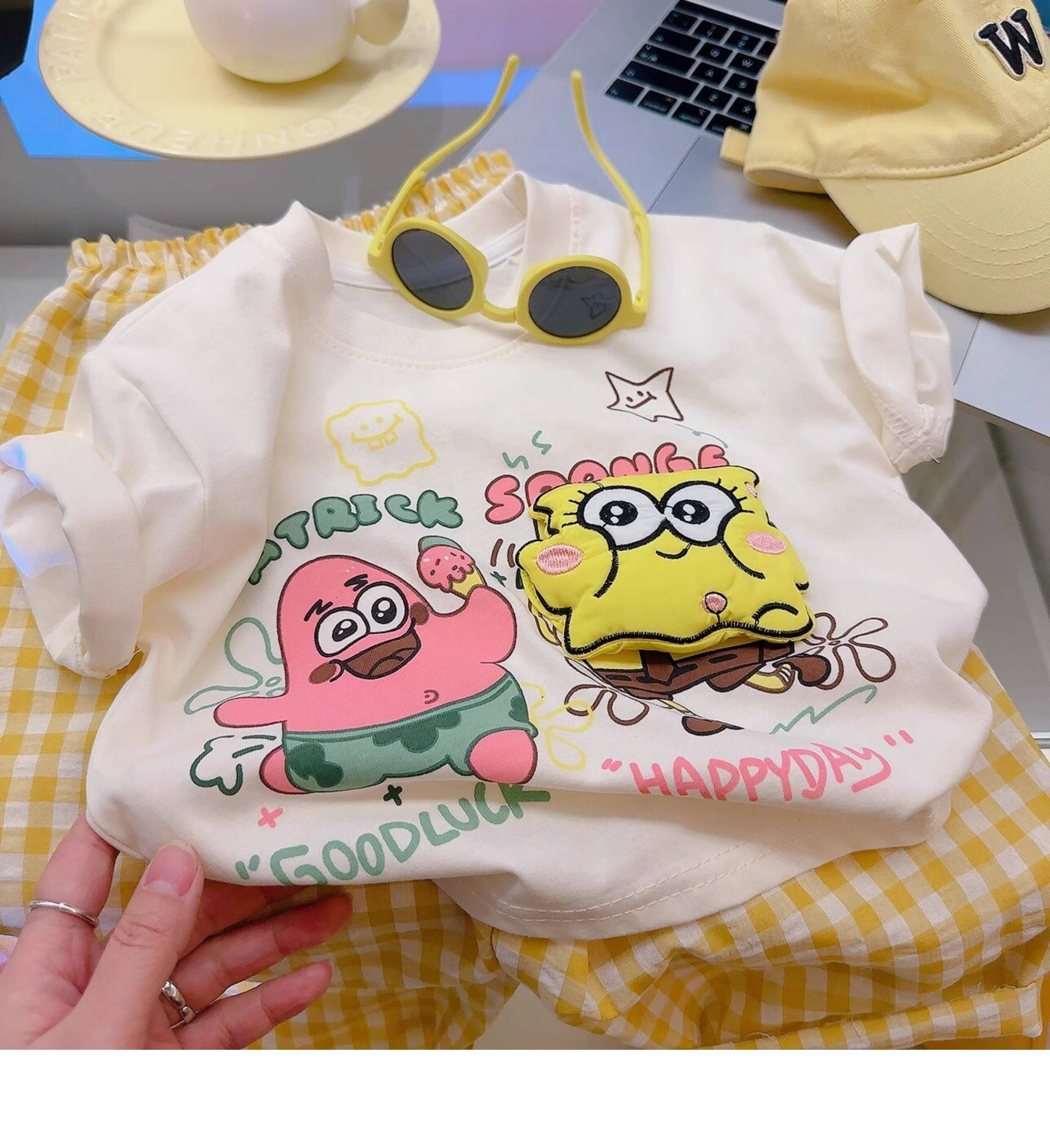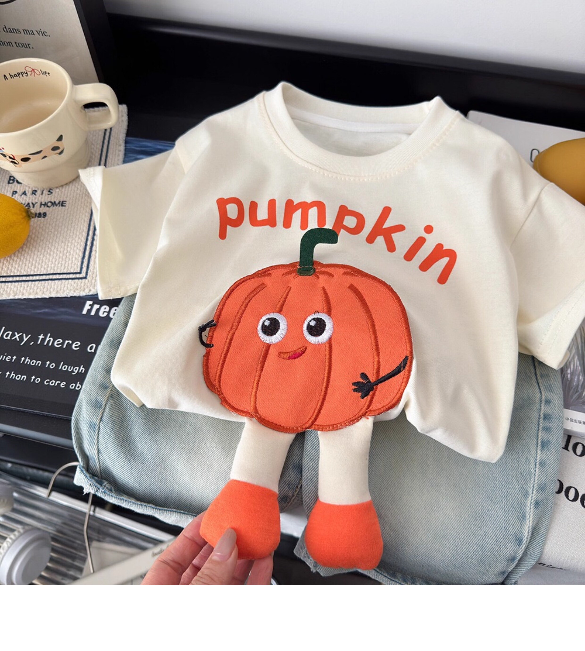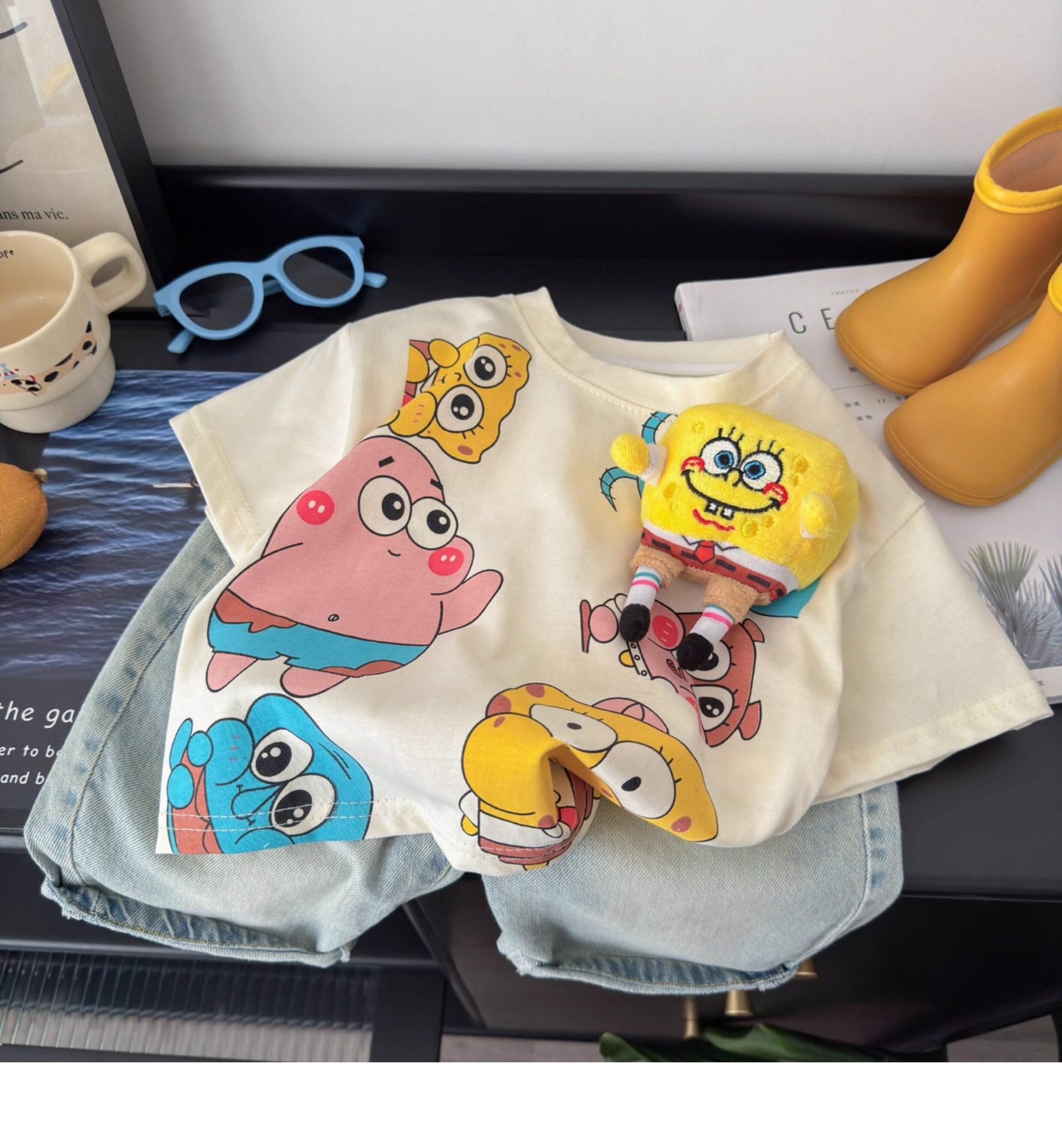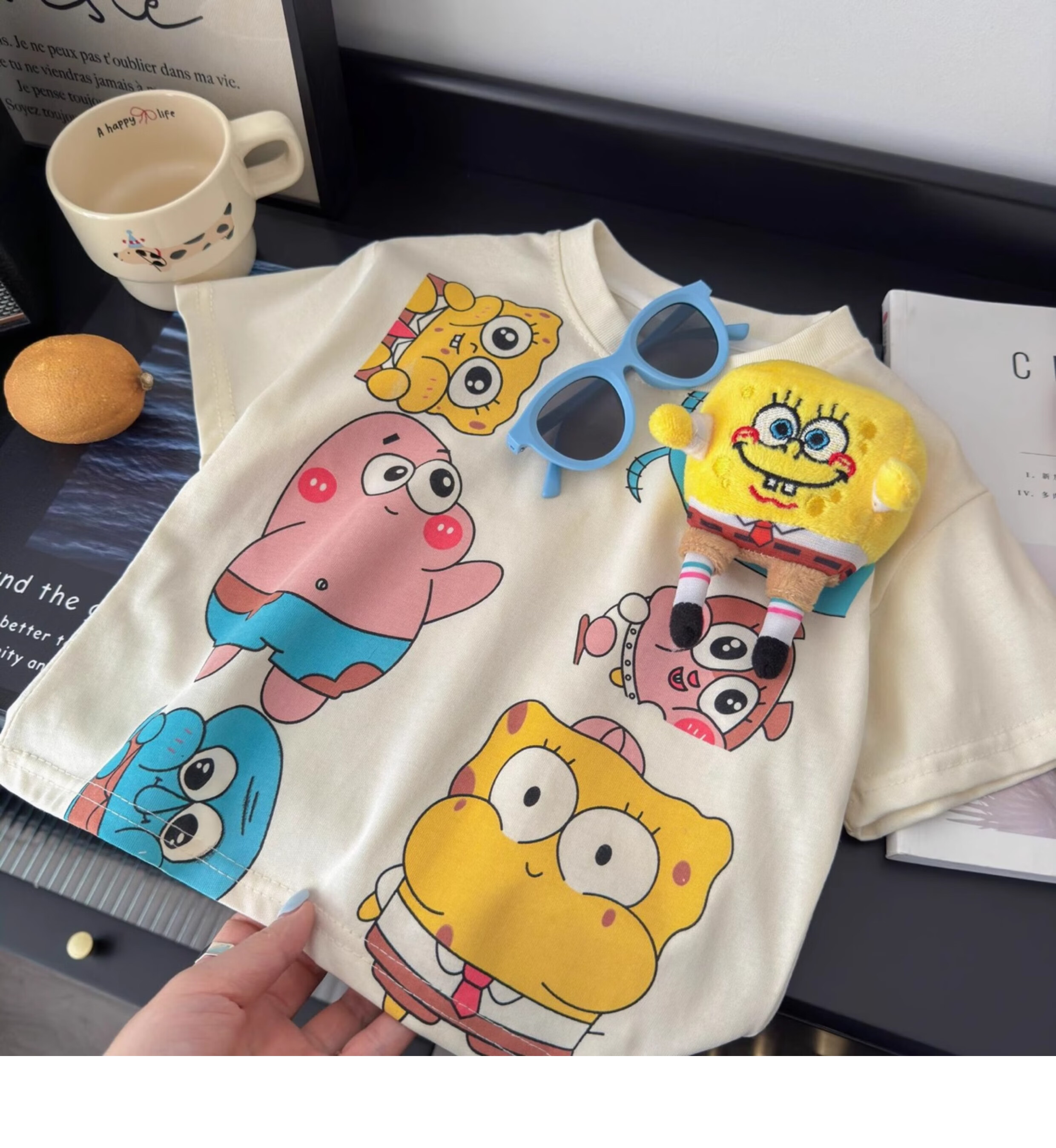 儿童纯棉短袖T恤子款立体玩偶卡通印花趣味可爱汉堡男女童薄款 阳光长颈鹿短袖 90 cm