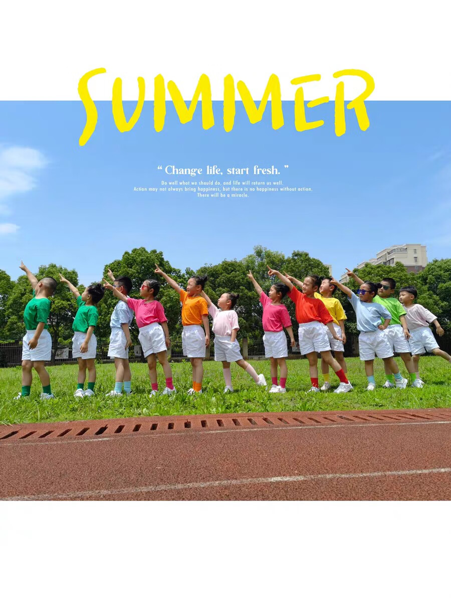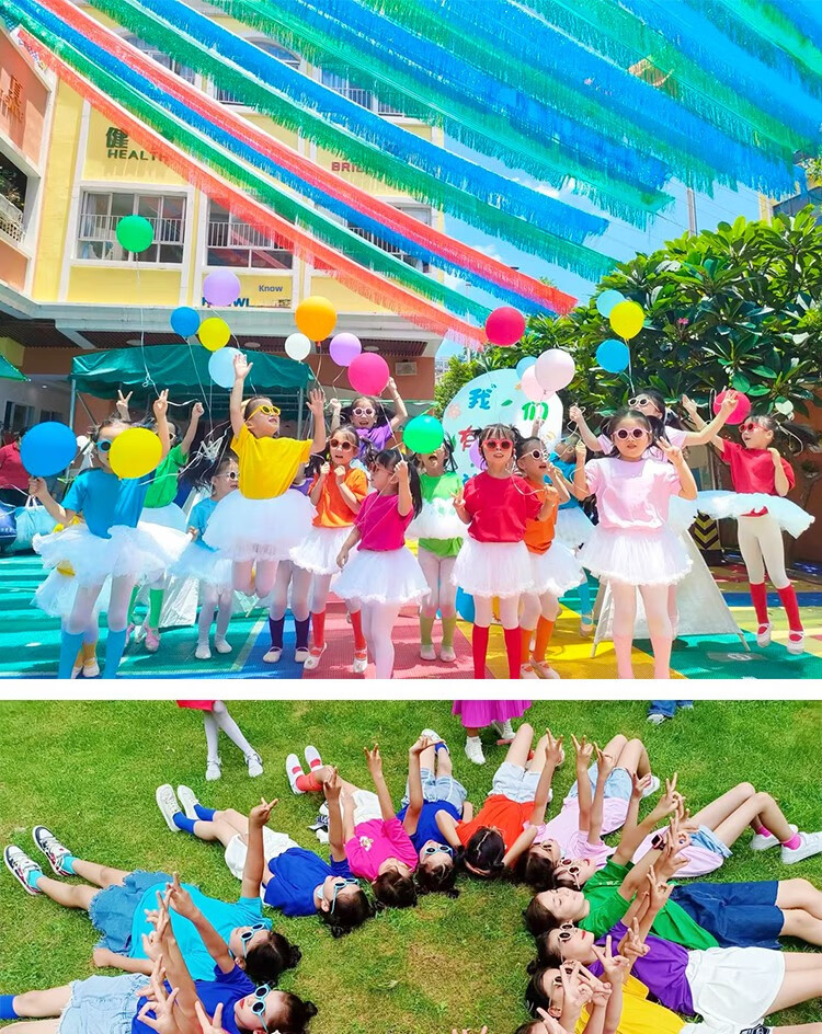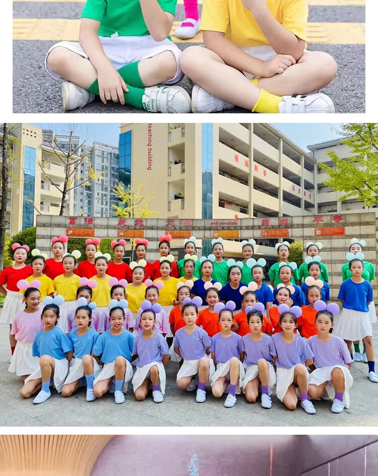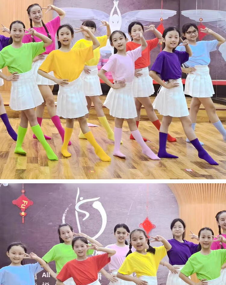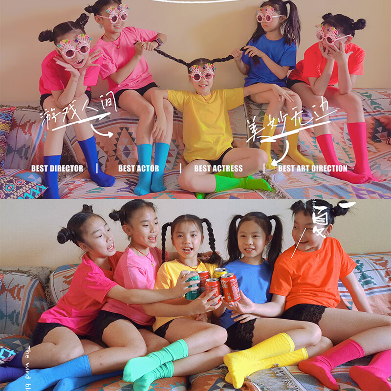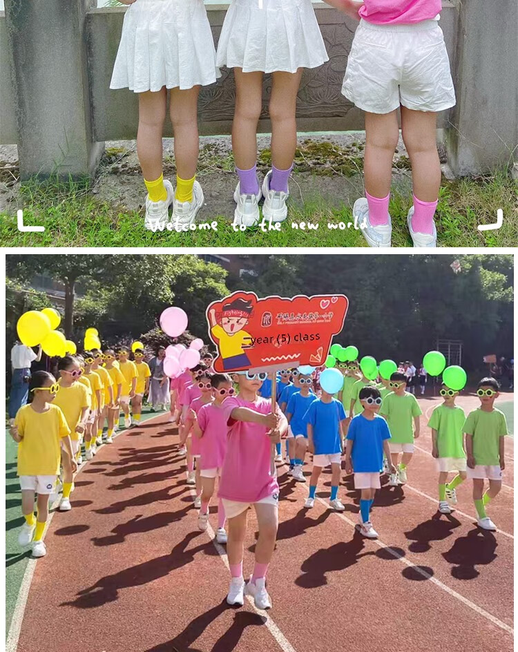 采购产品儿童彩色t恤小学生表演服运动会班服幼儿园糖果色 杜鹃花色+袜子短裤 100 cm[高90/20斤以b