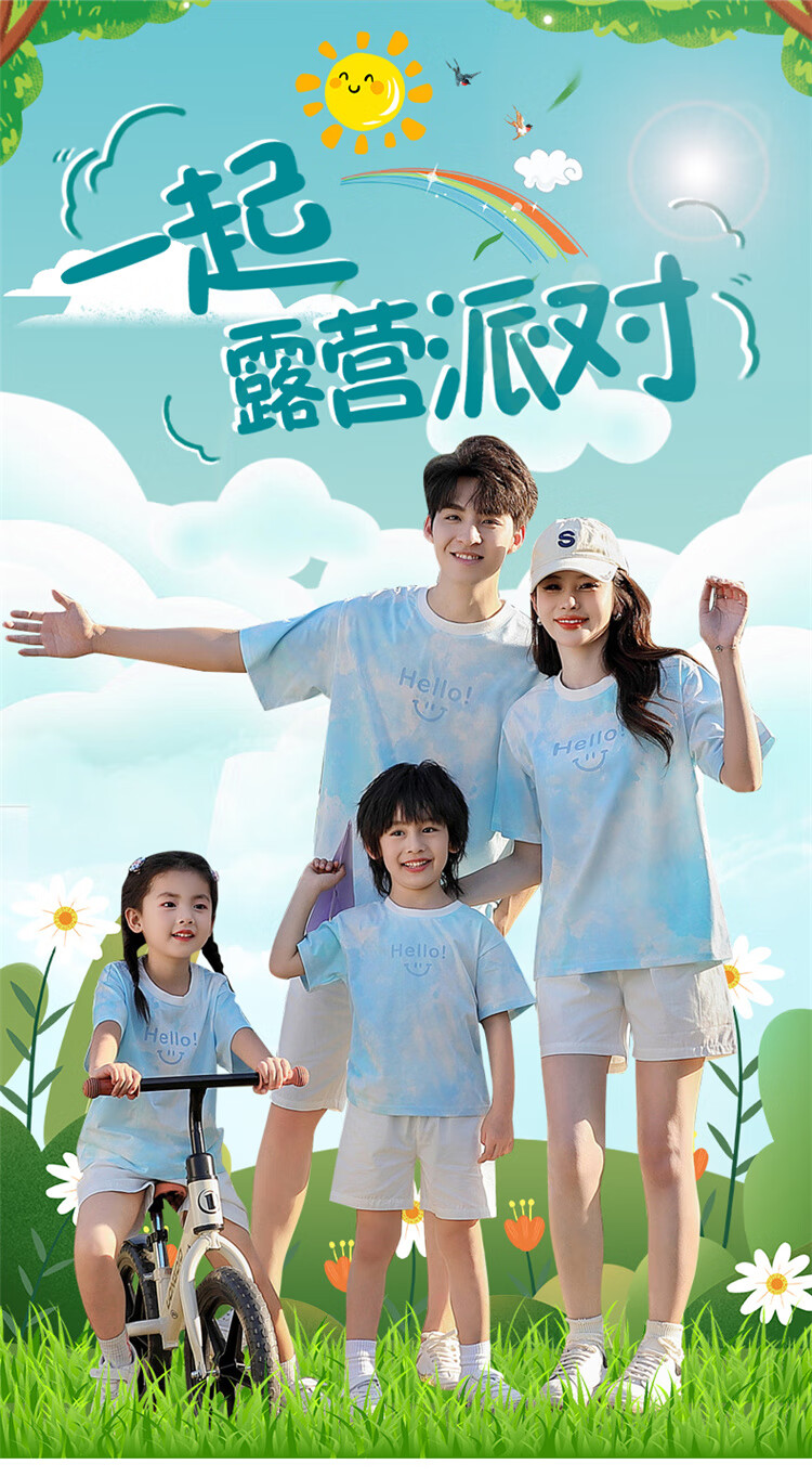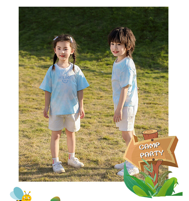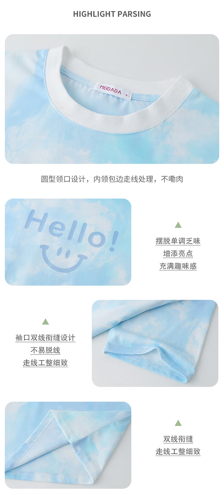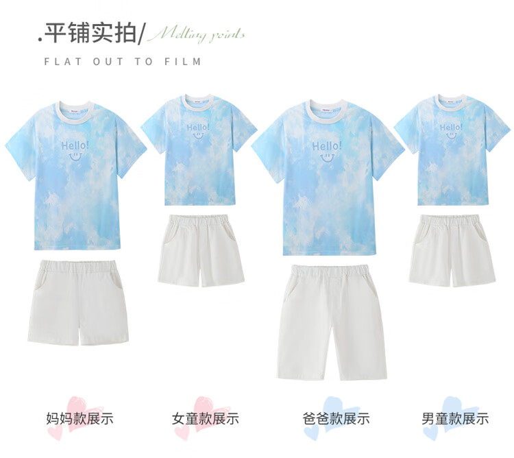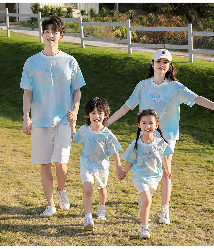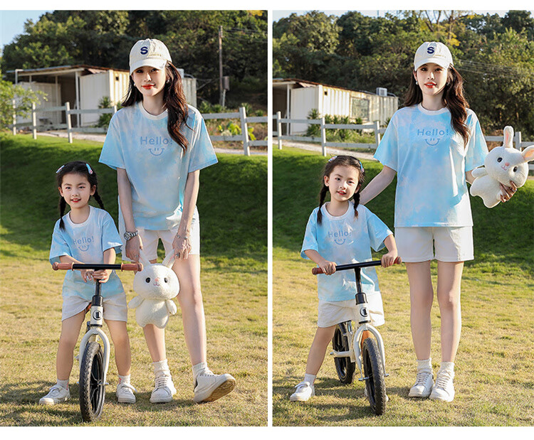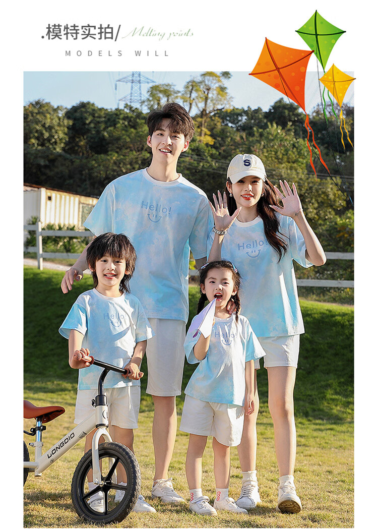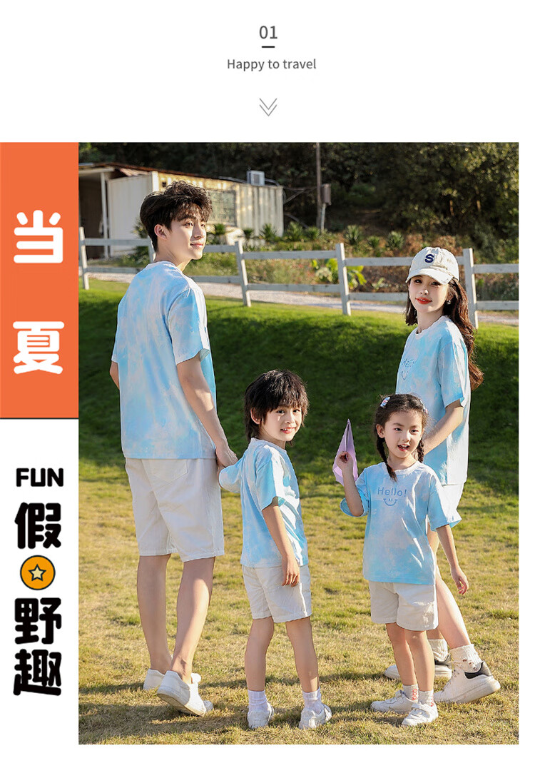 黯嗒嗒高端子装夏装2024新款一家三口四口母子母女套装童装短袖T 755扎染蓝色T恤 90 宝宝码(18-22斤)