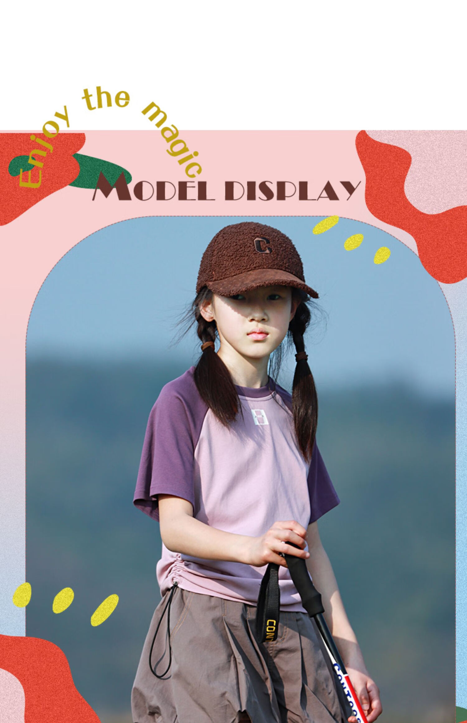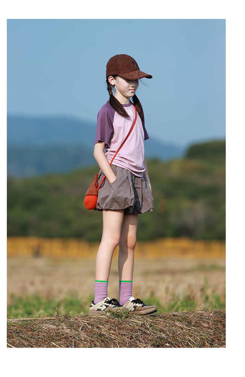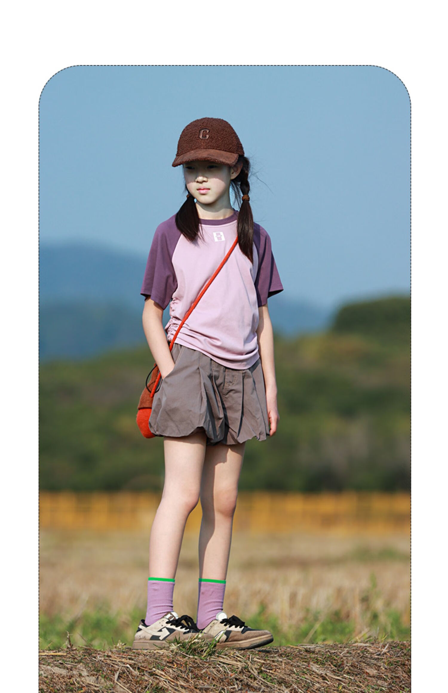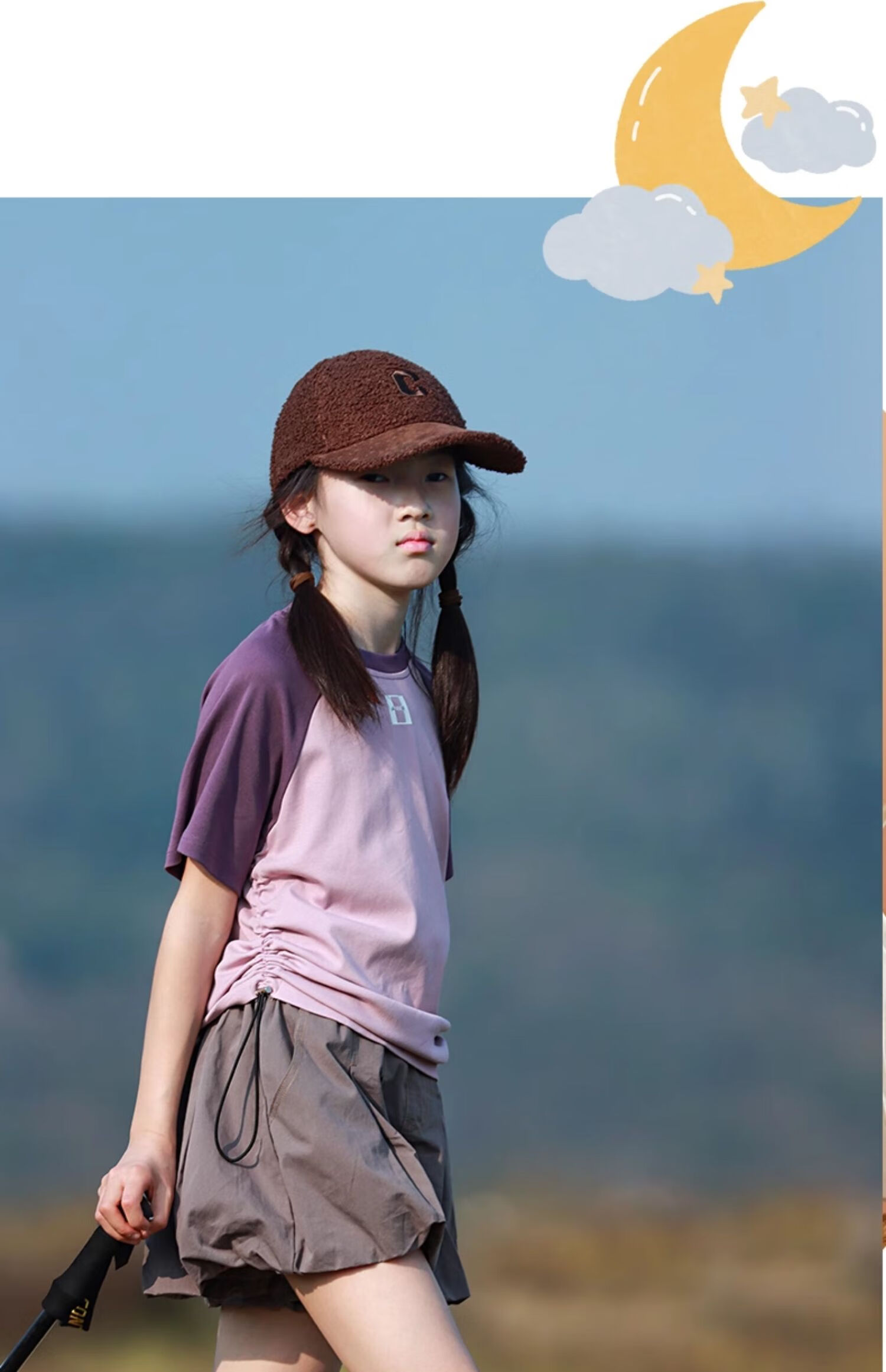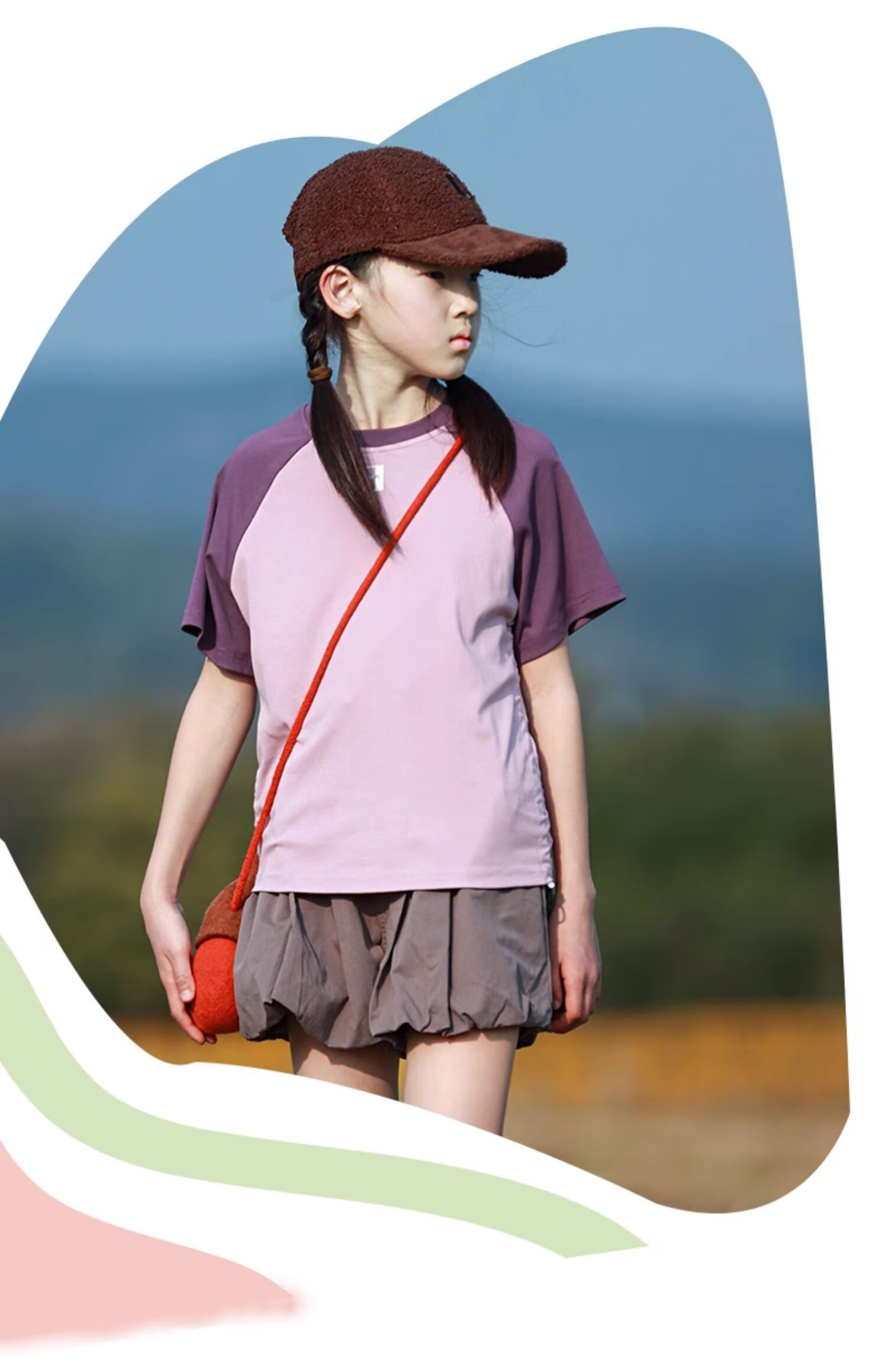涂碟幽女童短袖T恤夏季中大童气质甜美套头百搭子装插肩袖拼接上衣 芋紫(短袖)ANT50206YZ抽绳短袖T 130 cm