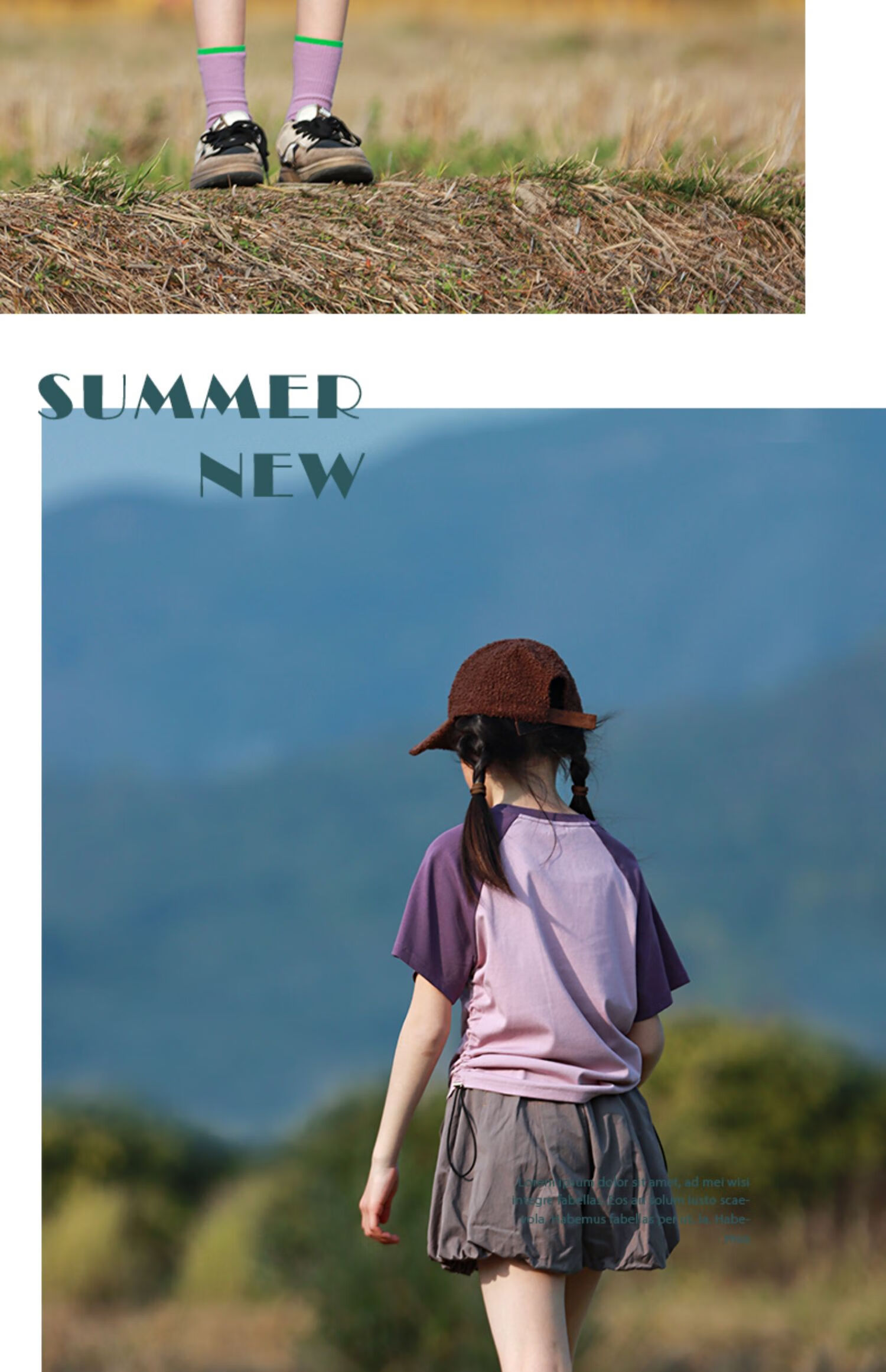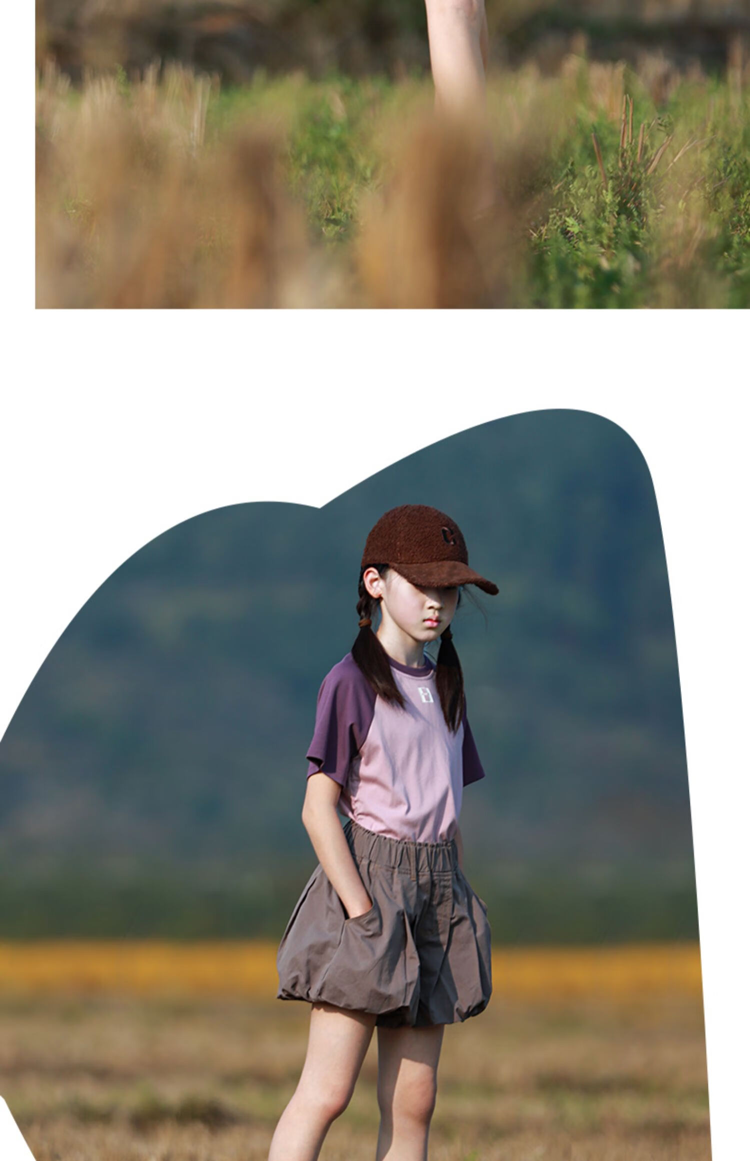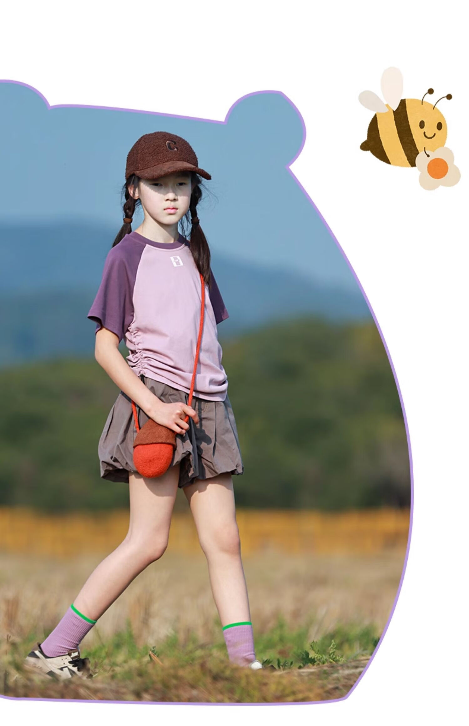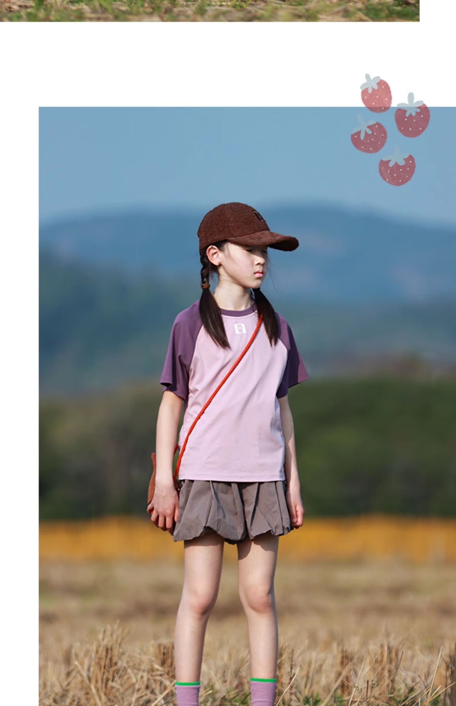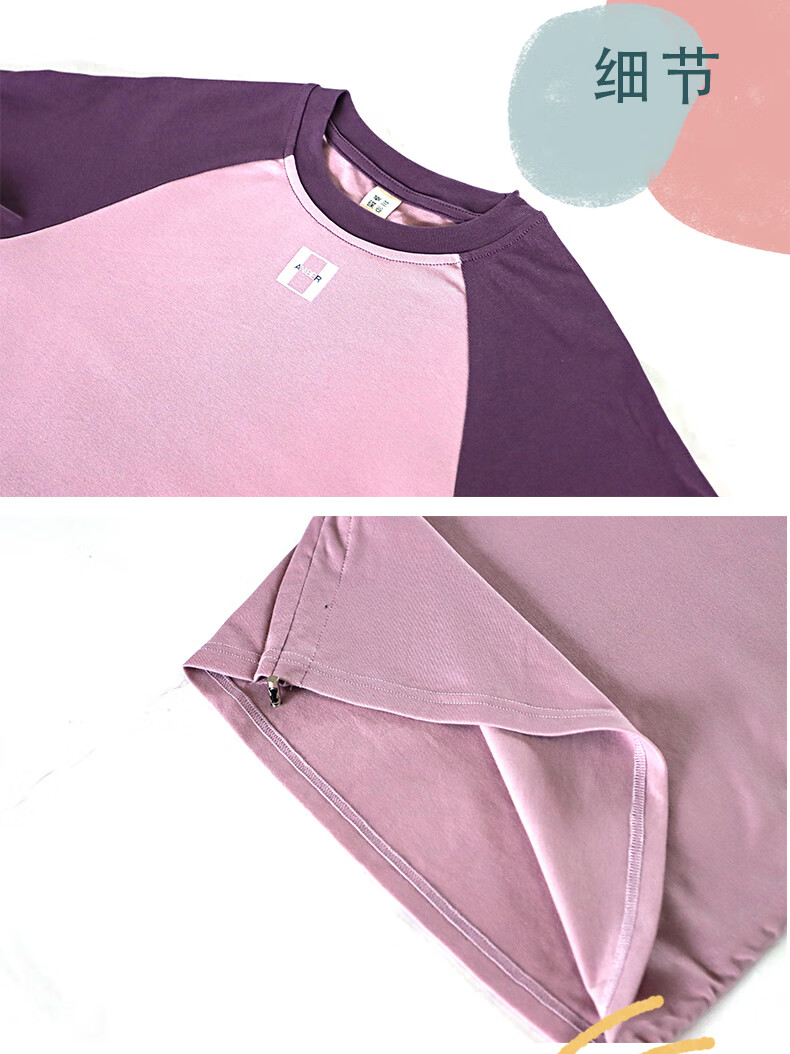 涂碟幽女童短袖T恤夏季中大童气质甜美套头百搭子装插肩袖拼接上衣 芋紫(短袖)ANT50206YZ抽绳短袖T 130 cm
