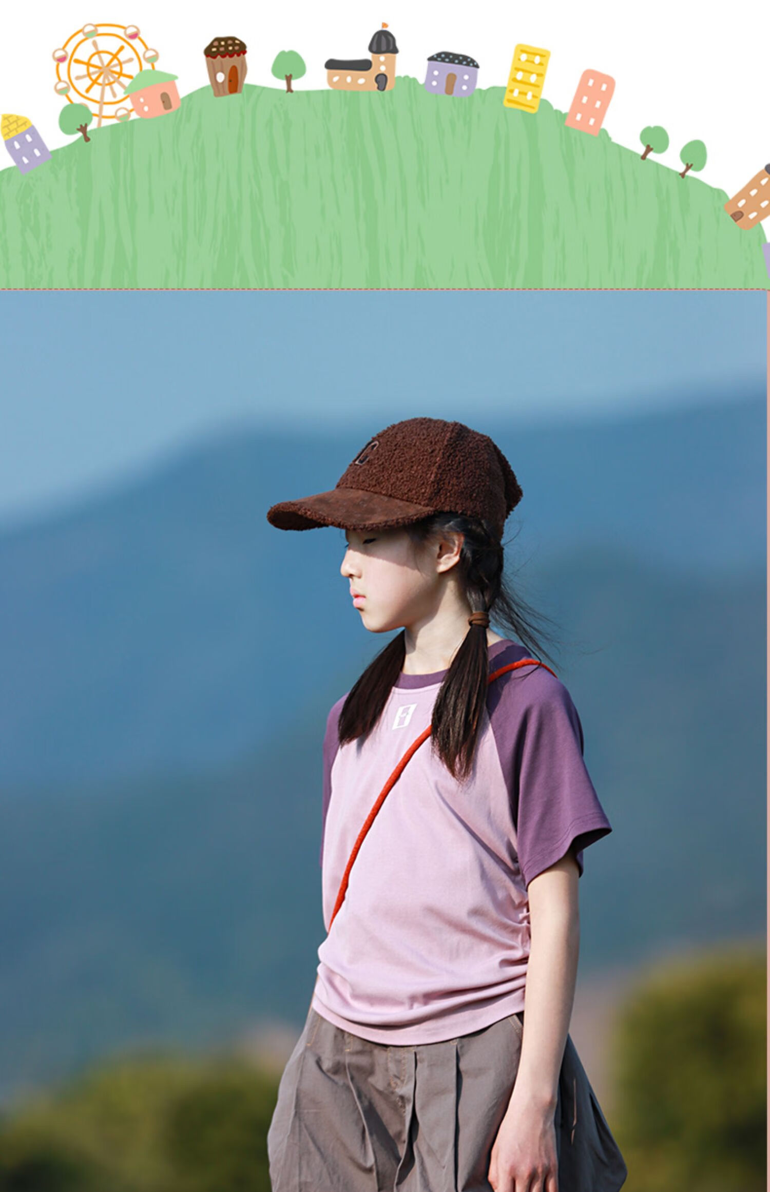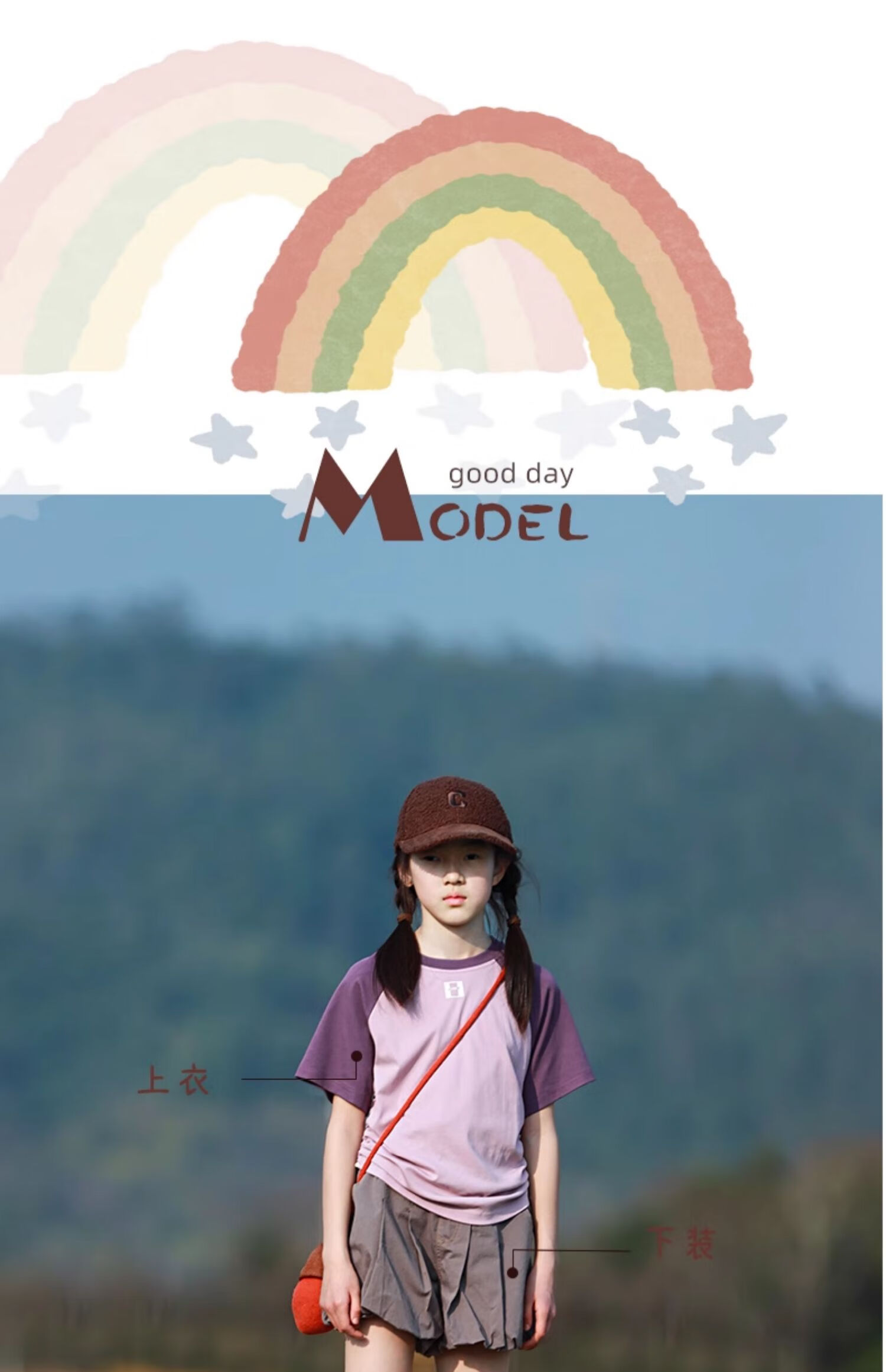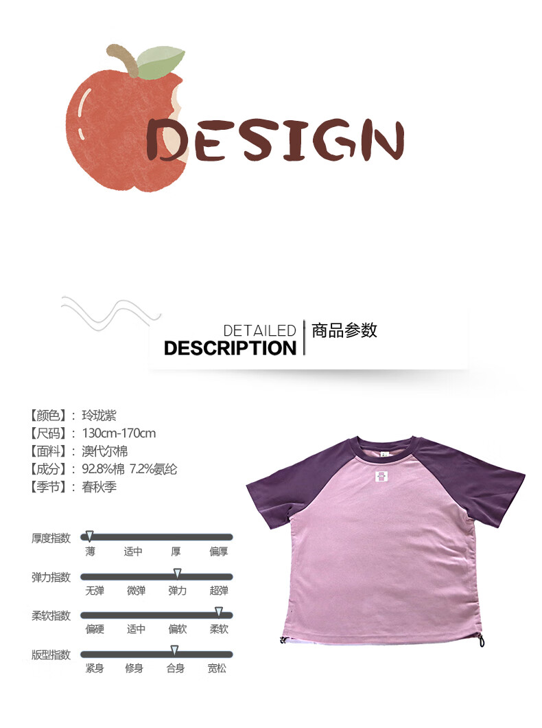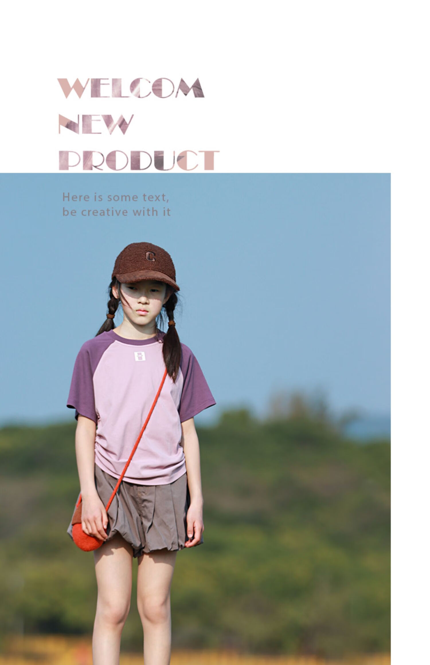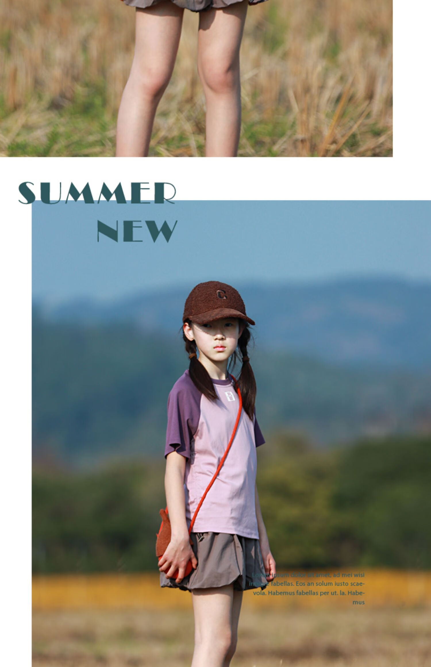 涂碟幽女童短袖T恤夏季中大童气质甜美套头百搭子装插肩袖拼接上衣 芋紫(短袖)ANT50206YZ抽绳短袖T 130 cm
