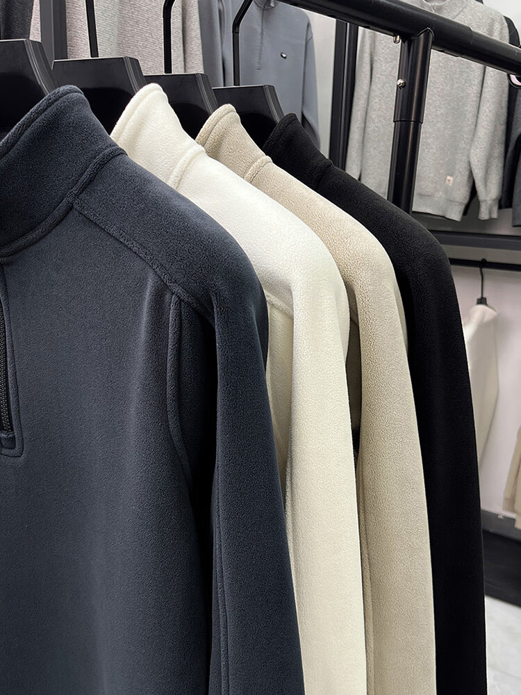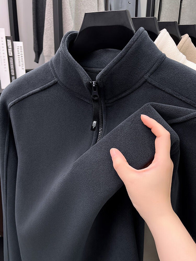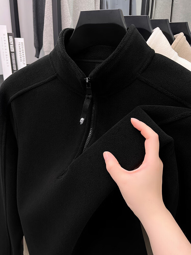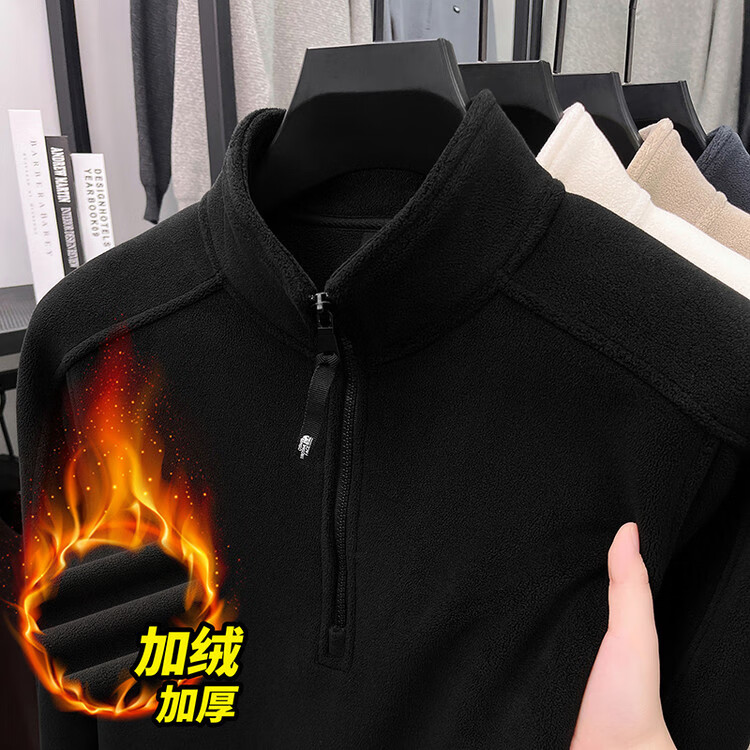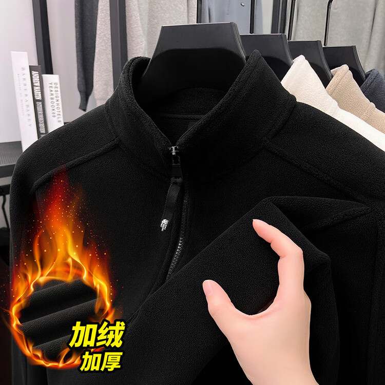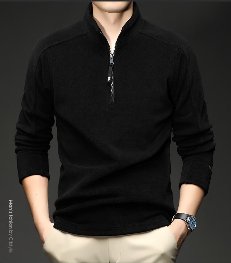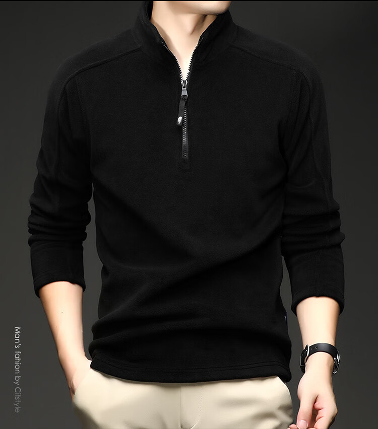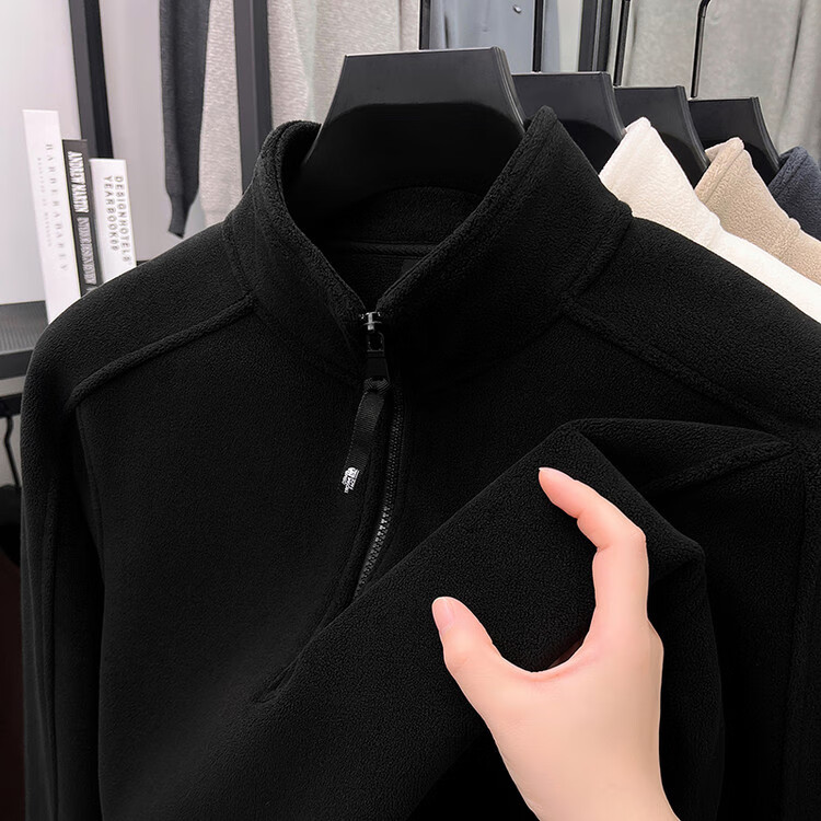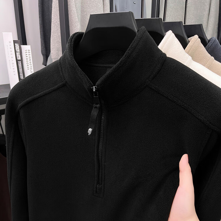 nasawassup轻奢奥粒绒半拉链立领卫衣男士春秋冬季加厚保暖舒适摇粒绒打底衫 黑色 XL