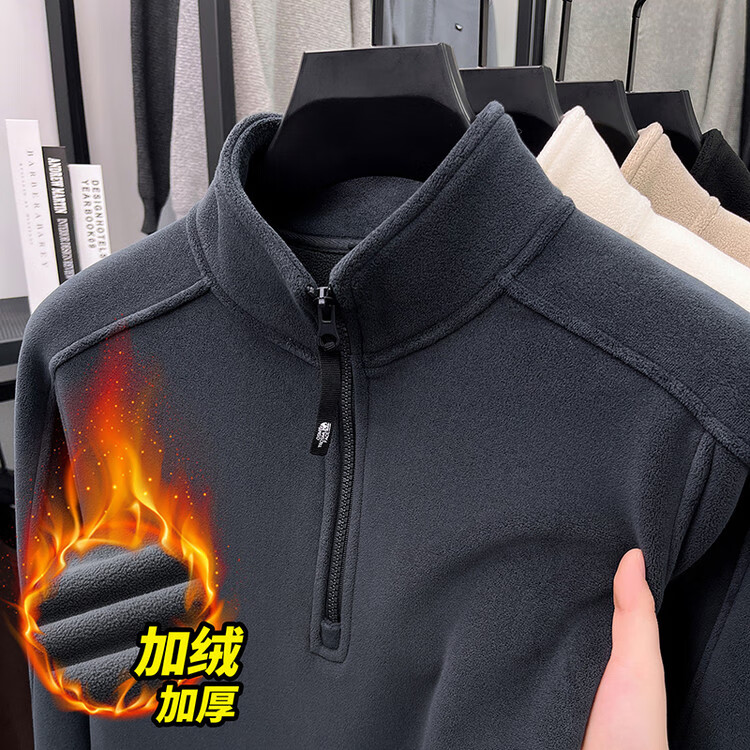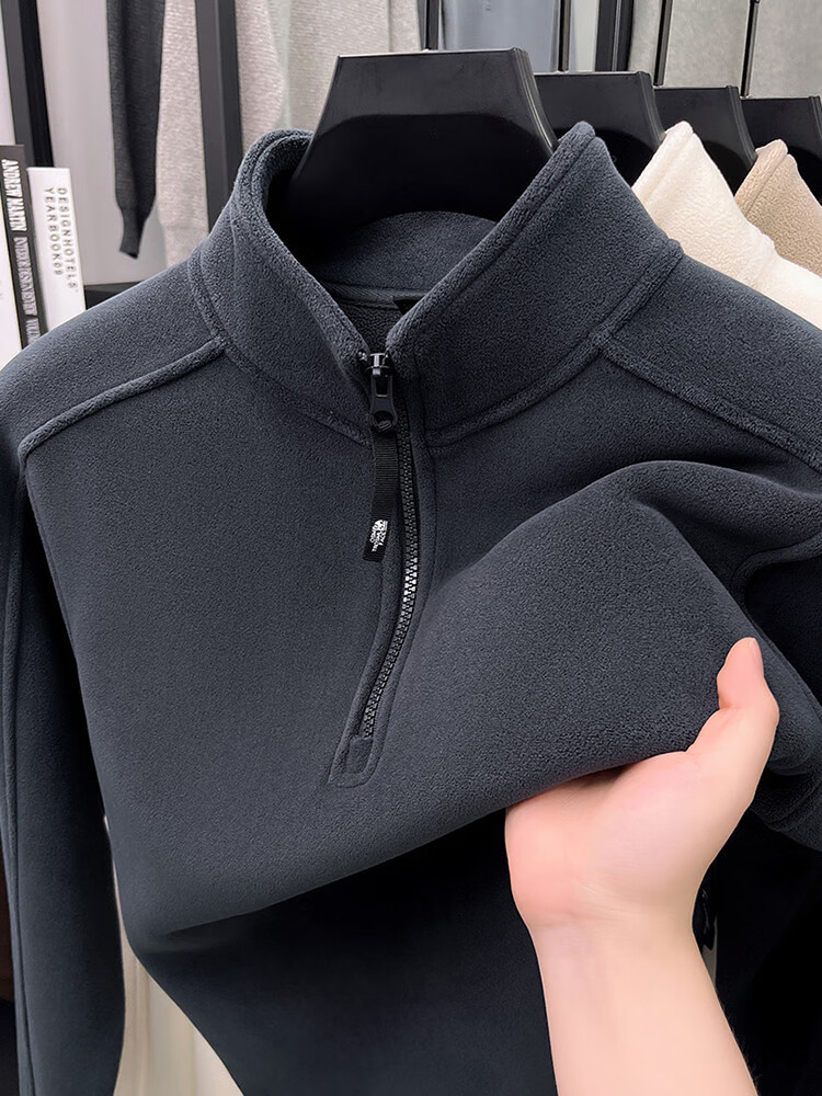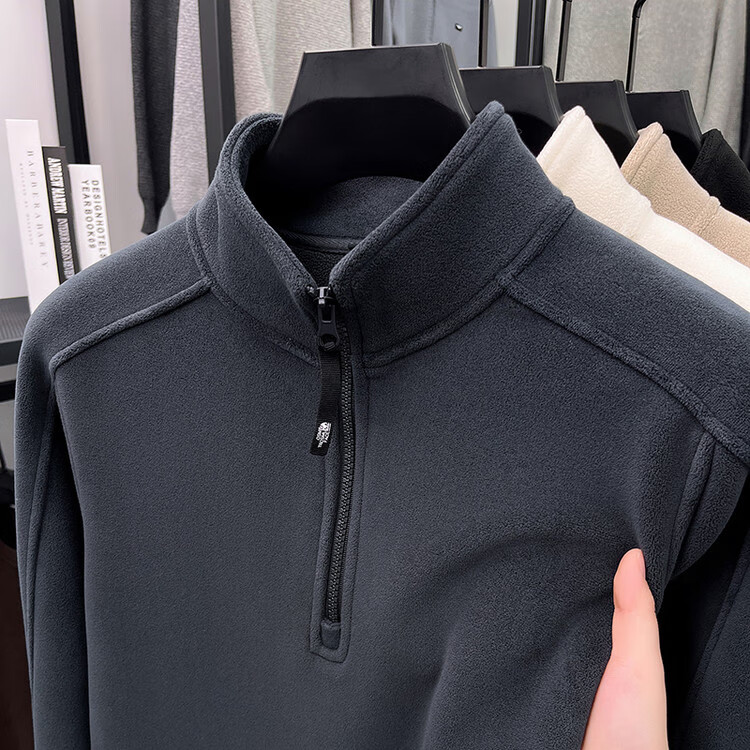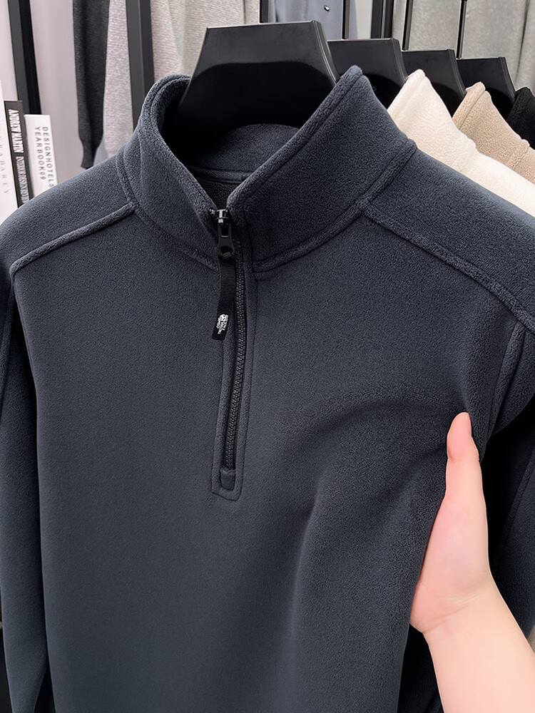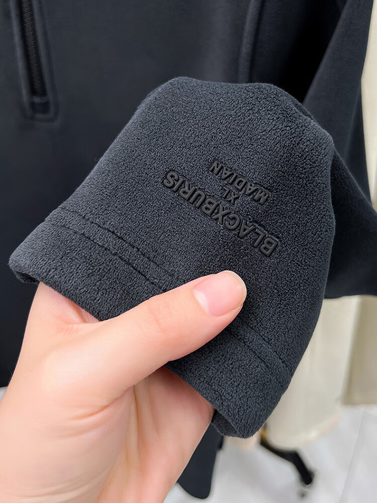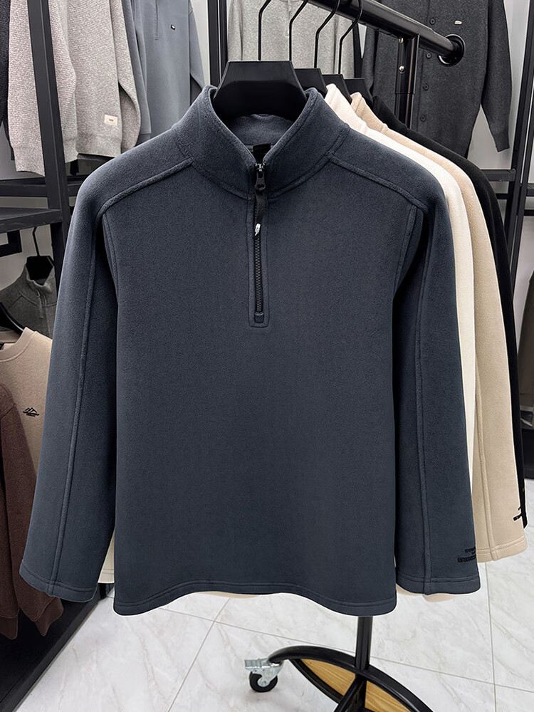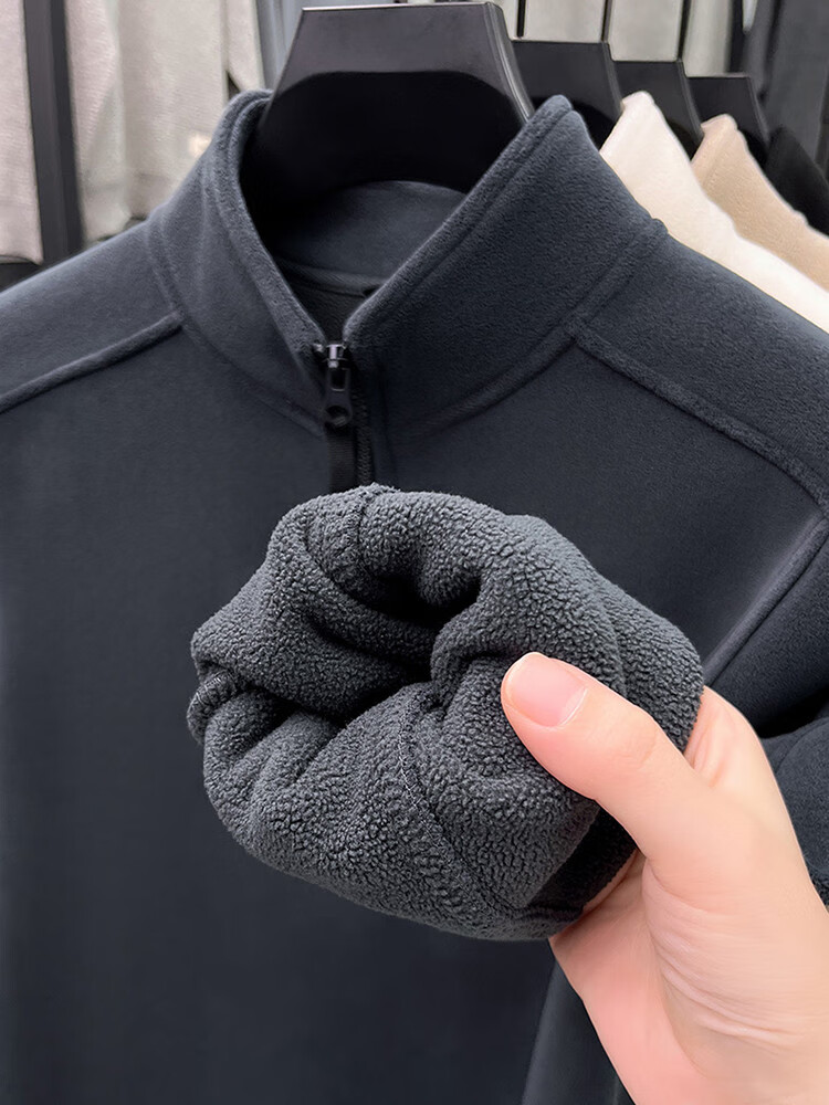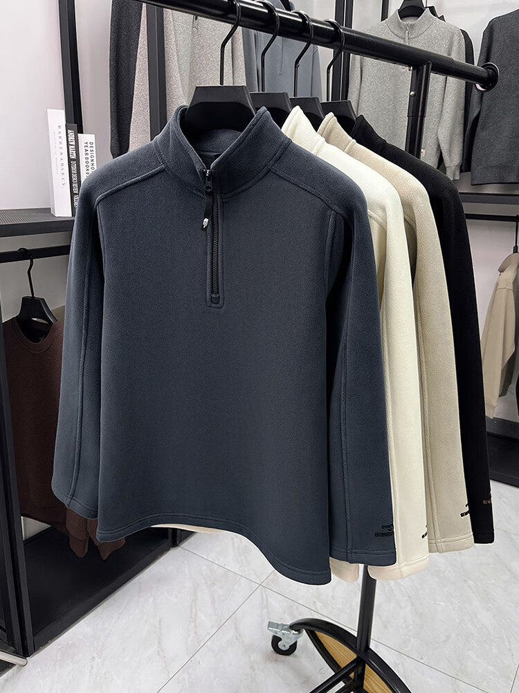 nasawassup轻奢奥粒绒半拉链立领卫衣男士春秋冬季加厚保暖舒适摇粒绒打底衫 黑色 XL