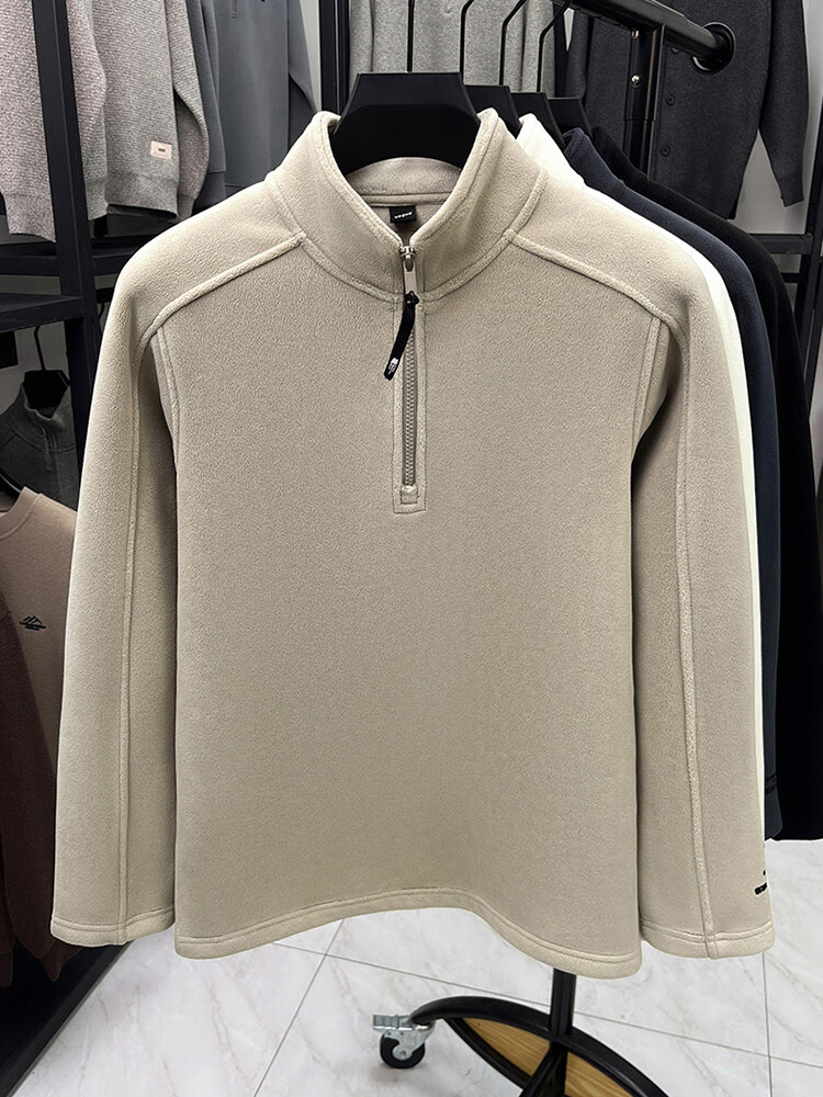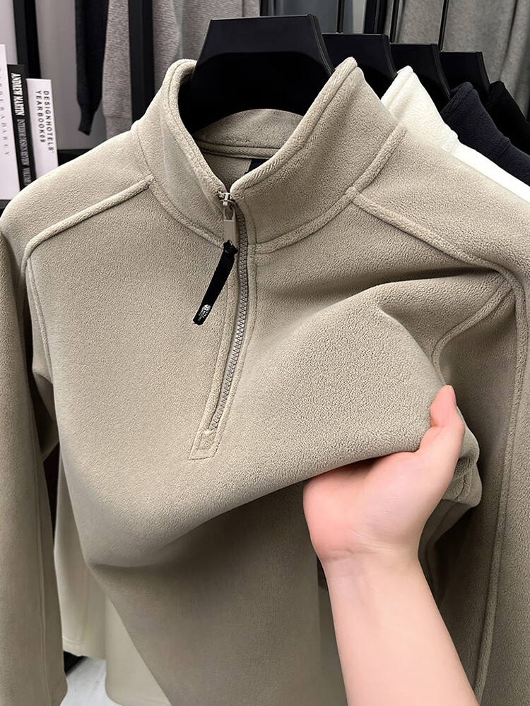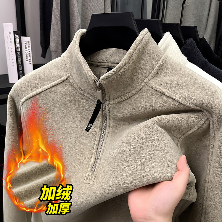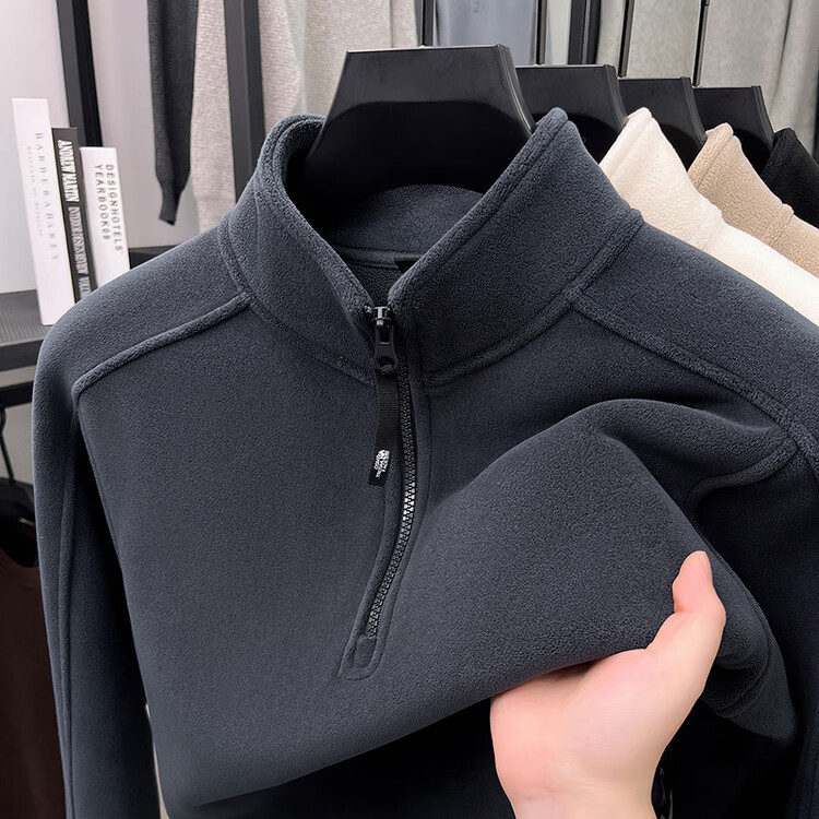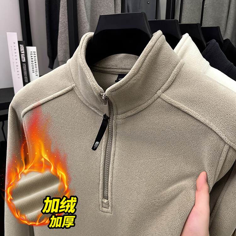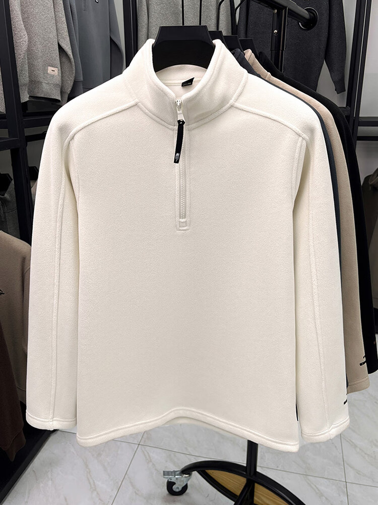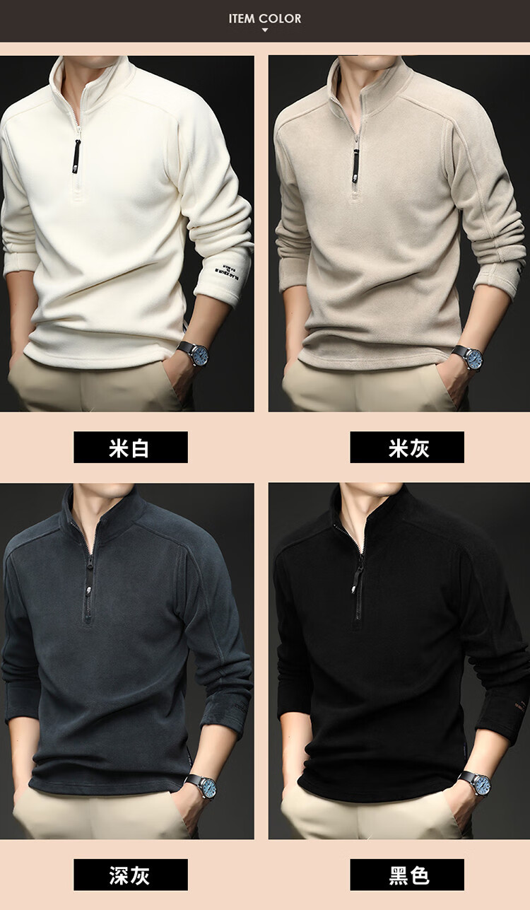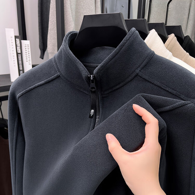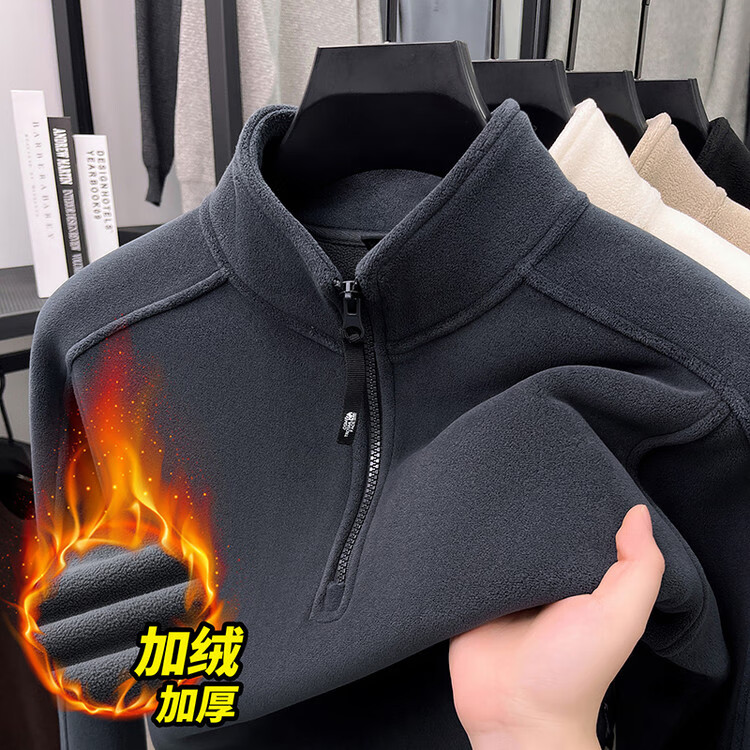 nasawassup轻奢奥粒绒半拉链立领卫衣男士春秋冬季加厚保暖舒适摇粒绒打底衫 黑色 XL